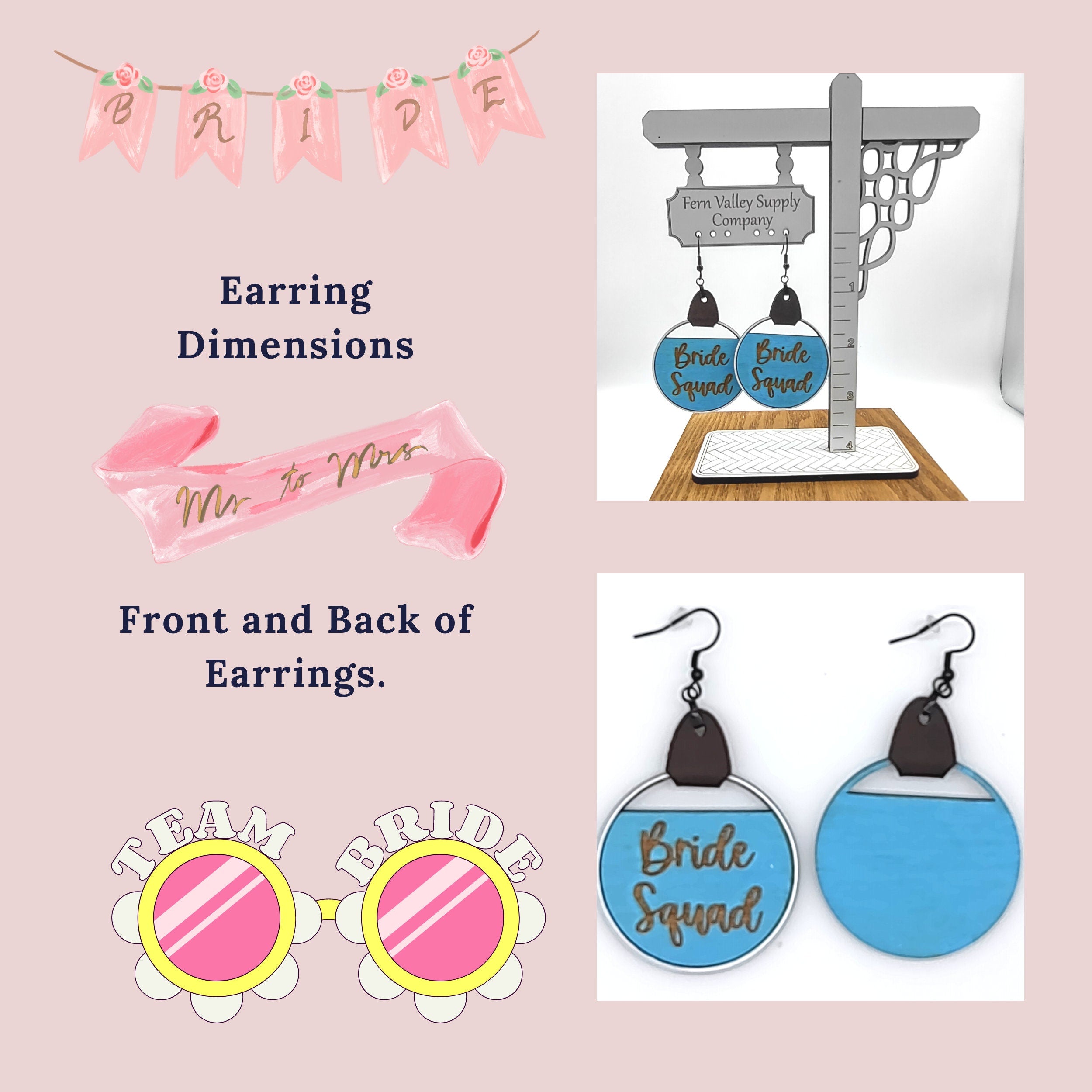 Elevate your bridal party's style and celebrate in unity with these Bride and Bride Squad Earrings. Make your special night even more memorable and glamorous. Order your favorite design and color combination today and get ready to create unforgettable moments with your bride squad.
