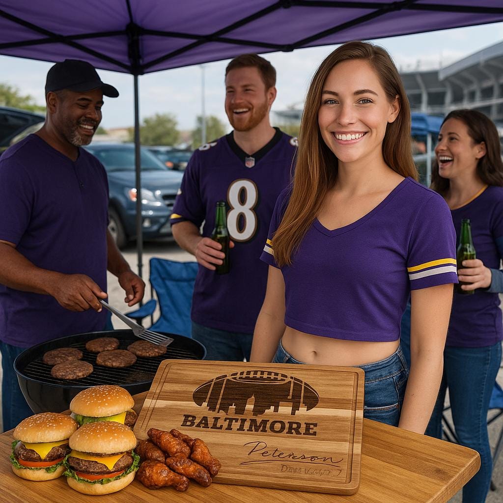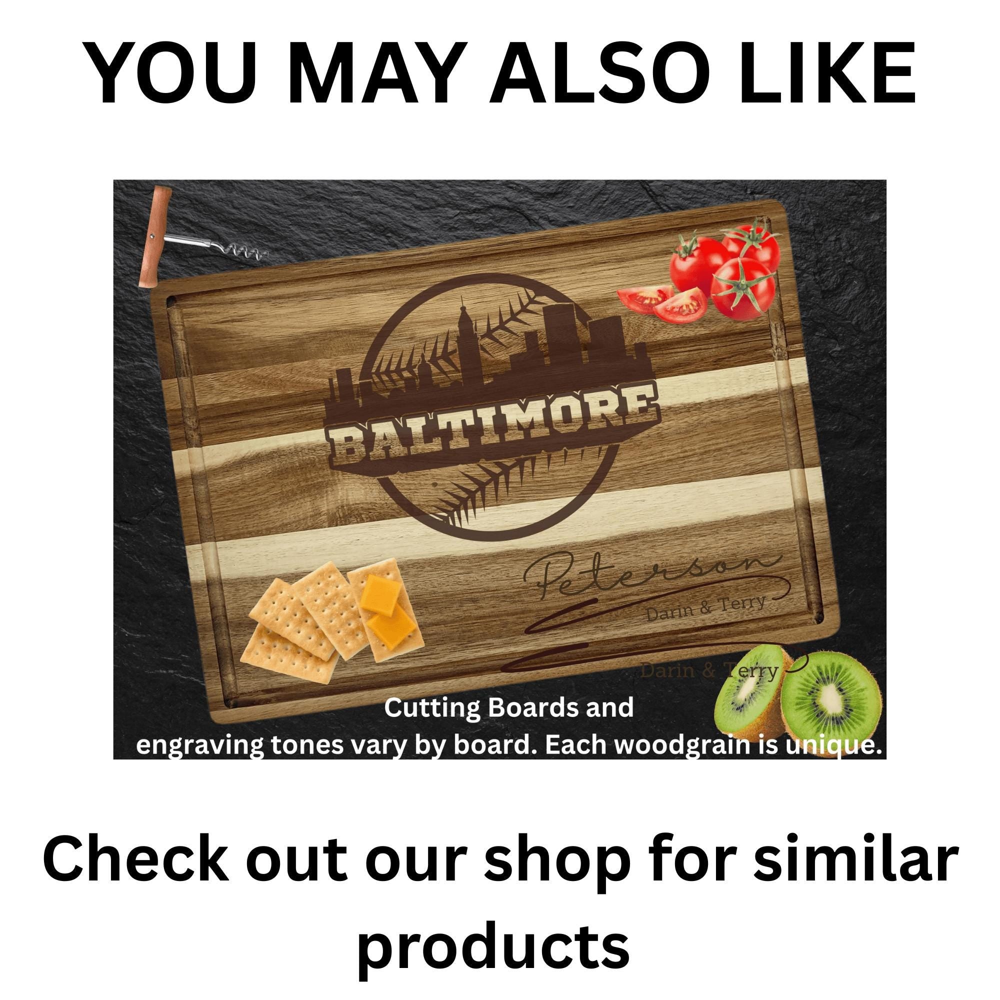 Personalized Baltimore Football Cutting Board: Acacia Wood, Laser Engraved