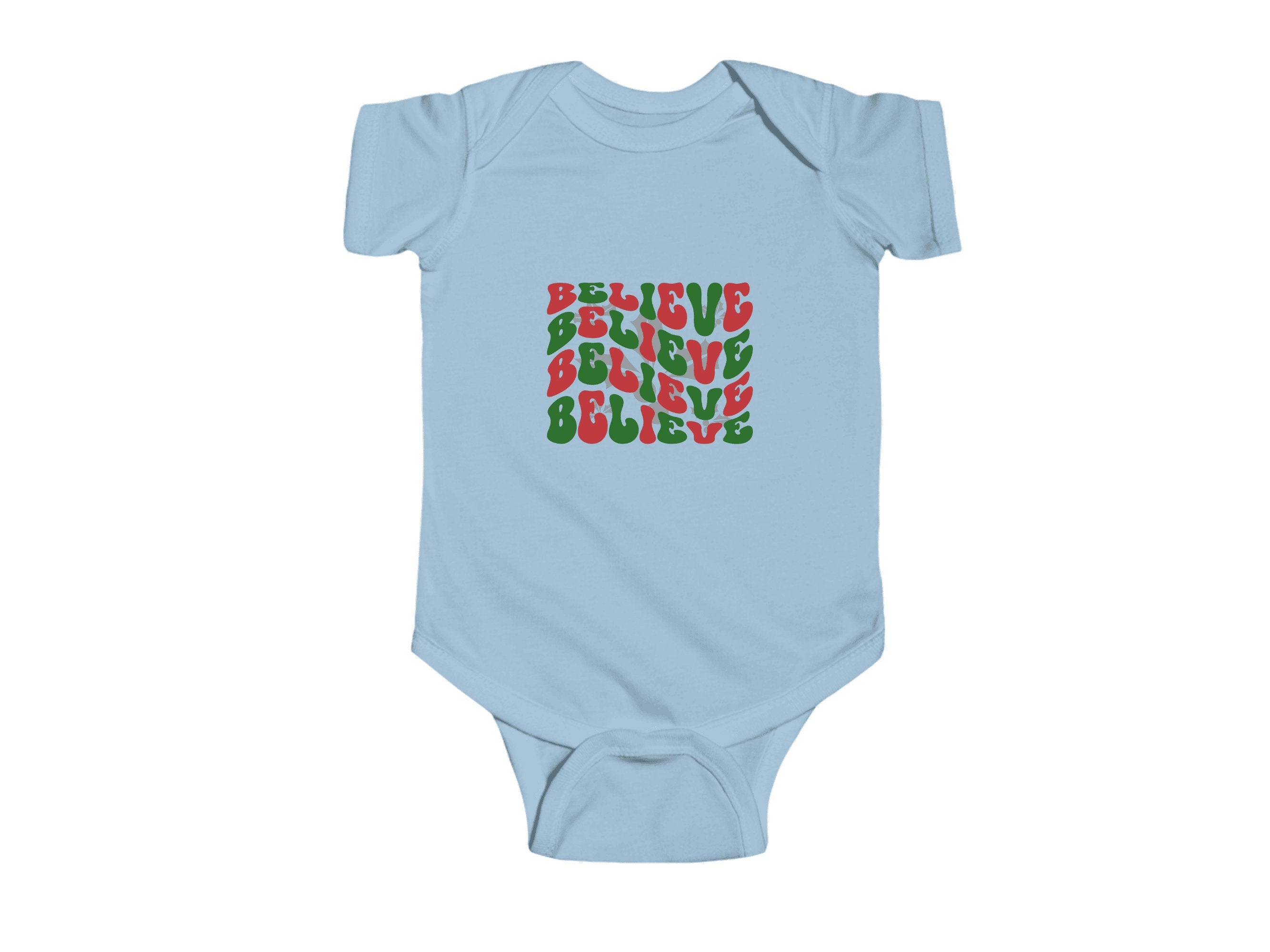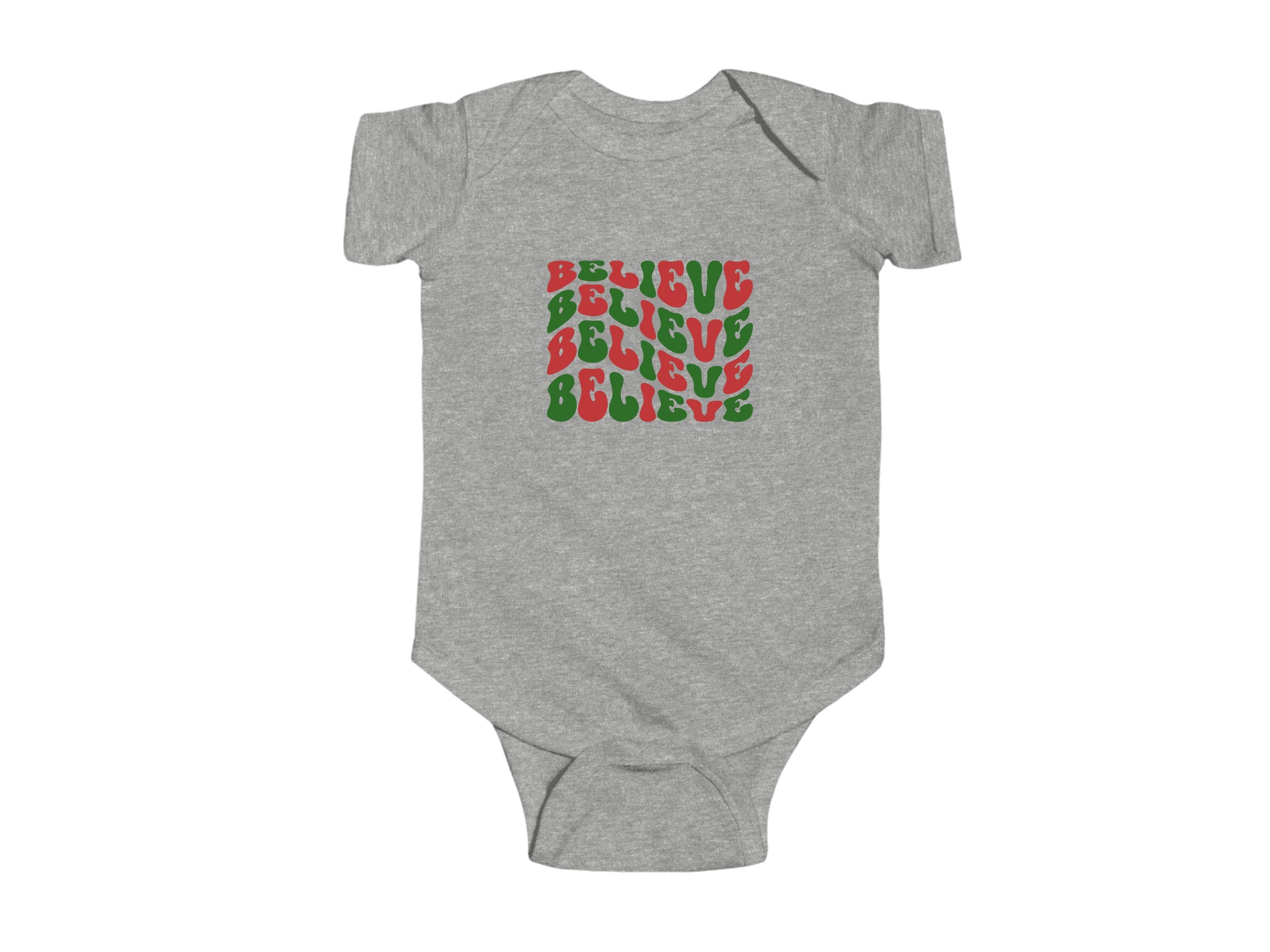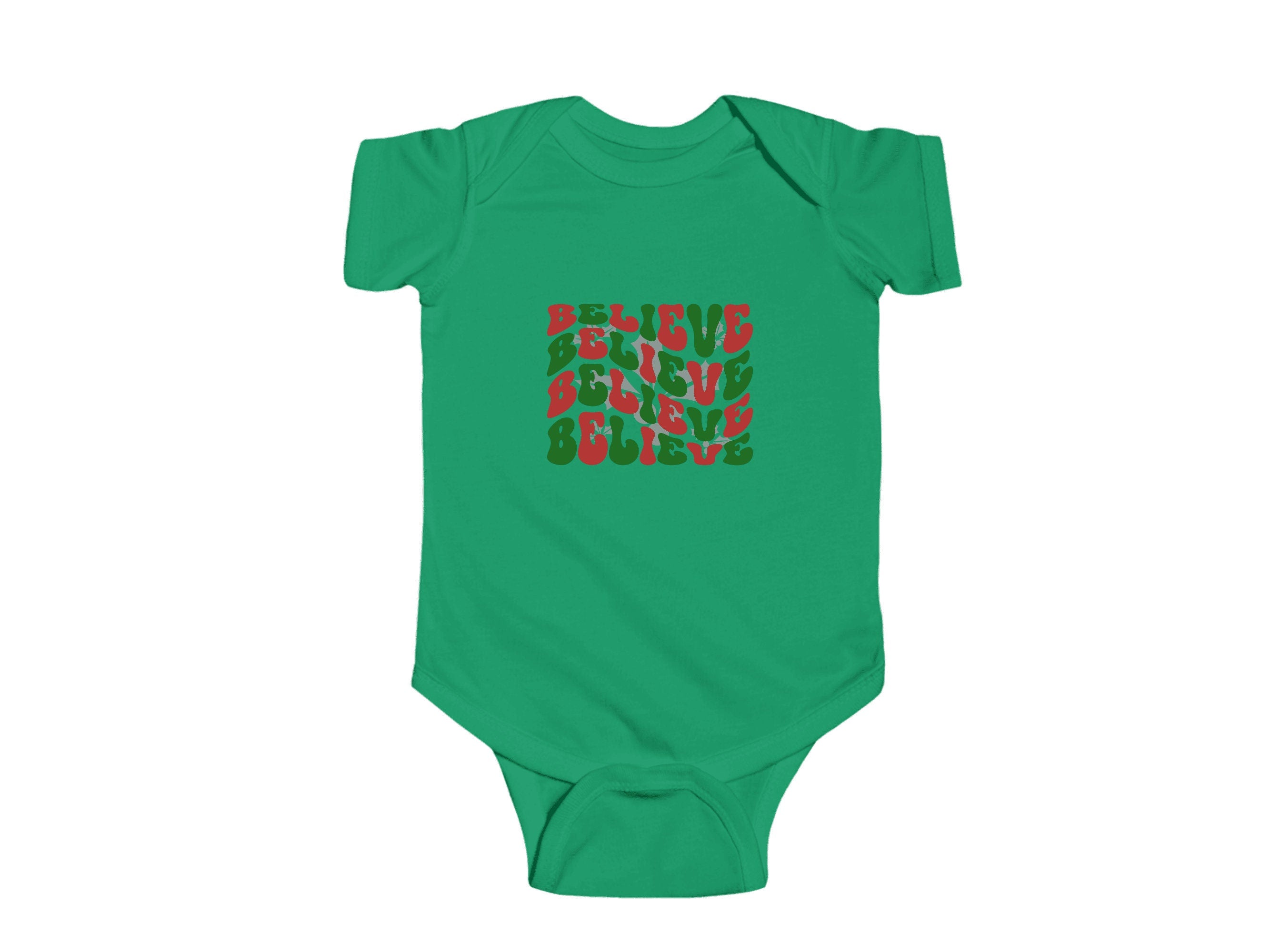 Dressing your little one for Christmas has never been so adorable. Order our "Believe" holiday Baby Bodysuit today and let your infant join in the holiday fun in style and comfort.