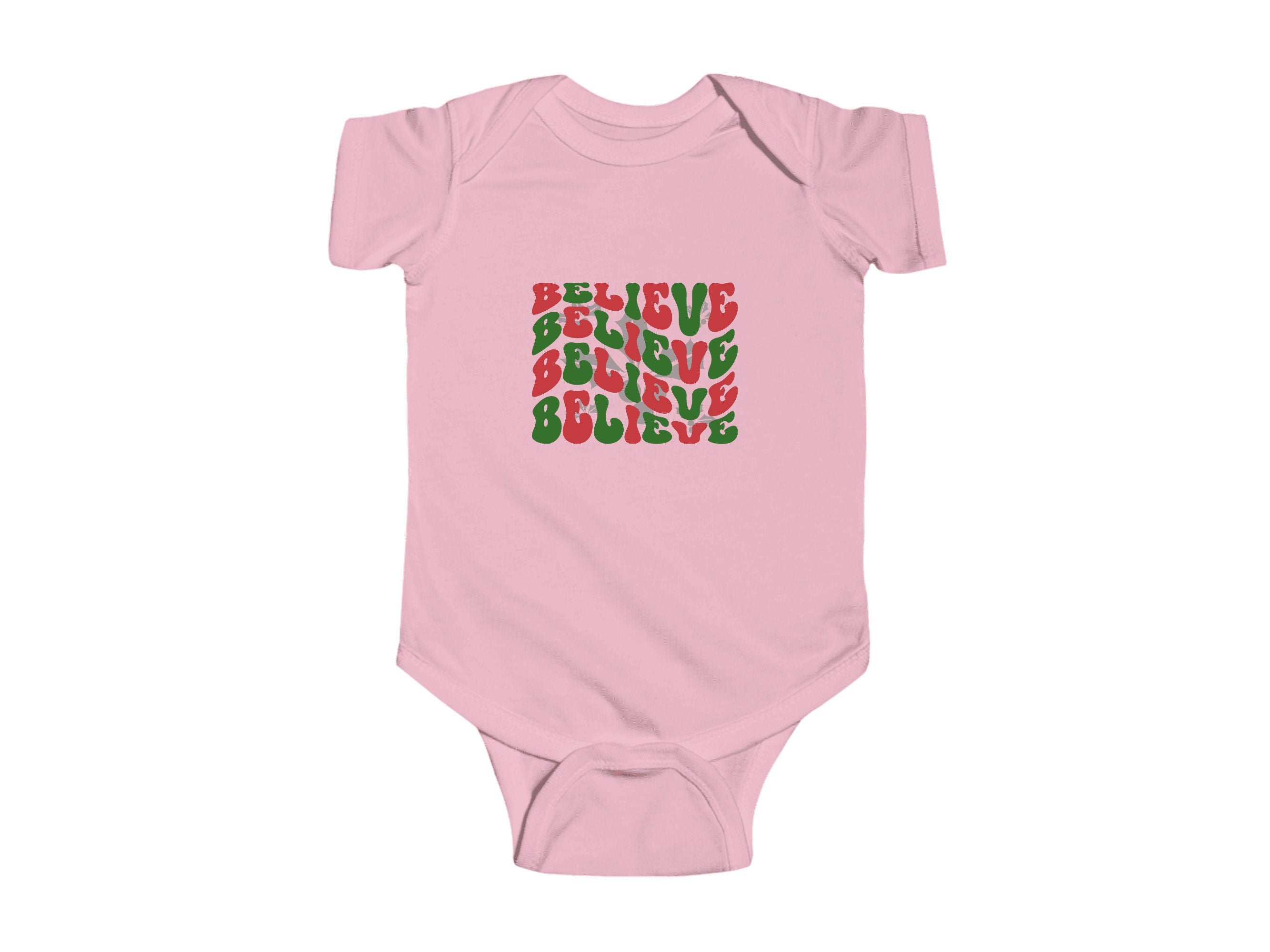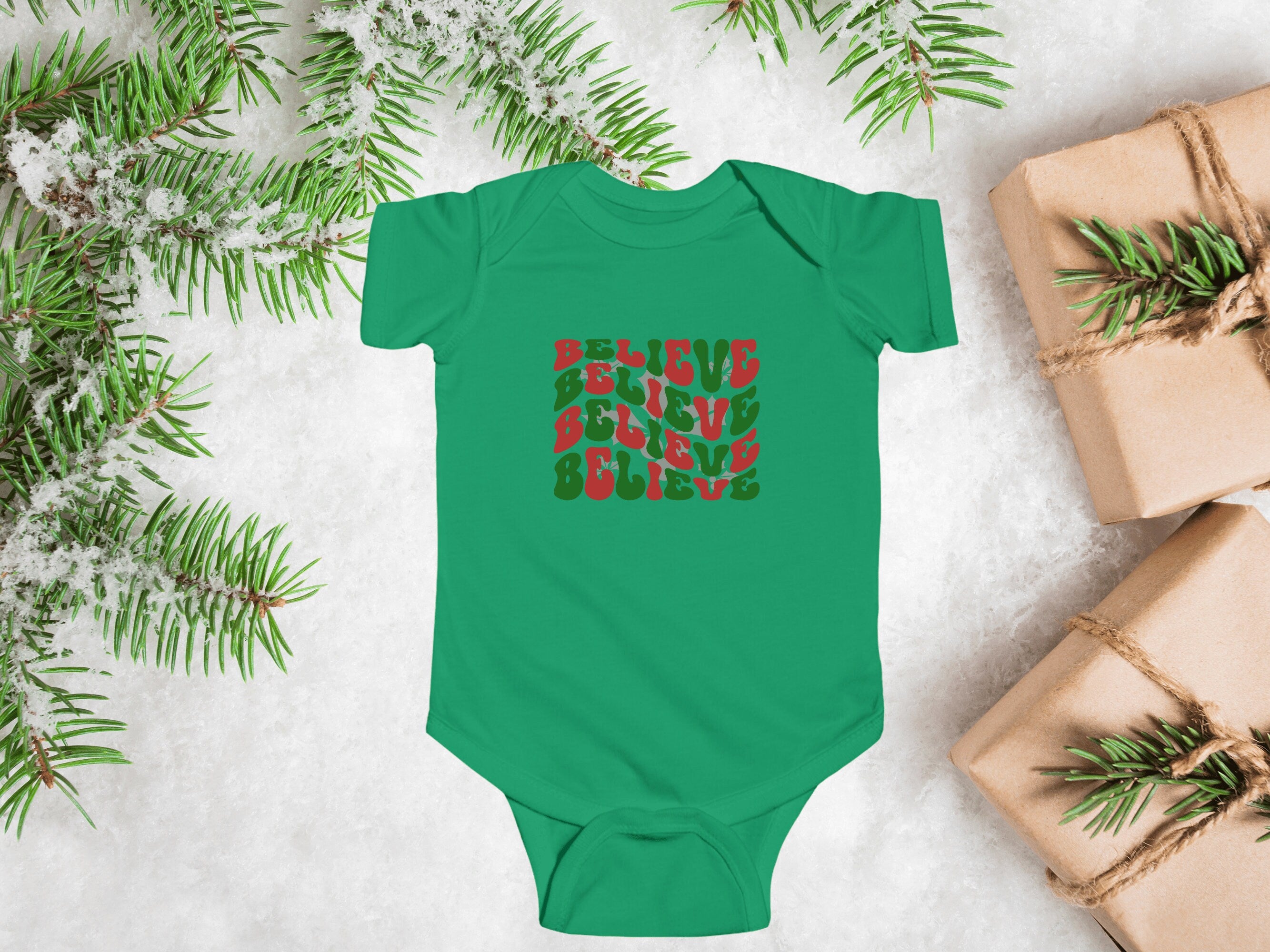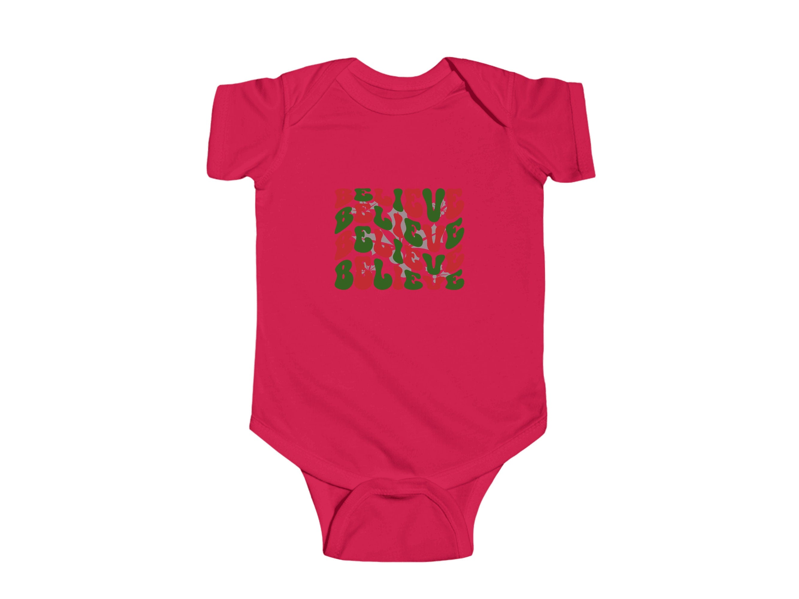 Dressing your little one for Christmas has never been so adorable. Order our "Believe" holiday Baby Bodysuit today and let your infant join in the holiday fun in style and comfort.