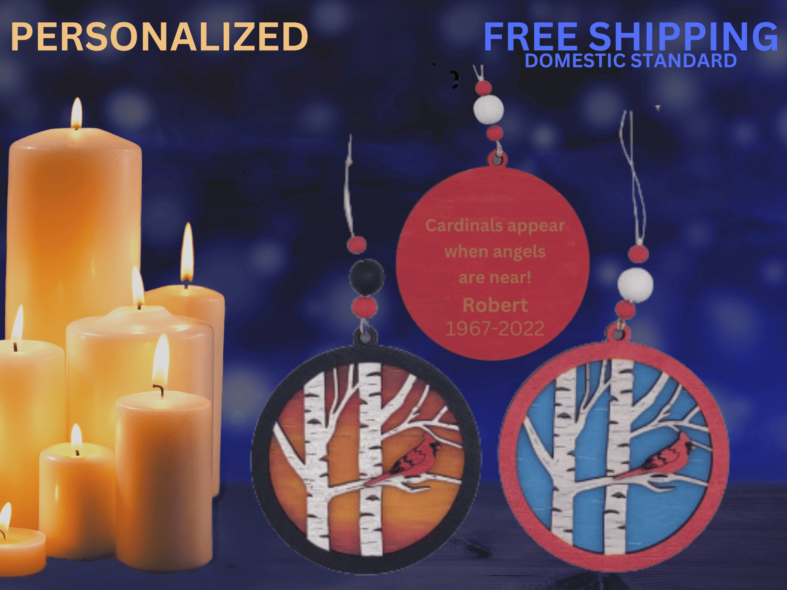 Losing a loved one is one of life's most challenging experiences. These memorial cardinal ornaments are designed to provide comfort and solace to those who have lost a relative or cherished individual. The cardinal, often seen as a symbol of hope and love, is available in two colors and can be personalized with meaningful memorial messages.