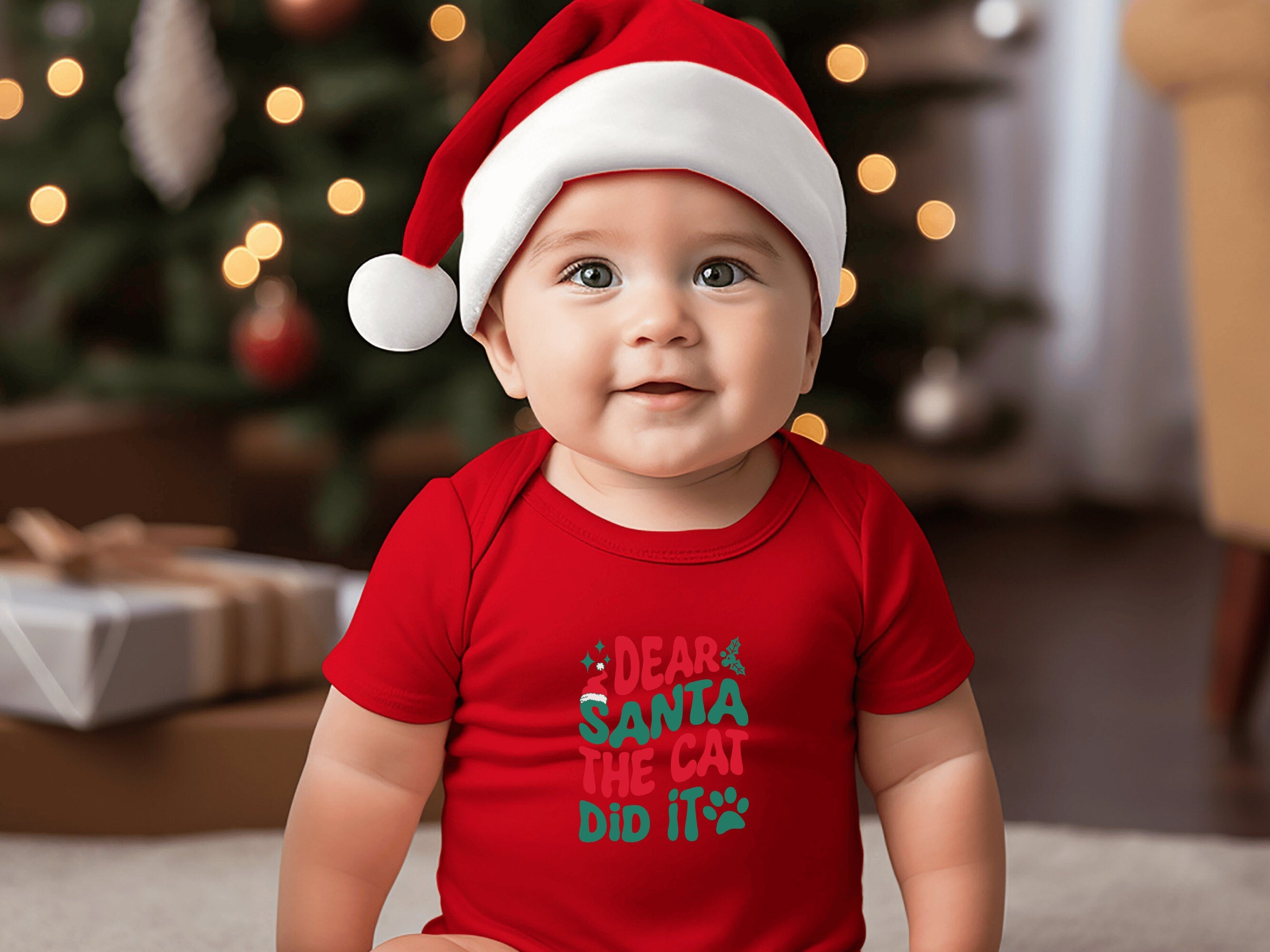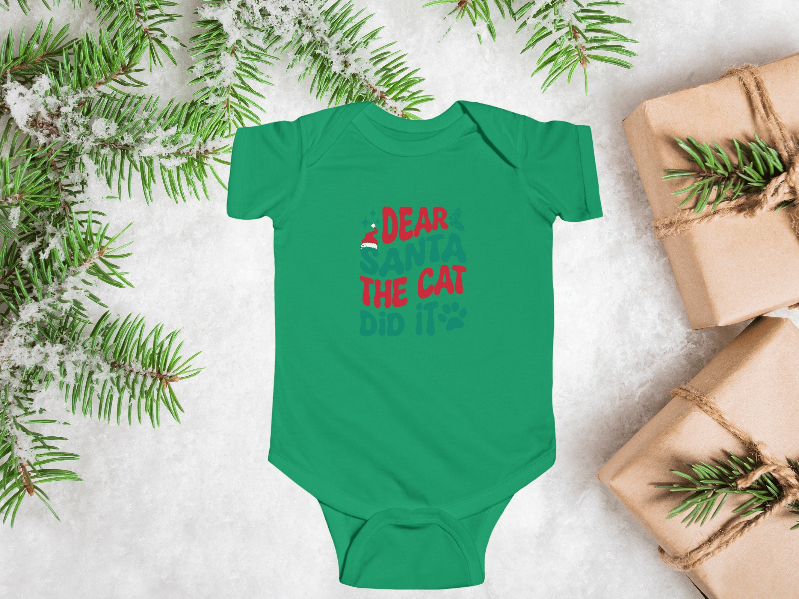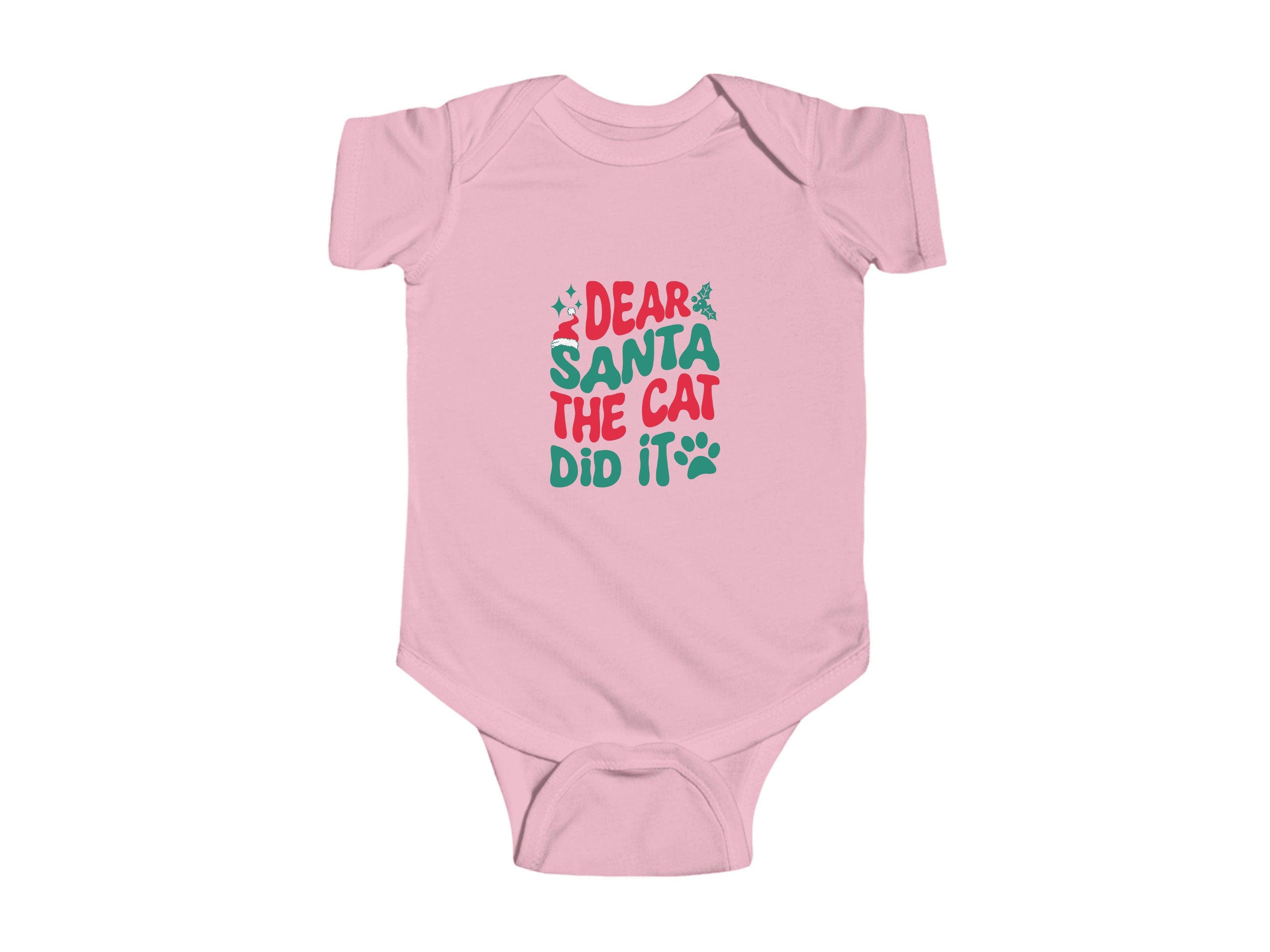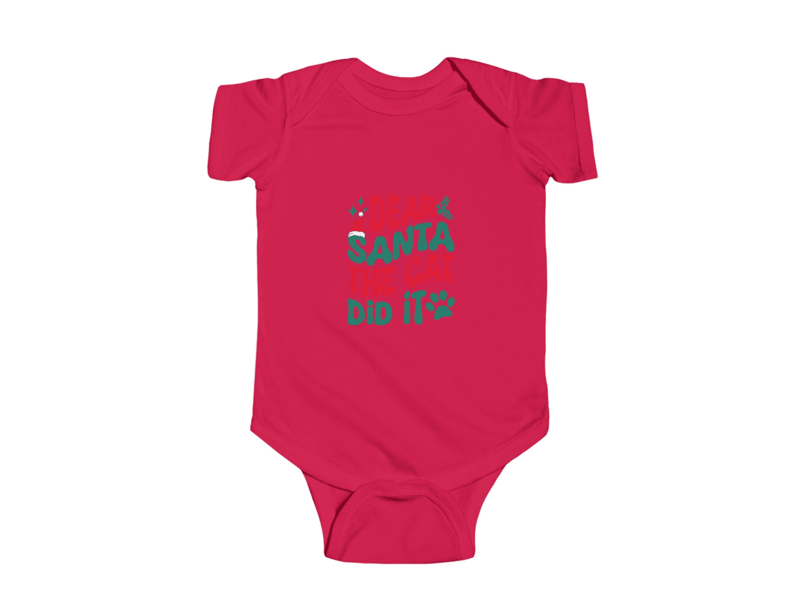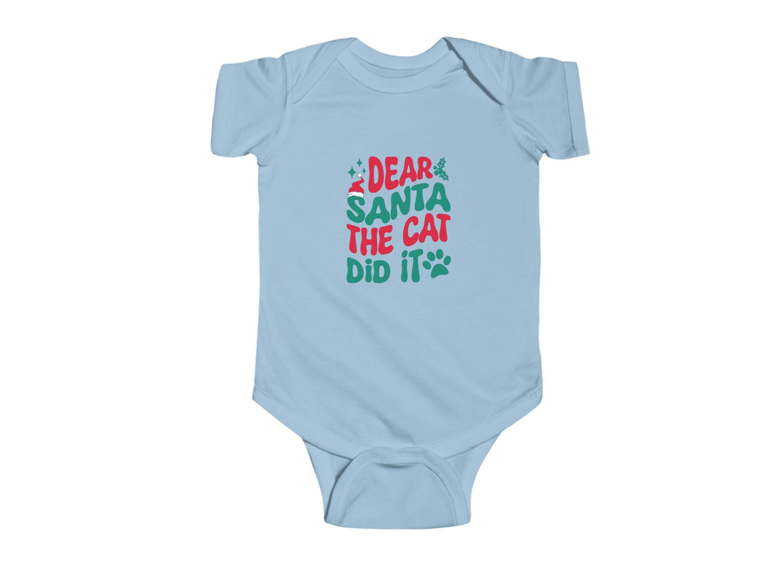 Get ready to add a dash of cuteness to your little one's Holiday wardrobe with our "Dear Santa the Cat Did It " Christmas Baby Bodysuit. This charming infant bodysuit is adorned with a fun and festive otter theme, available in six delightful colors. It's the perfect choice for your infant's Holiday outfit and an excellent Christmas gift for friends and family.