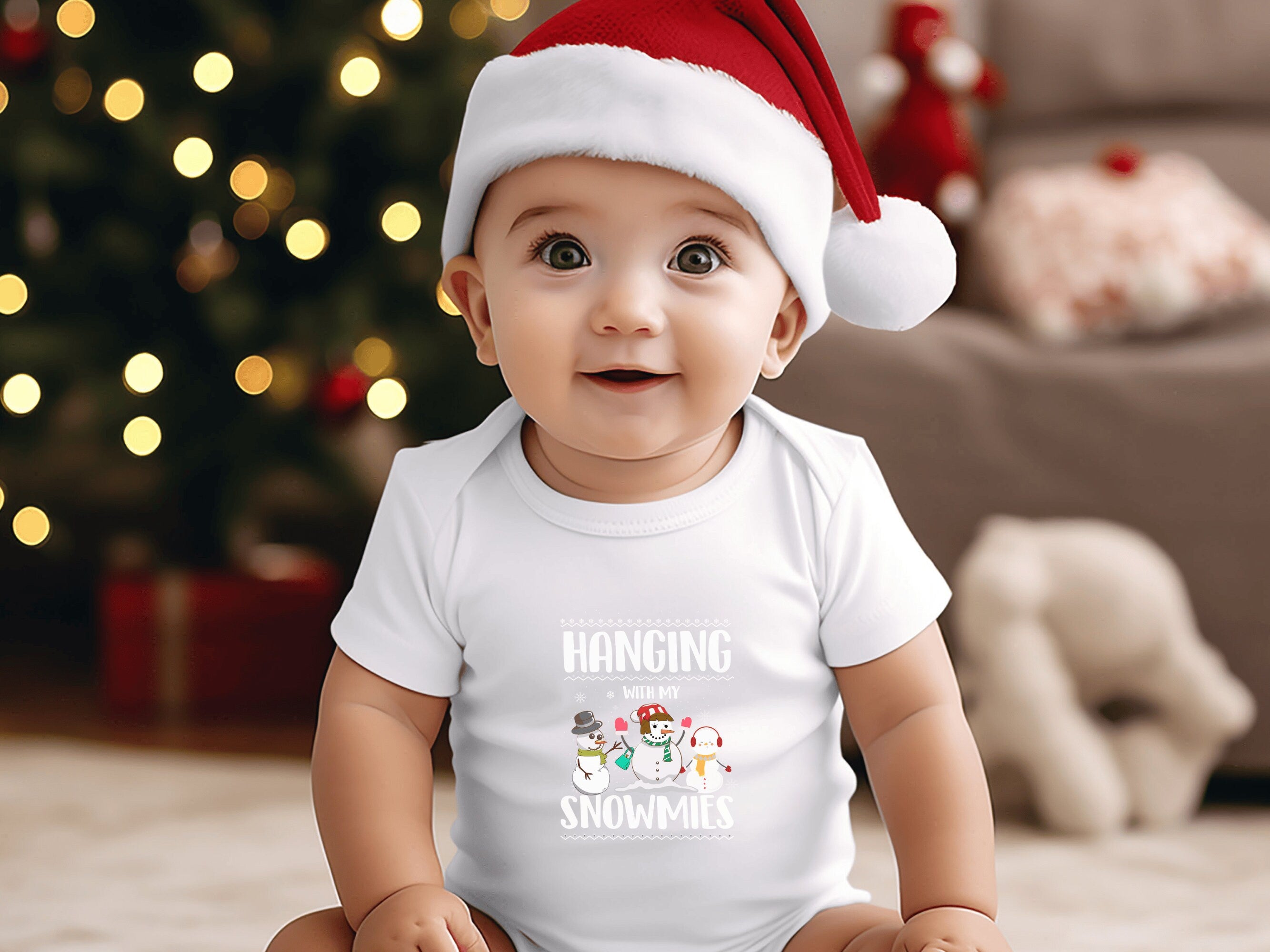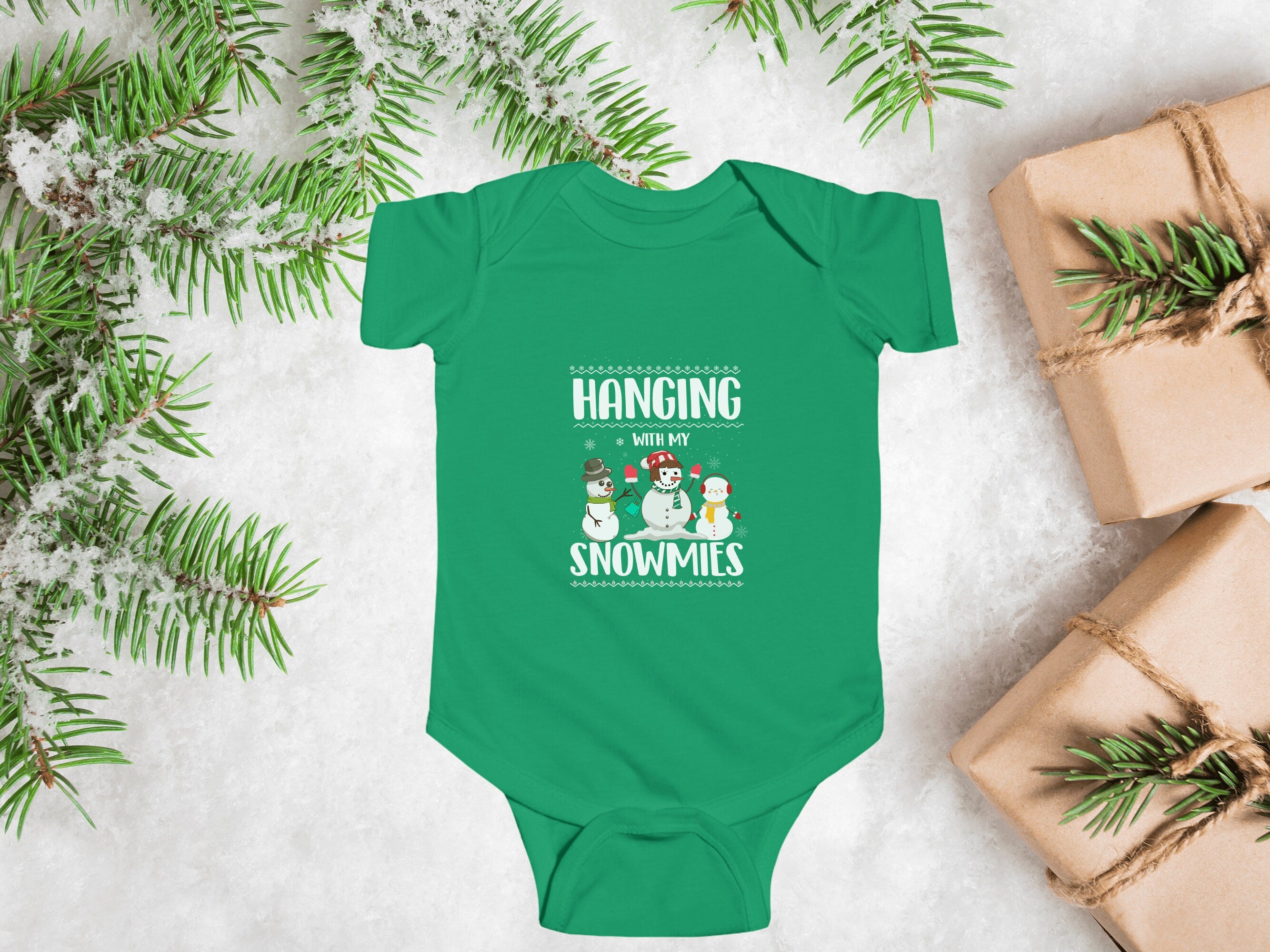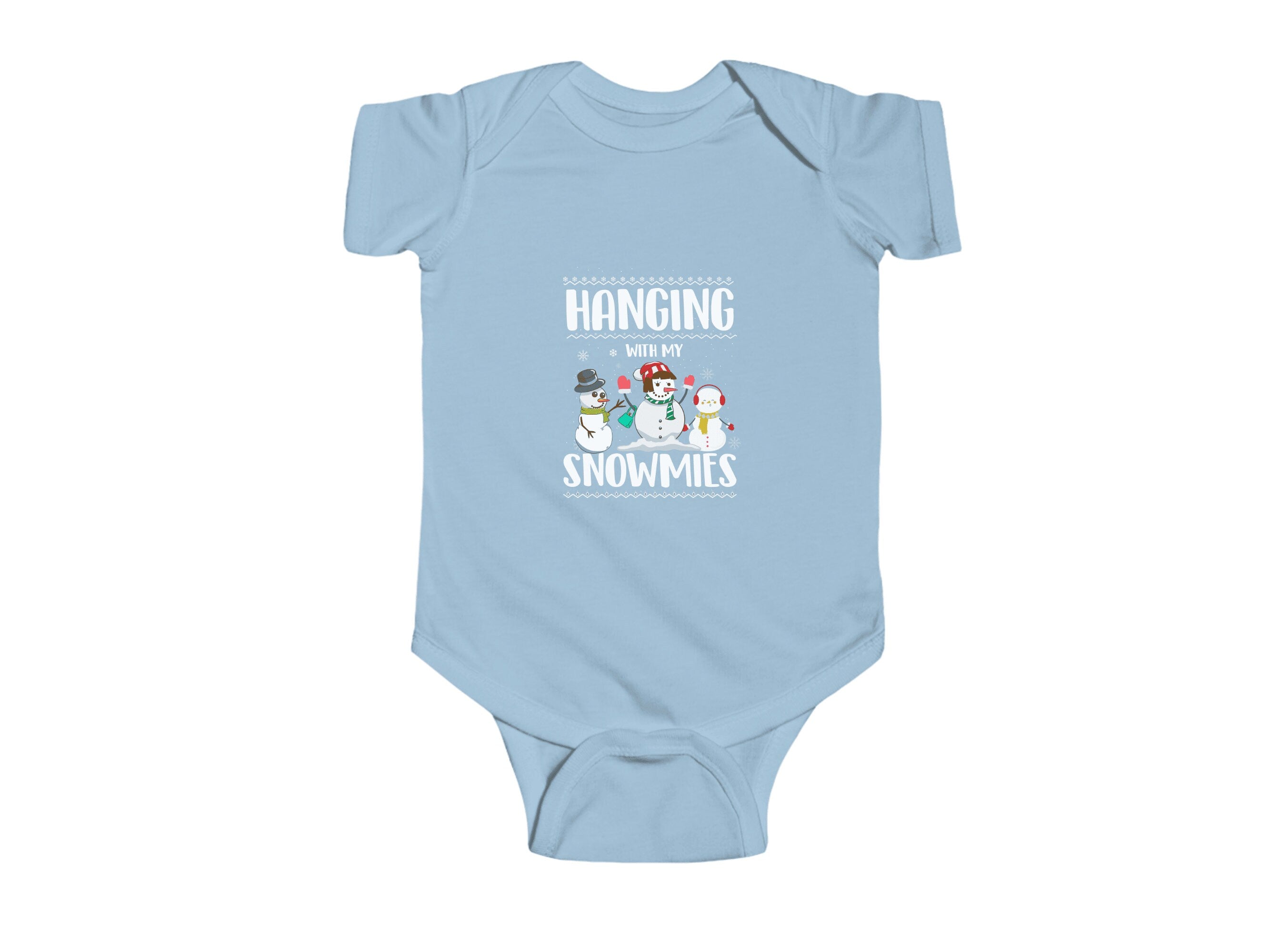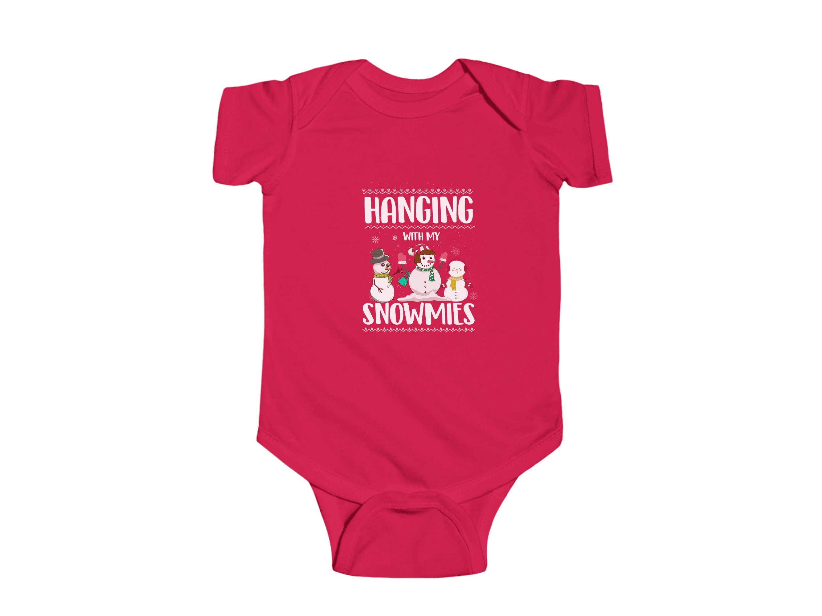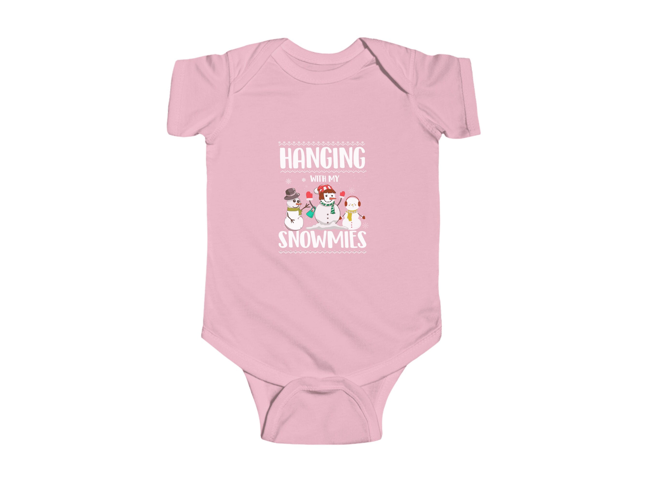 Get ready to add a dash of cuteness to your little one's Holiday wardrobe with our "Hanging With My Snowmies " Christmas Baby Bodysuit. This charming infant bodysuit is adorned with a fun and festive otter theme, available in six delightful colors. It's the perfect choice for your infant's Holiday outfit and an excellent Christmas gift for friends and family.