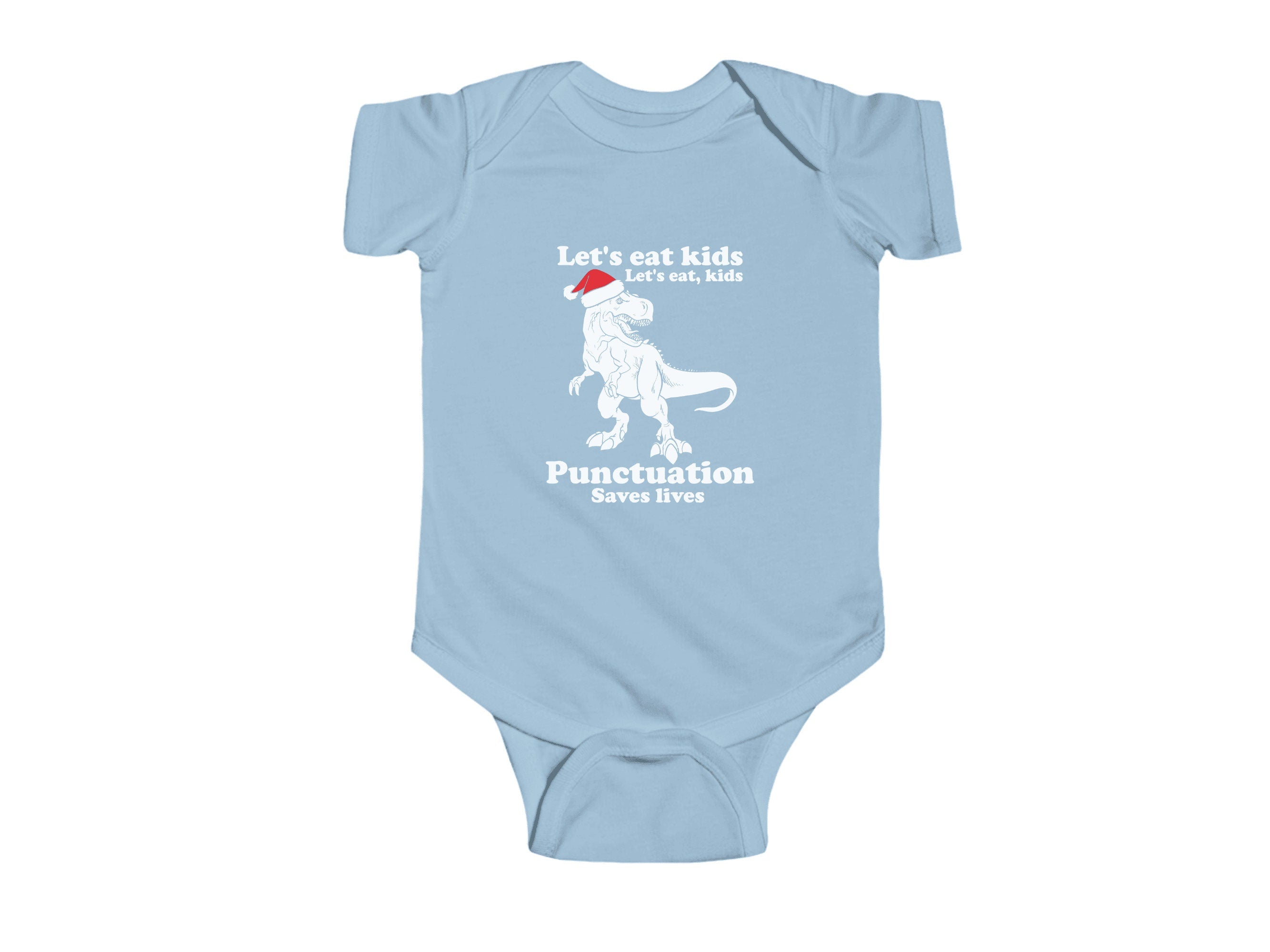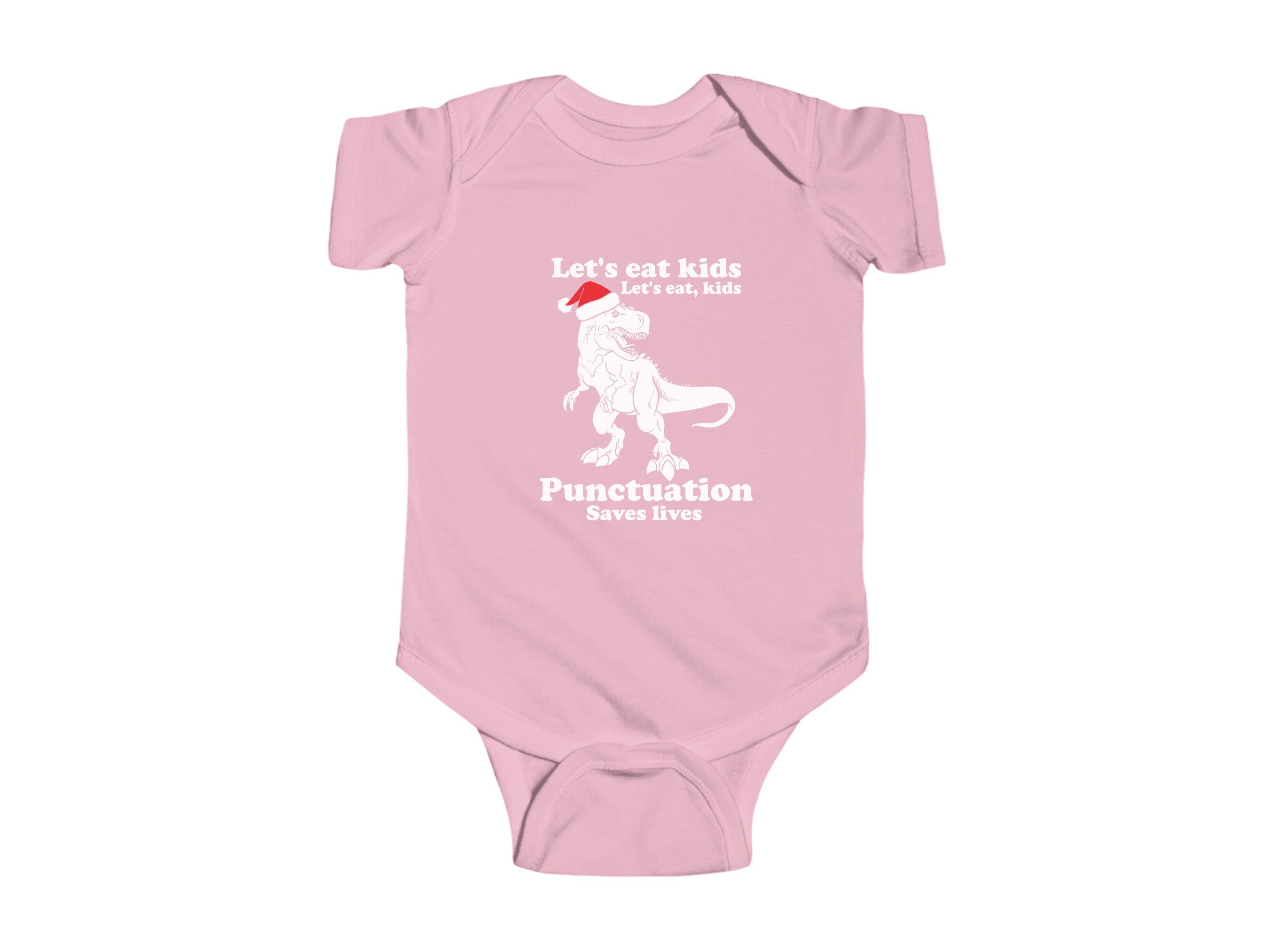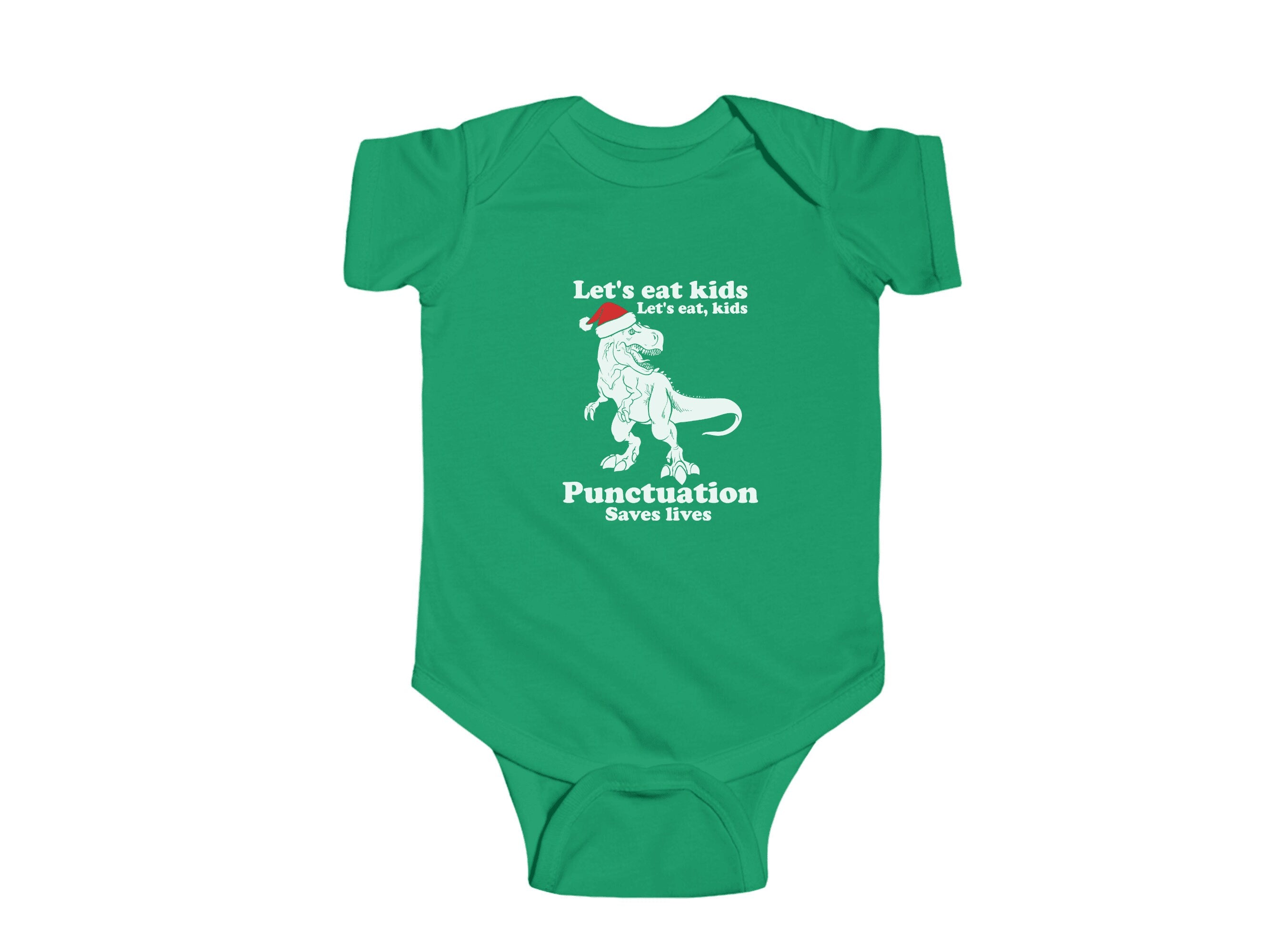 Dressing your little one for Christmas has never been so adorable. Order our "Let's Eat Kids, Lets Eat, Kids. Punctuation Saves Lives" holiday Baby Bodysuit today and let your infant join in the holiday fun in style and comfort.