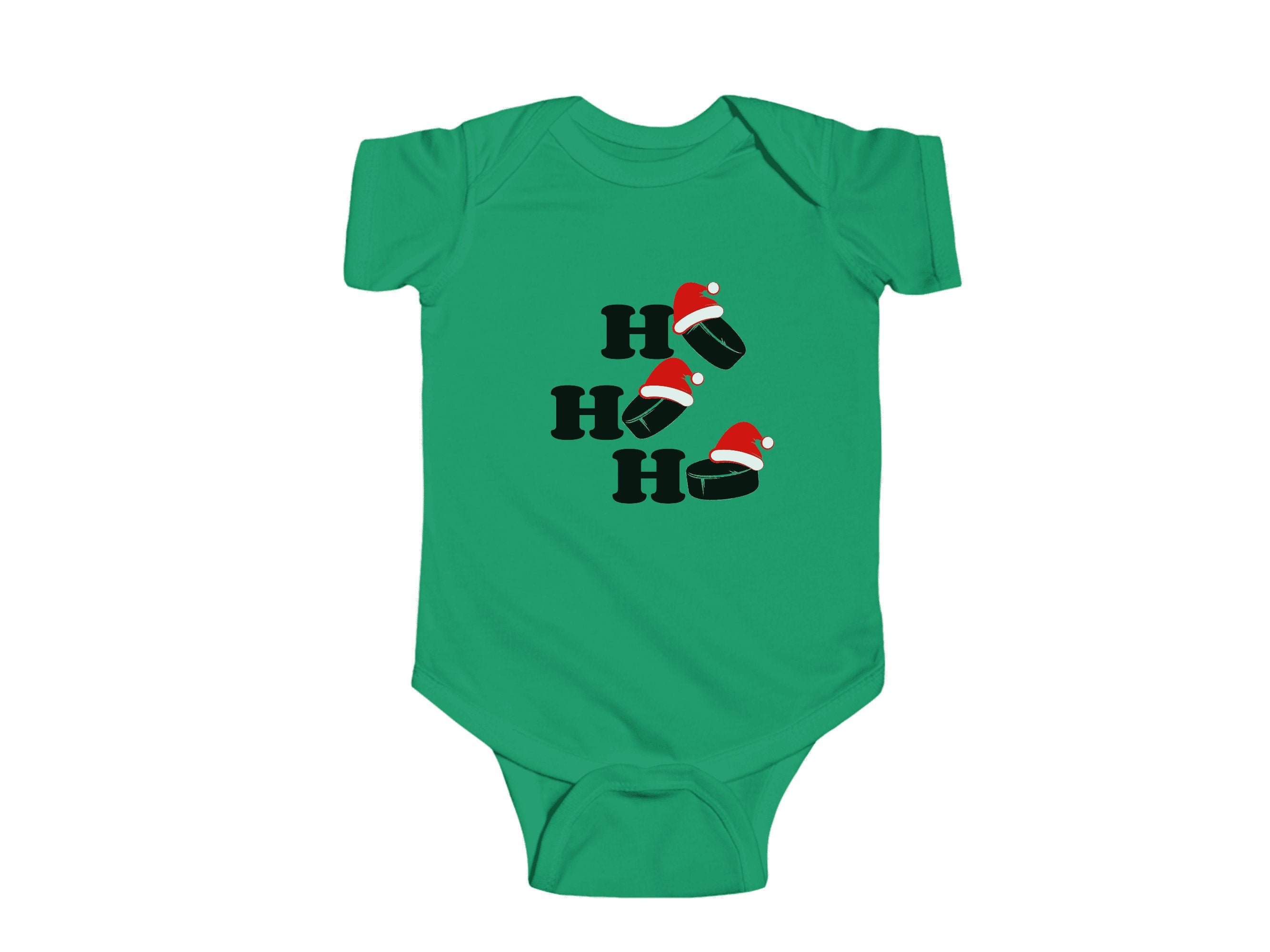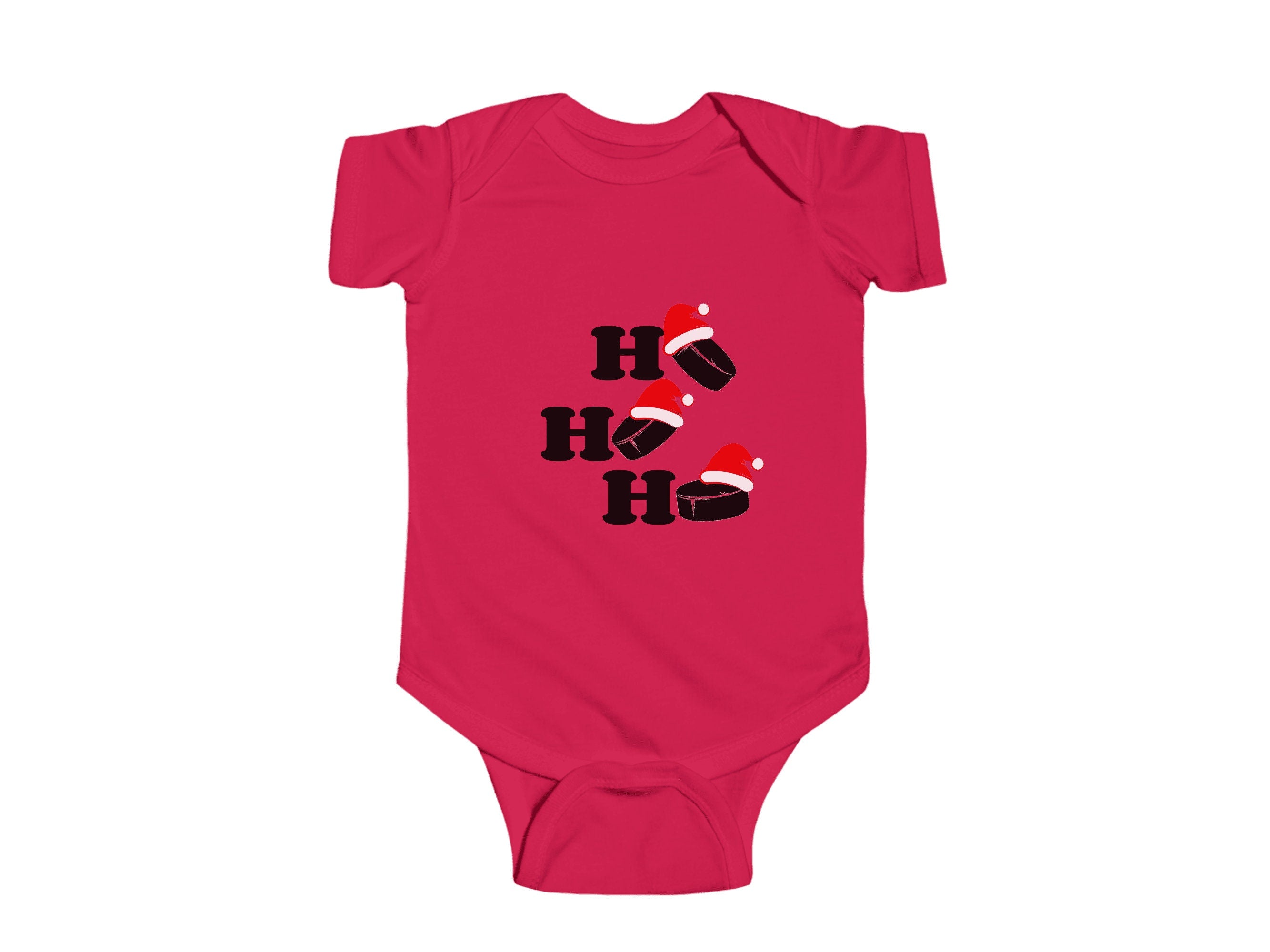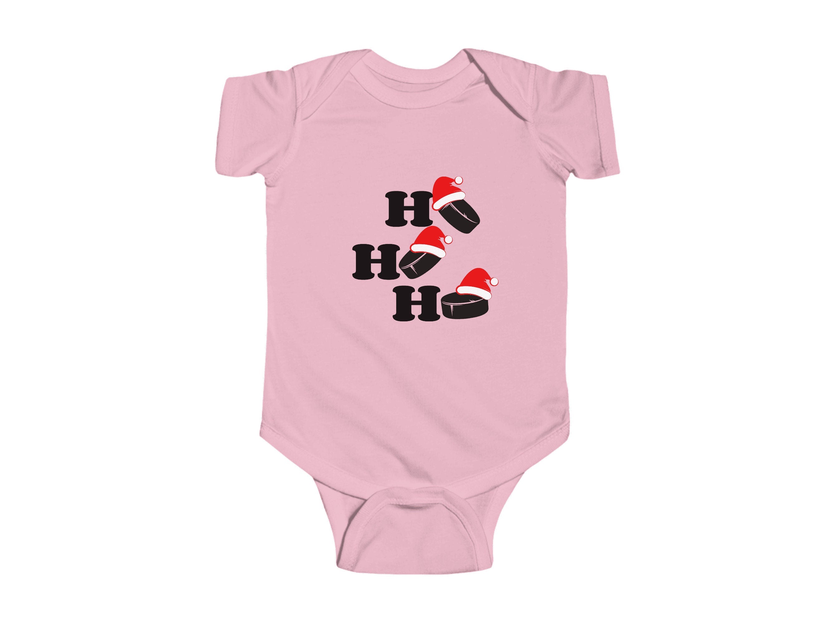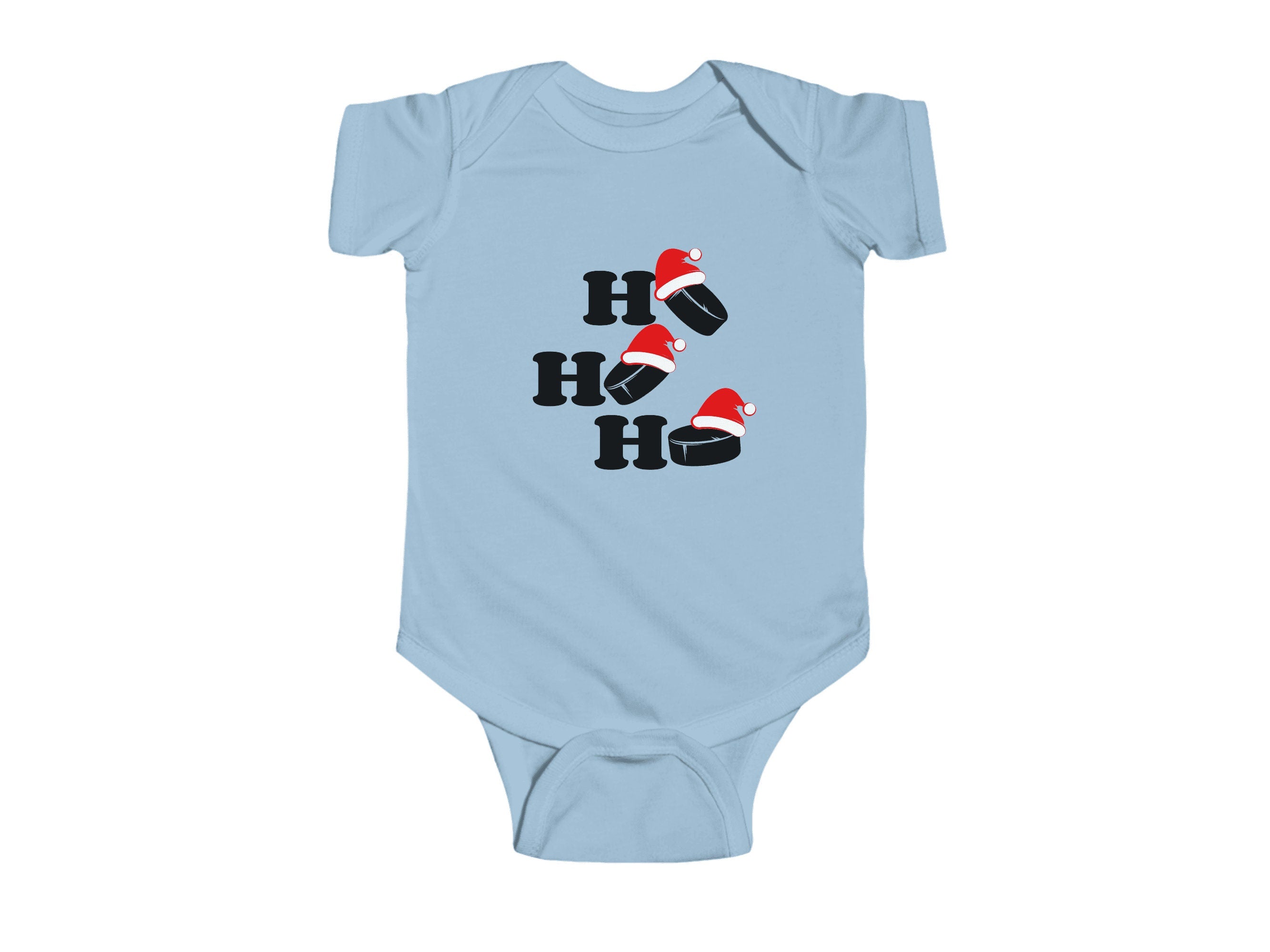 Get ready to add a dash of cuteness to your little one's Holiday wardrobe with our "Ho Ho Ho Hockey Pucks" Christmas Baby Bodysuit. This charming infant bodysuit is adorned with a fun and festive otter theme, available in six delightful colors. It's the perfect choice for your infant's Holiday outfit and an excellent Christmas gift for friends and family.