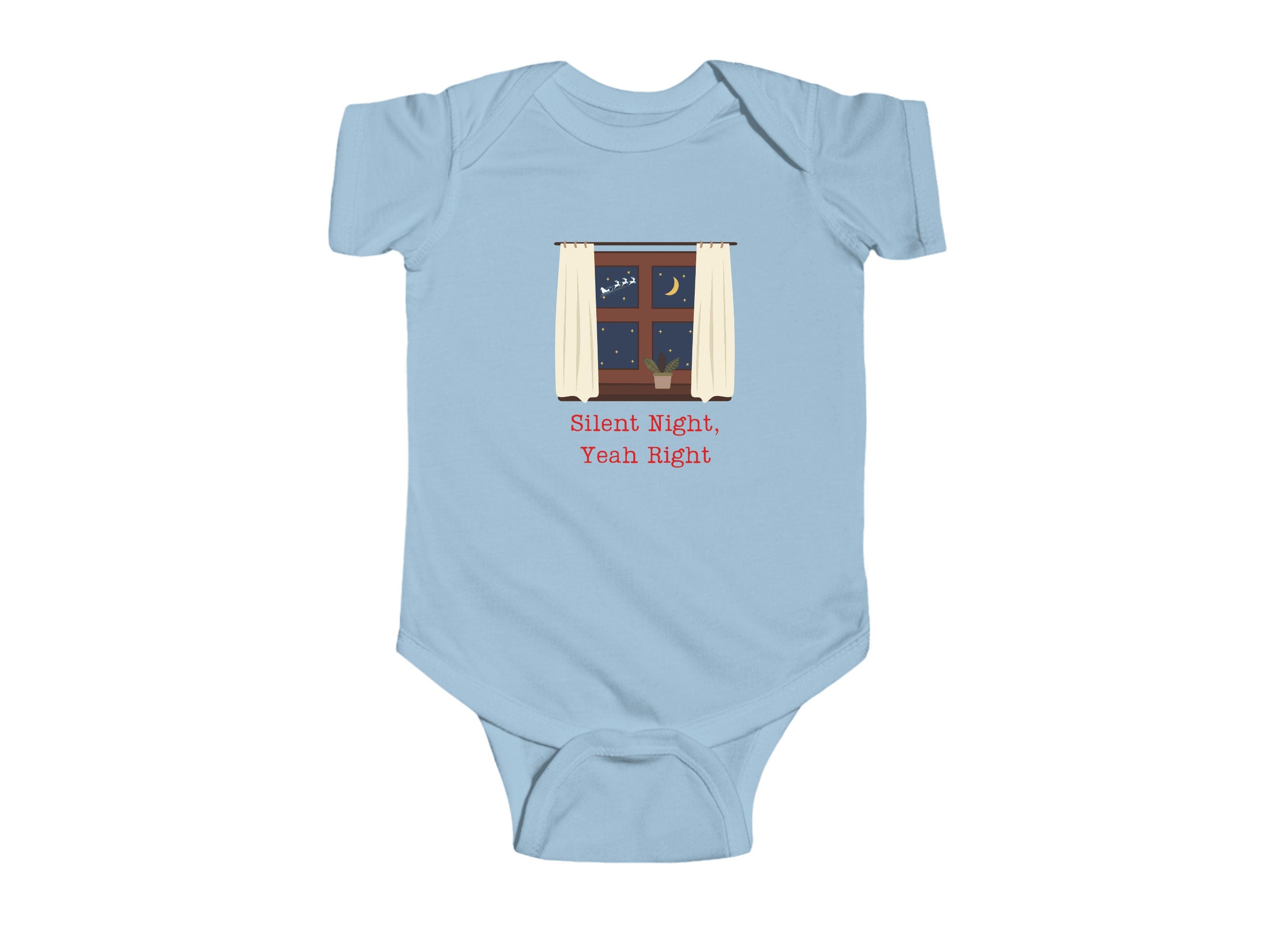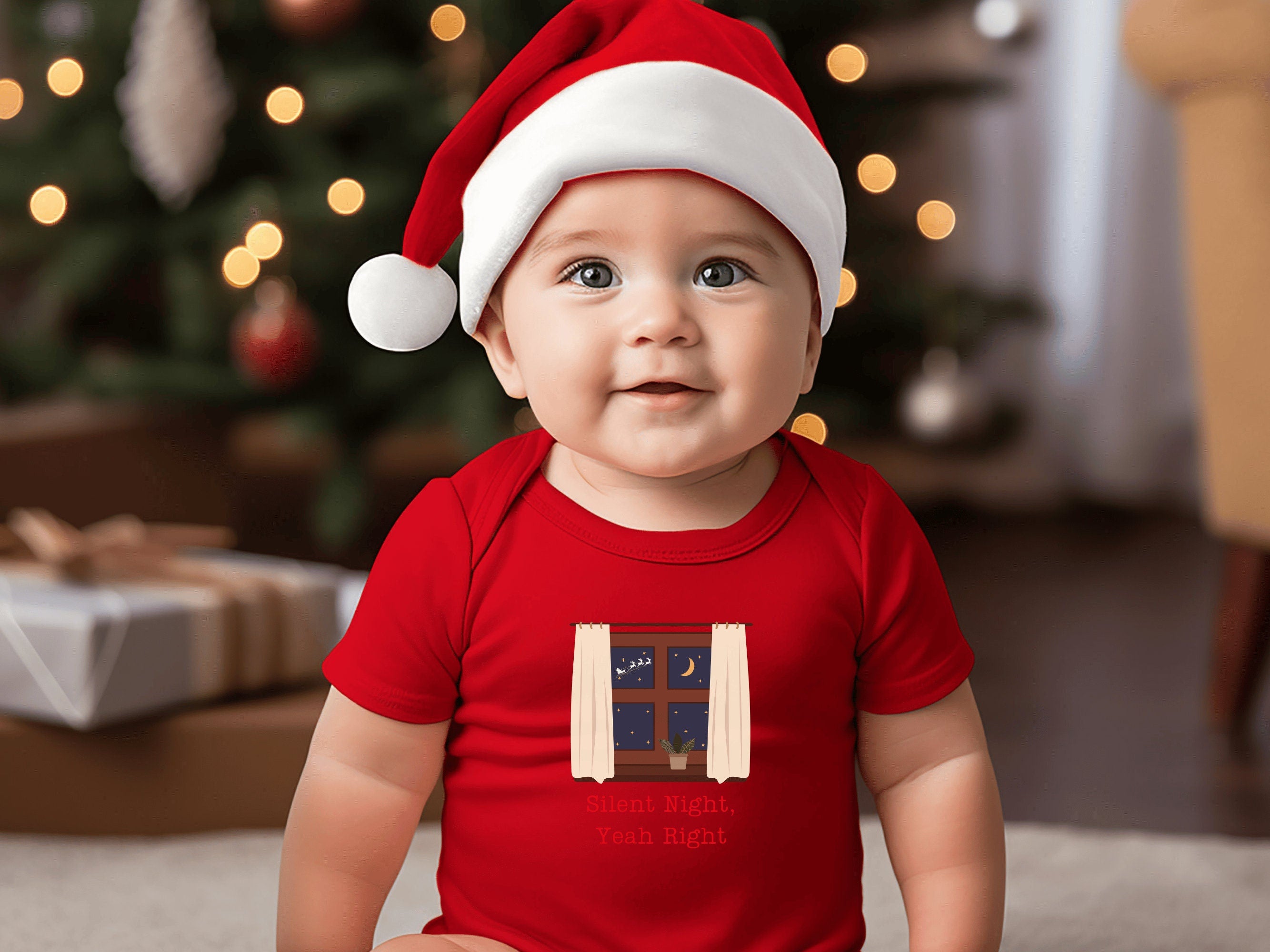 Dressing your little one for Christmas has never been so adorable. Order our "Silent Night, Yeah Right" holiday Baby Bodysuit today and let your infant join in the holiday fun in style and comfort.