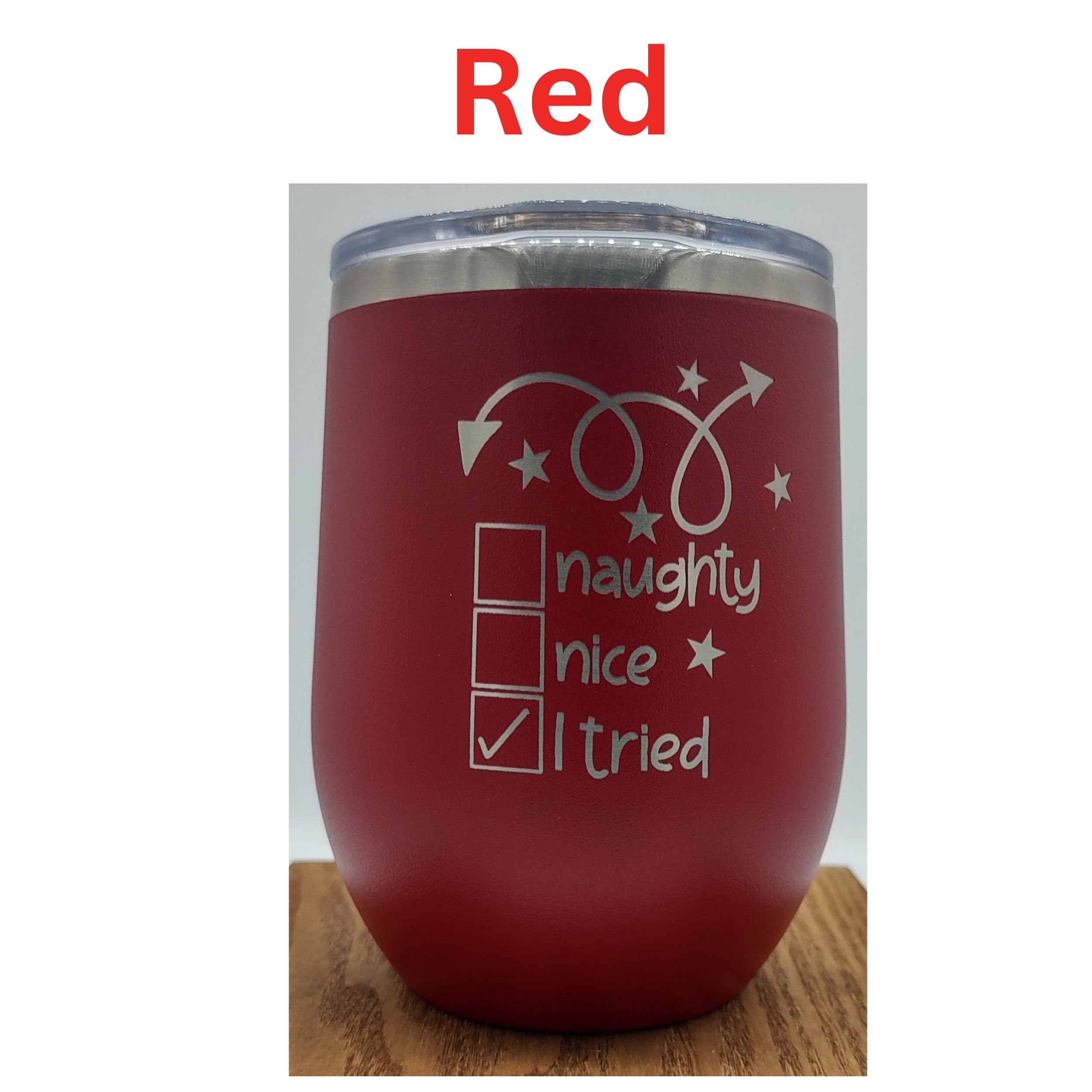 - Festive Design Options: Choose from two traditional holiday colors, red or green, to set the tone for your holiday gatherings. The front of the tumbler is available in two options: "Meet Me Under the Mistletoe" or "Naughty, Nice, I tried." These whimsical sayings add a touch of humor to your celebrations.