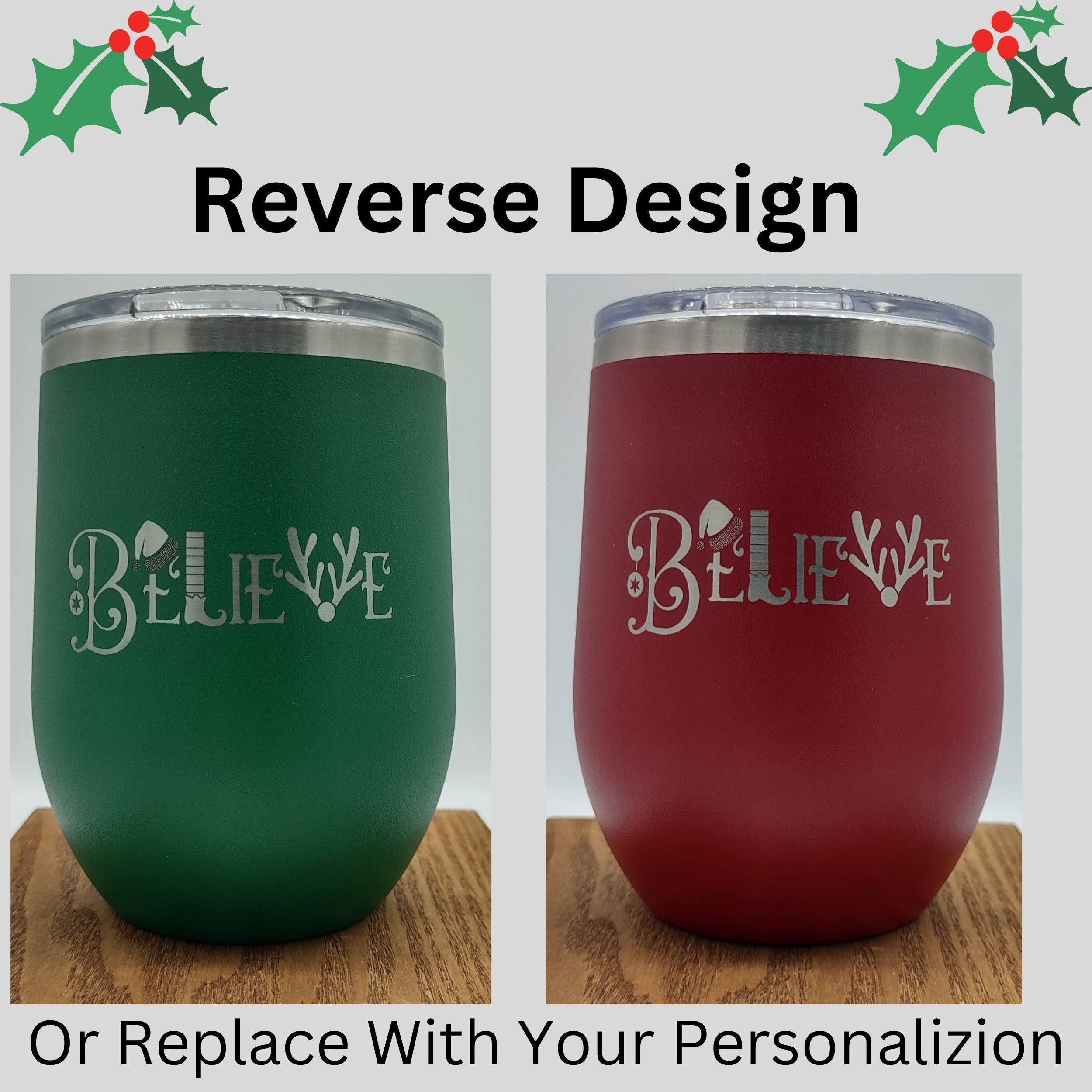 - Personalization Option: Make these tumblers truly your own with the option for personalization. If you choose to personalize, it will replace the "Believe" message on the reverse side, adding a unique and heartfelt touch to your drinkware.