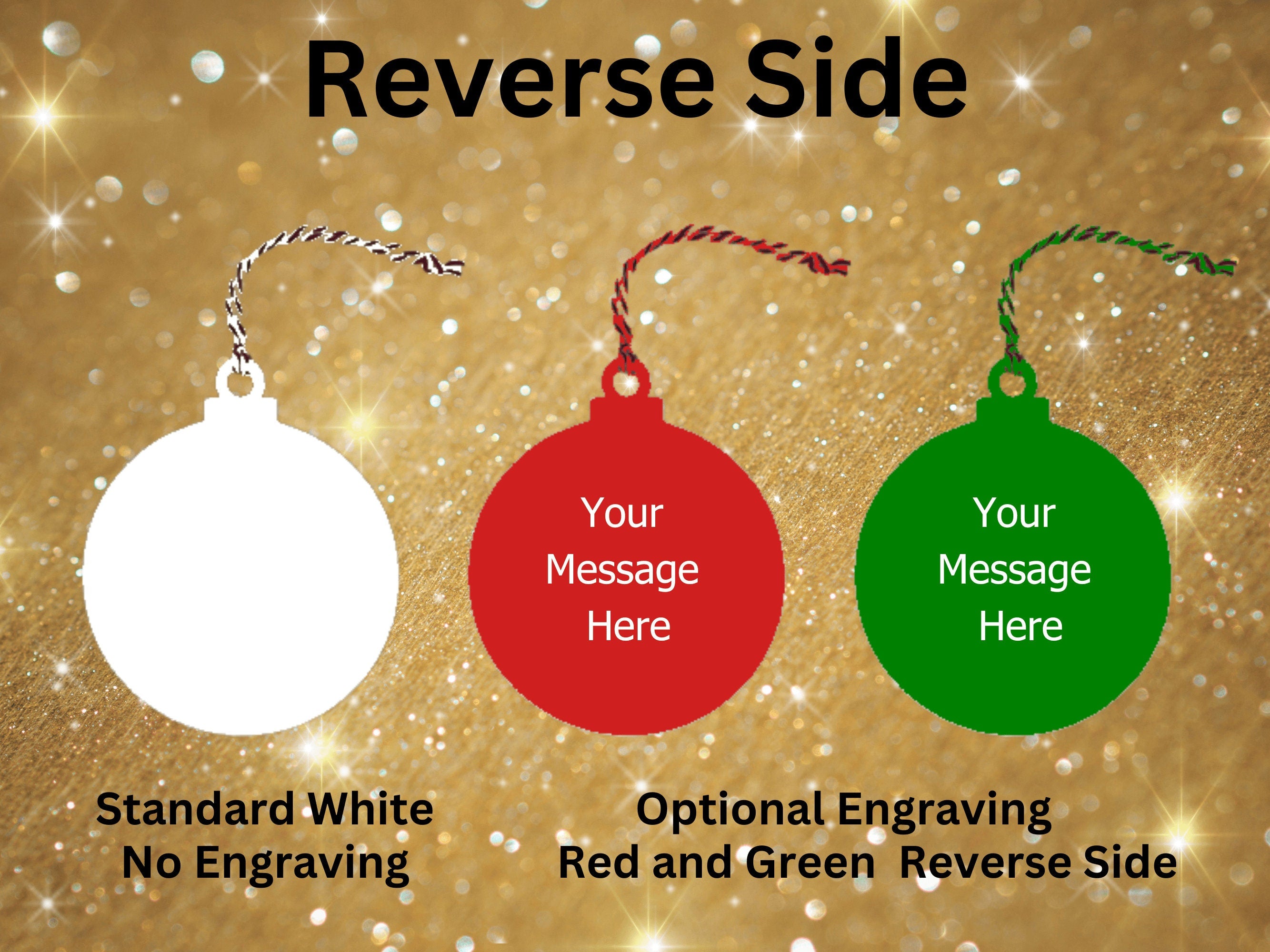 Optional Engraving: Personalize your ornament with optional engraving on the back, making it a unique and thoughtful gift. If selected, the back side or the ornament color will match the front side.