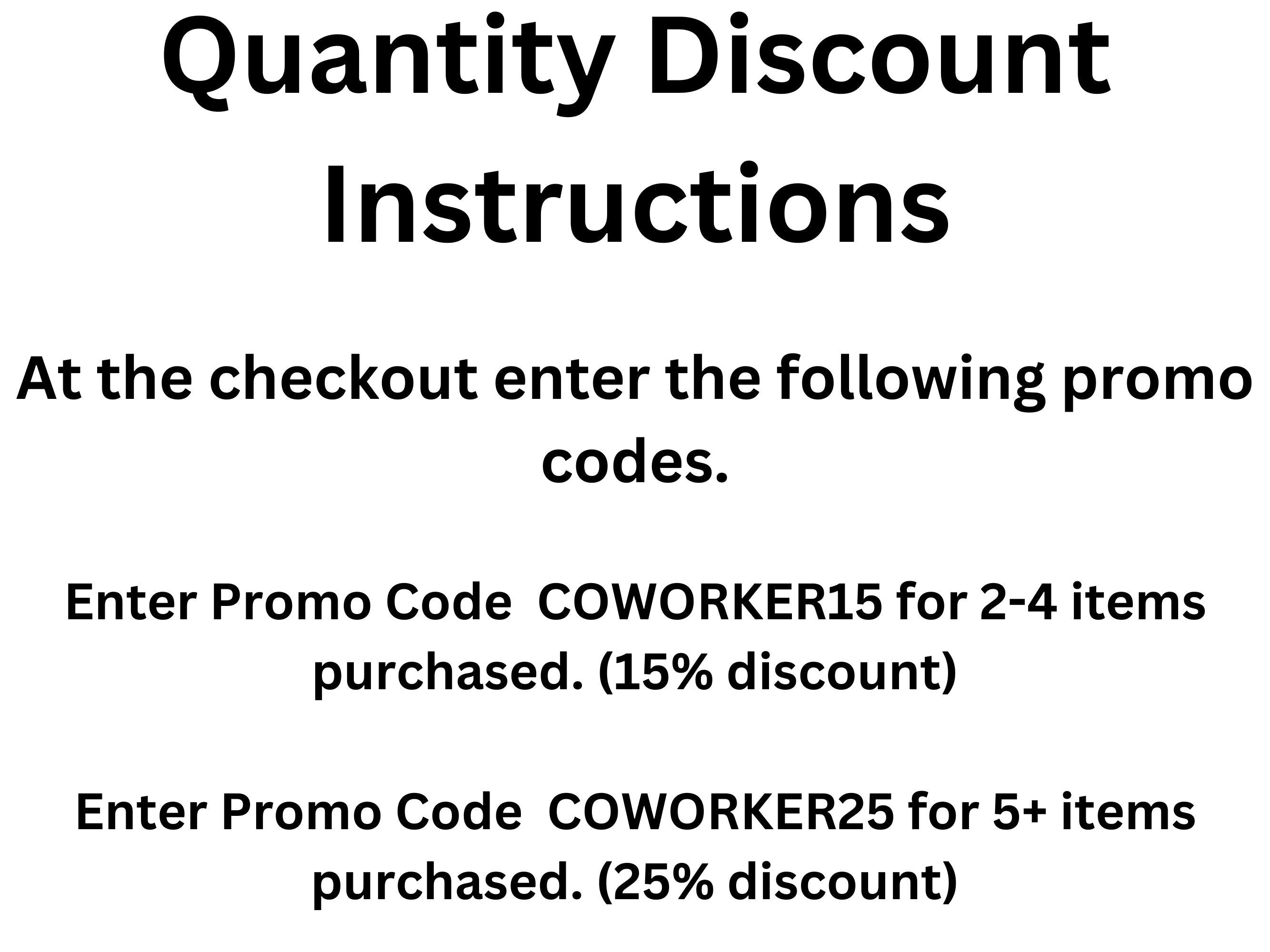 Enter Promo Code COWORKER25 for 5+ items purchased. (25% discount)