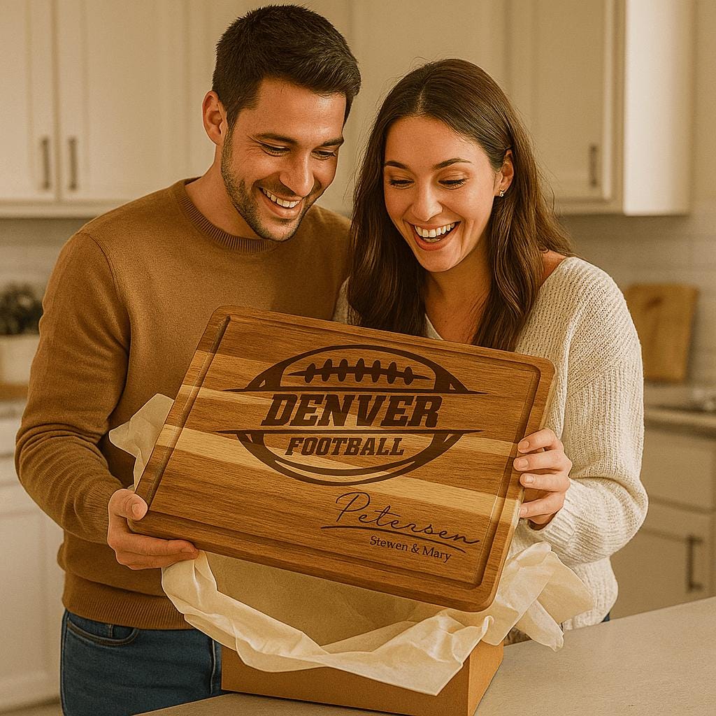 π Custom Denver Football Cutting Board β Personalized Acacia Wood β The Perfect Holiday & Game Day Gift! Looking for the ultimate gift for a Denver football fan β or the perfect Super Bowl party accessory? This personalized acacia cutting board is a stunning kitchen keepsake that blends team spirit, craftsmanship, and functionality. Whether youβre serving game-day snacks, prepping meals, or displaying it at a tailgate, this board is built to impress.