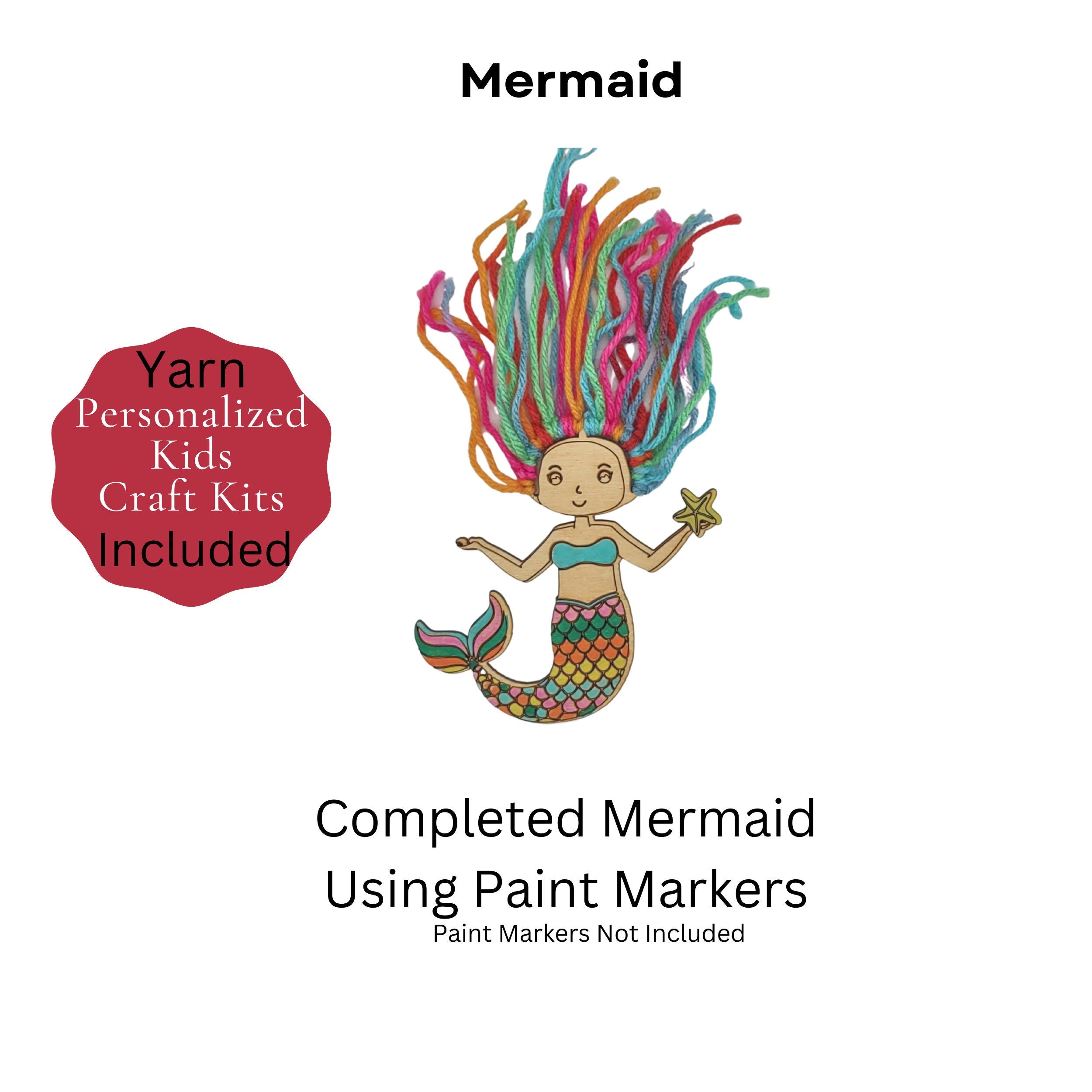 Mermaid Yarn Kit: Make your flower girl's day even more special with a fun craft activity. The Mermaid Yarn Kit is laser cut and engraved in our shop and includes pre-cut yarn for your child to attach as hair. She can color it as desired with markers or paint, letting her creativity shine.