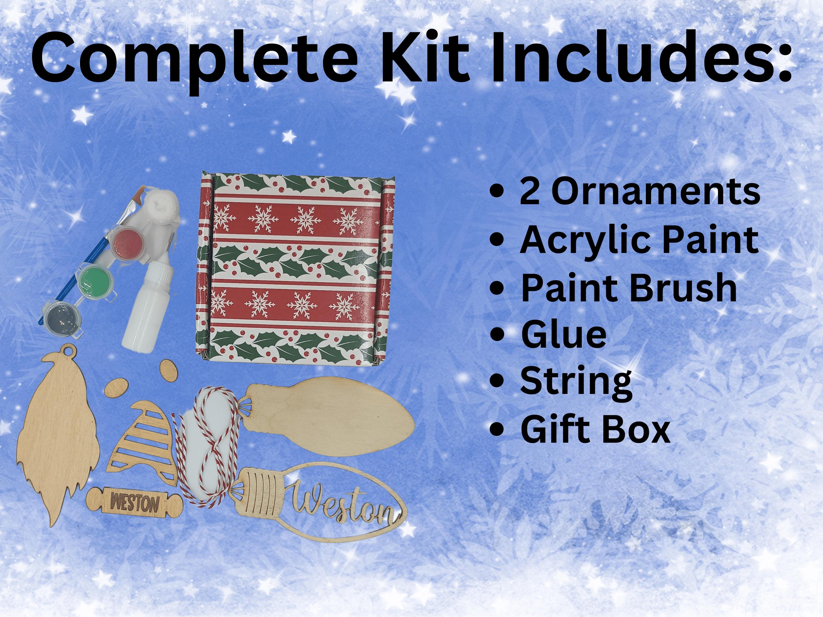 π Each kit comes with two Baltic Birch wood ornaments, ready to be painted and personalized with names of your choice. The ornaments are durable, lightweight, and approximately 4.25 inches tall, making them the perfect size for Christmas trees, stockings, or gift toppers.
