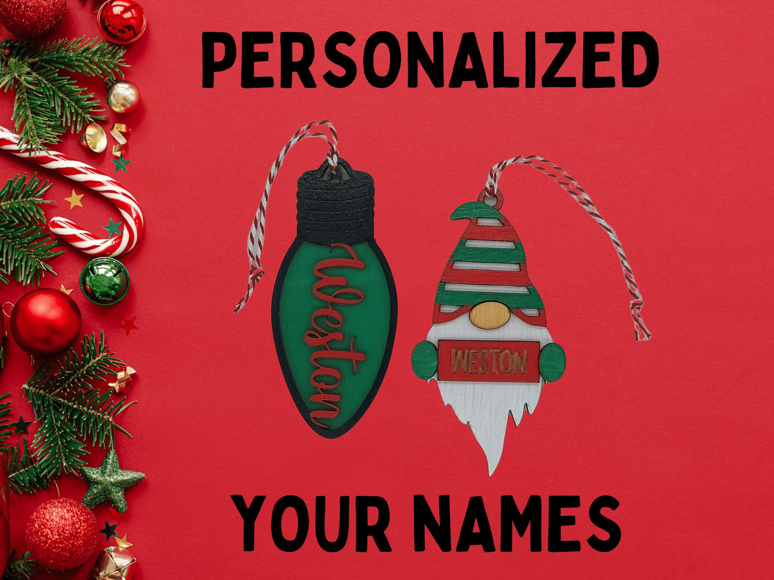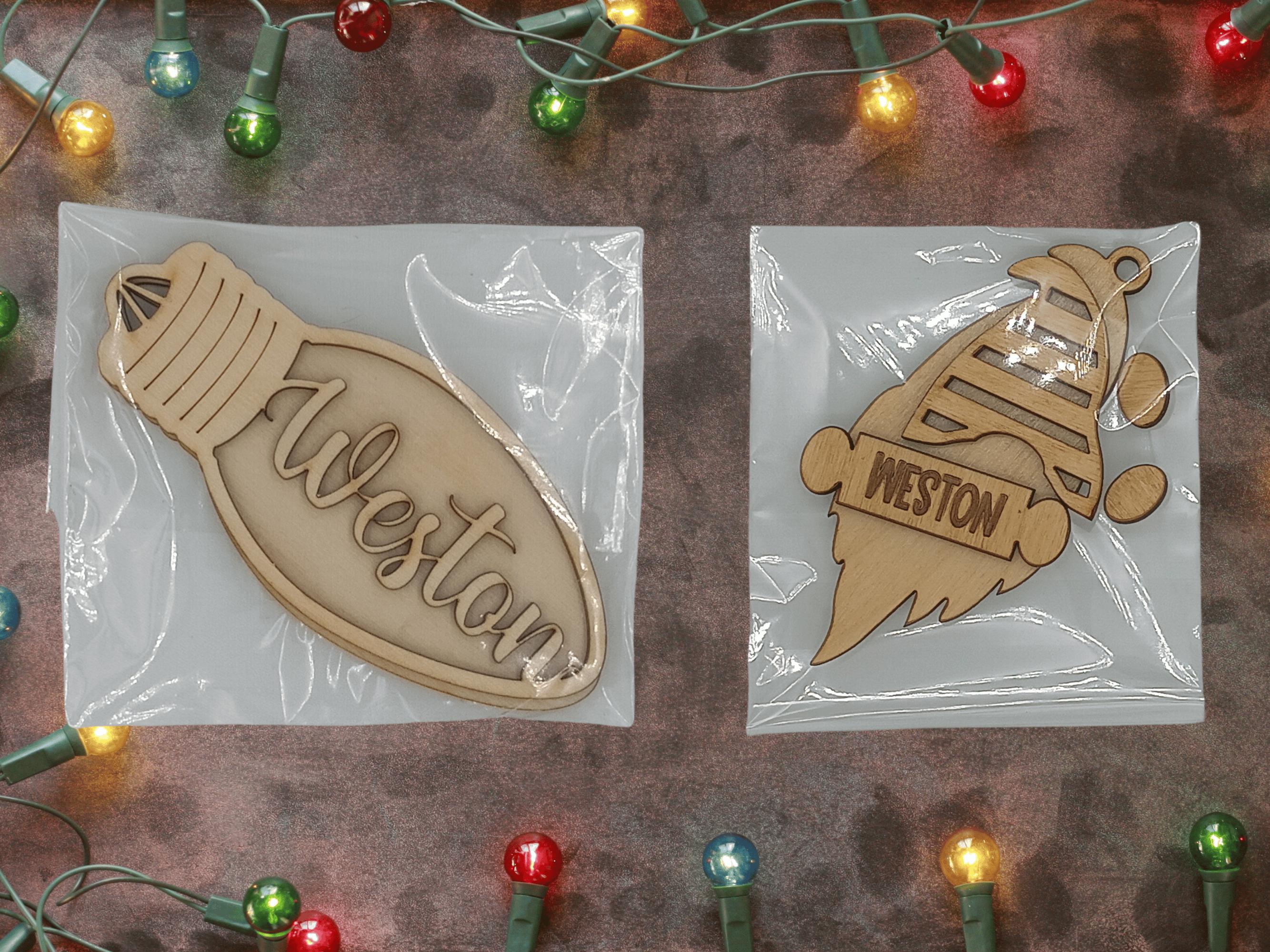 2 Personalized Baltic Birch Wood Ornaments (custom with names)