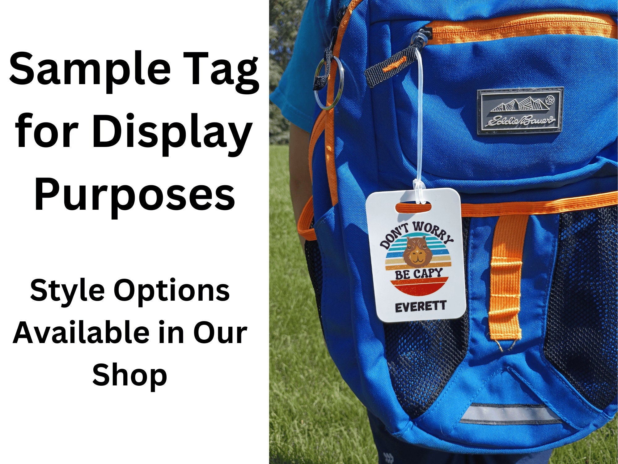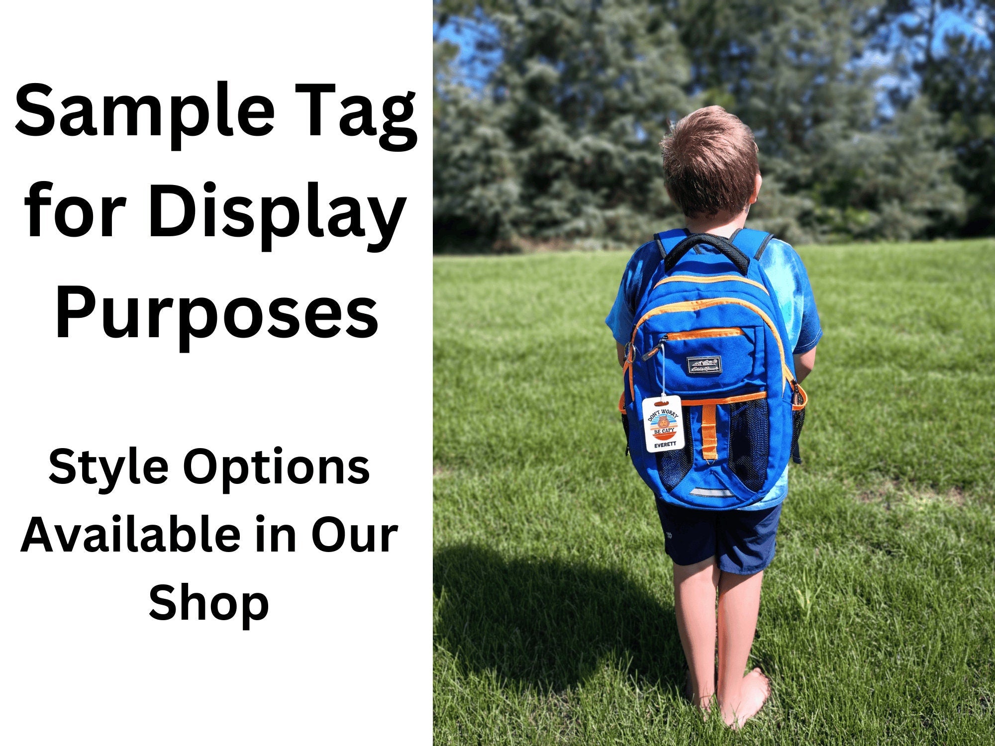 Front Side Information: Personalize the tag with your child's name for a personal touch.