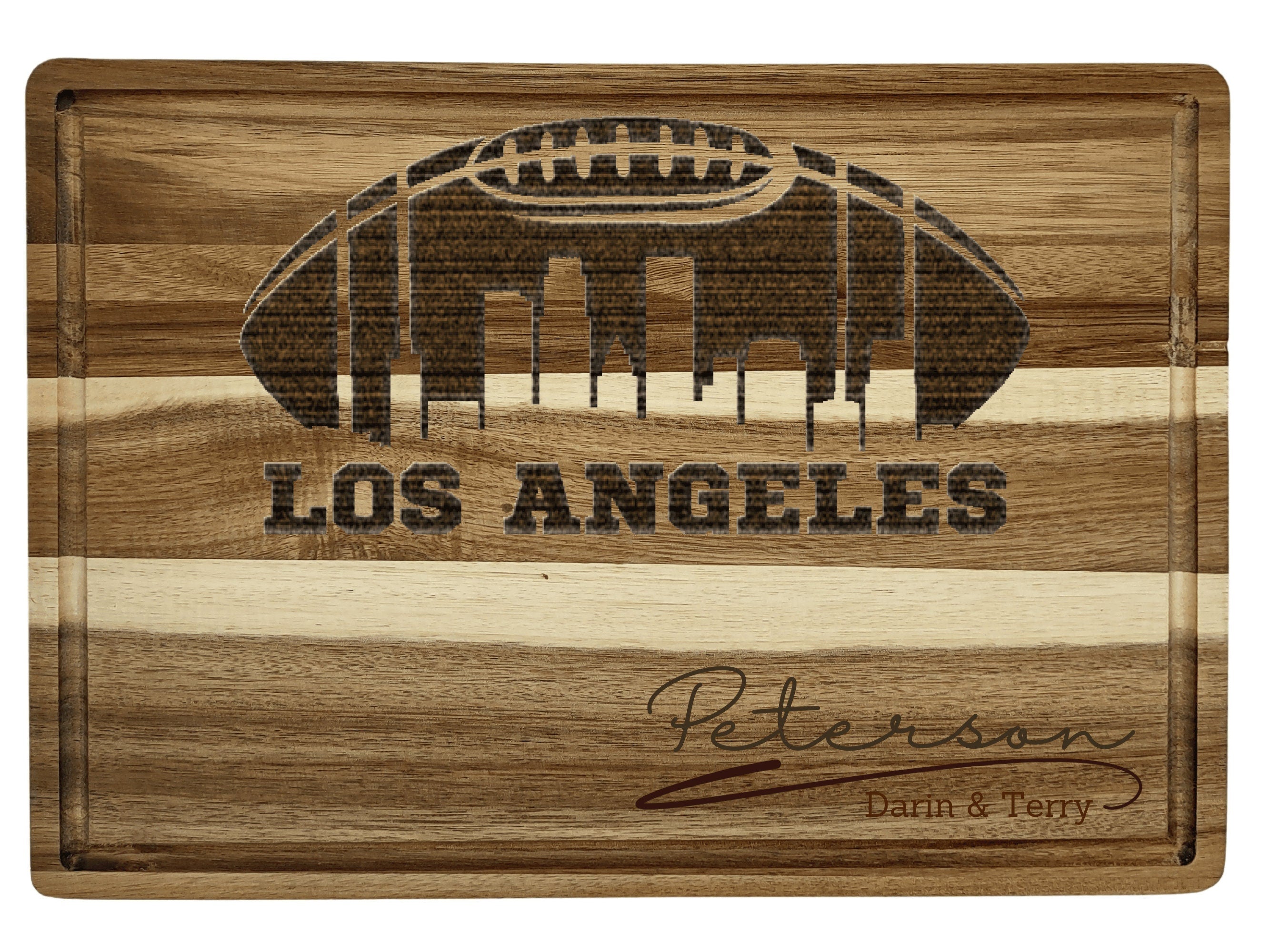 Looking for the perfect gift for a Los Angeles football fan? Or a stylish centerpiece for your Super Bowl party? This personalized acacia wood cutting board is the perfect blend of elegance, durability, and team pride. With laser-engraved customization, each board is a unique keepsake built to last for years to come.