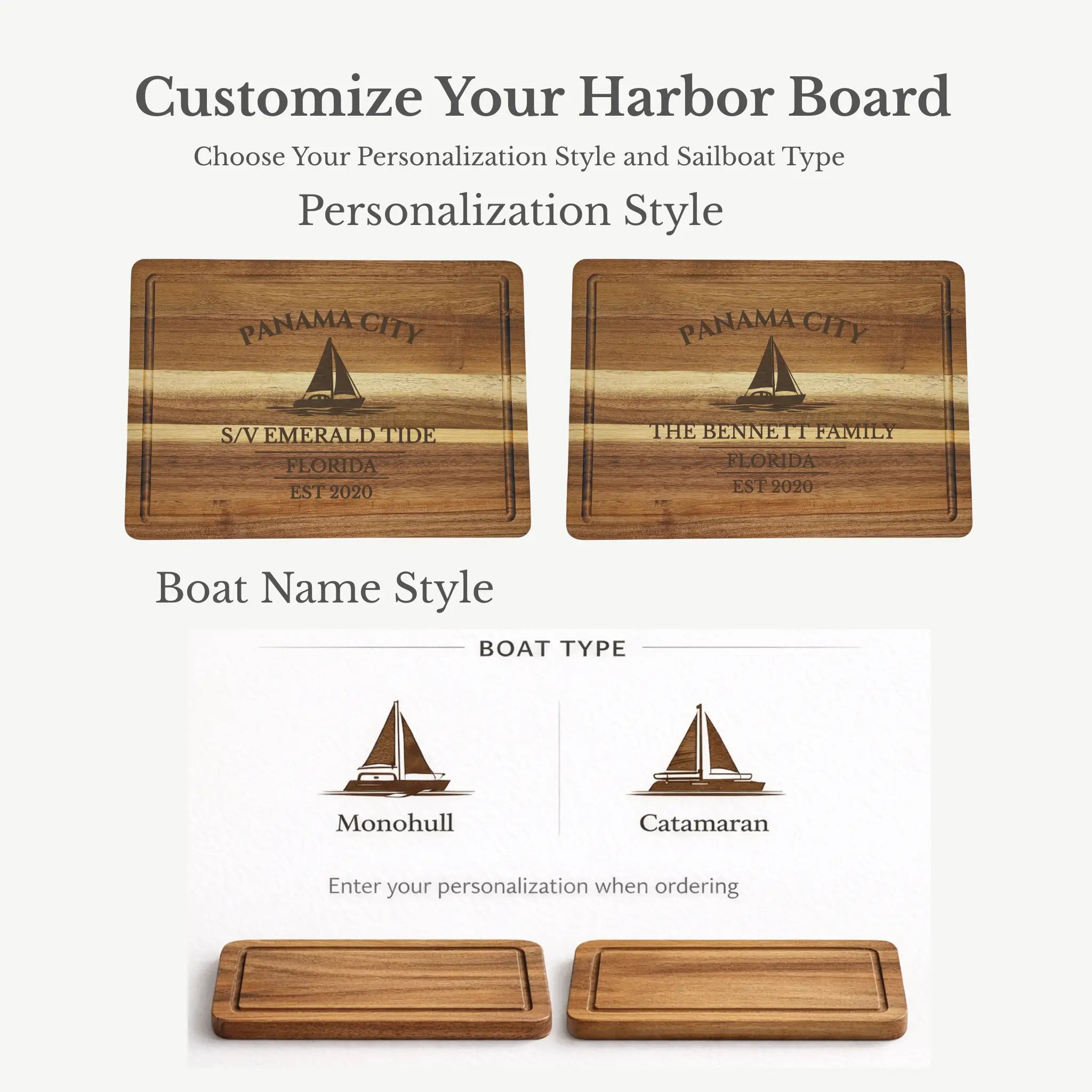 Yes — each board is custom engraved with your choice of boat name or family name along with an established year.