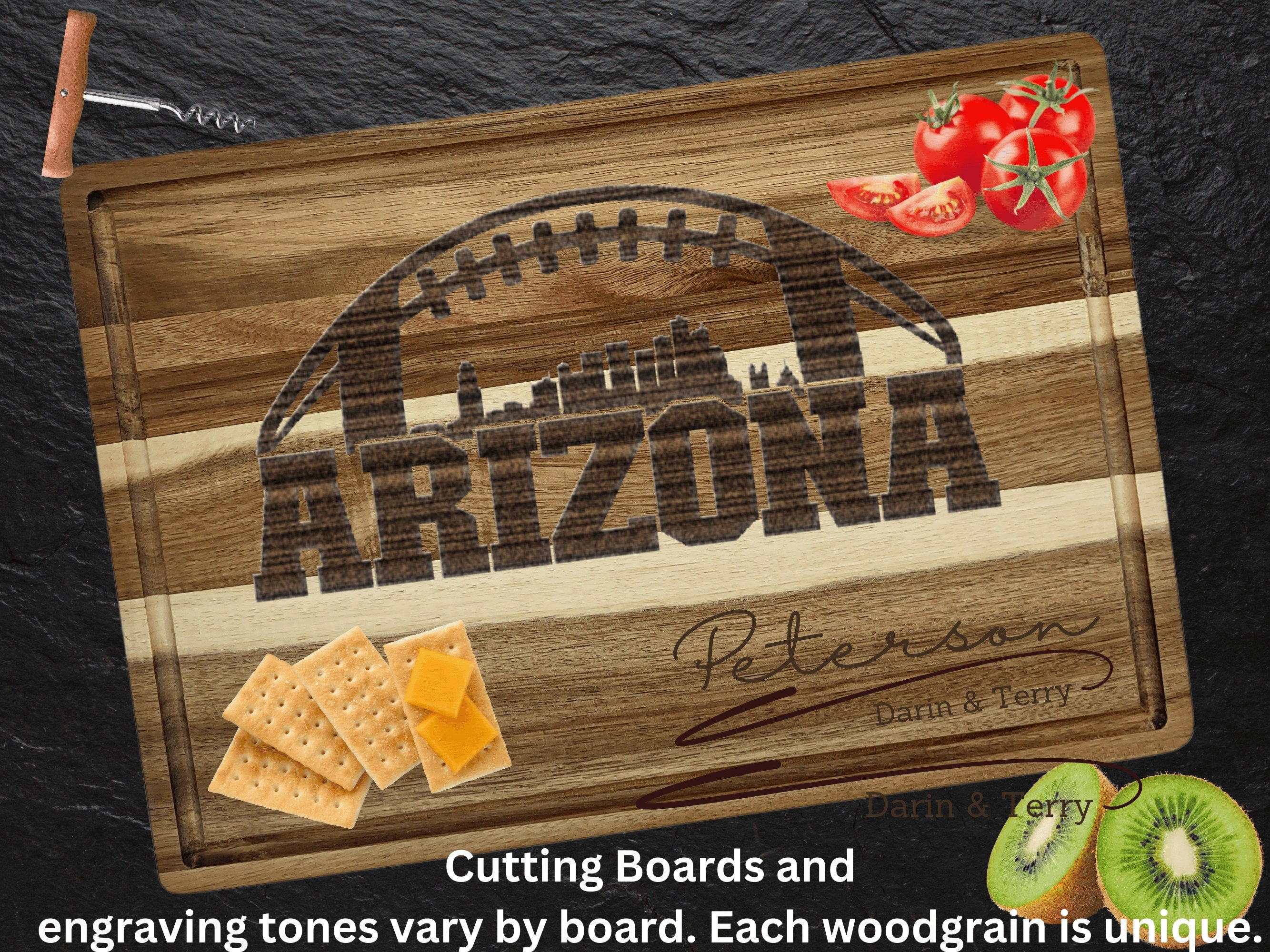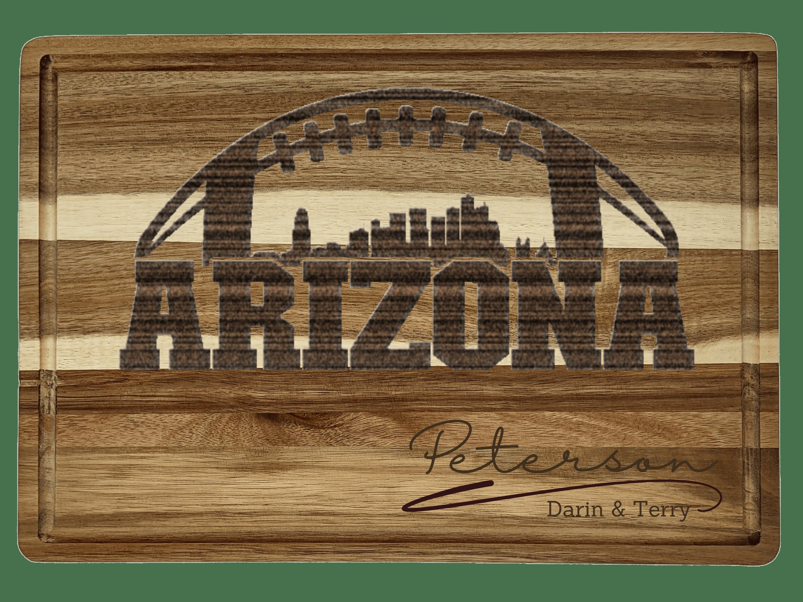 Looking for a thoughtful and unique gift for the Arizona football fan in your life? Or maybe the perfect Super Bowl party accessory? This personalized acacia wood cutting board combines function and beauty, making it a versatile addition to any kitchen. With laser engraving personalization, itβs both a keepsake and a practical serving piece.
