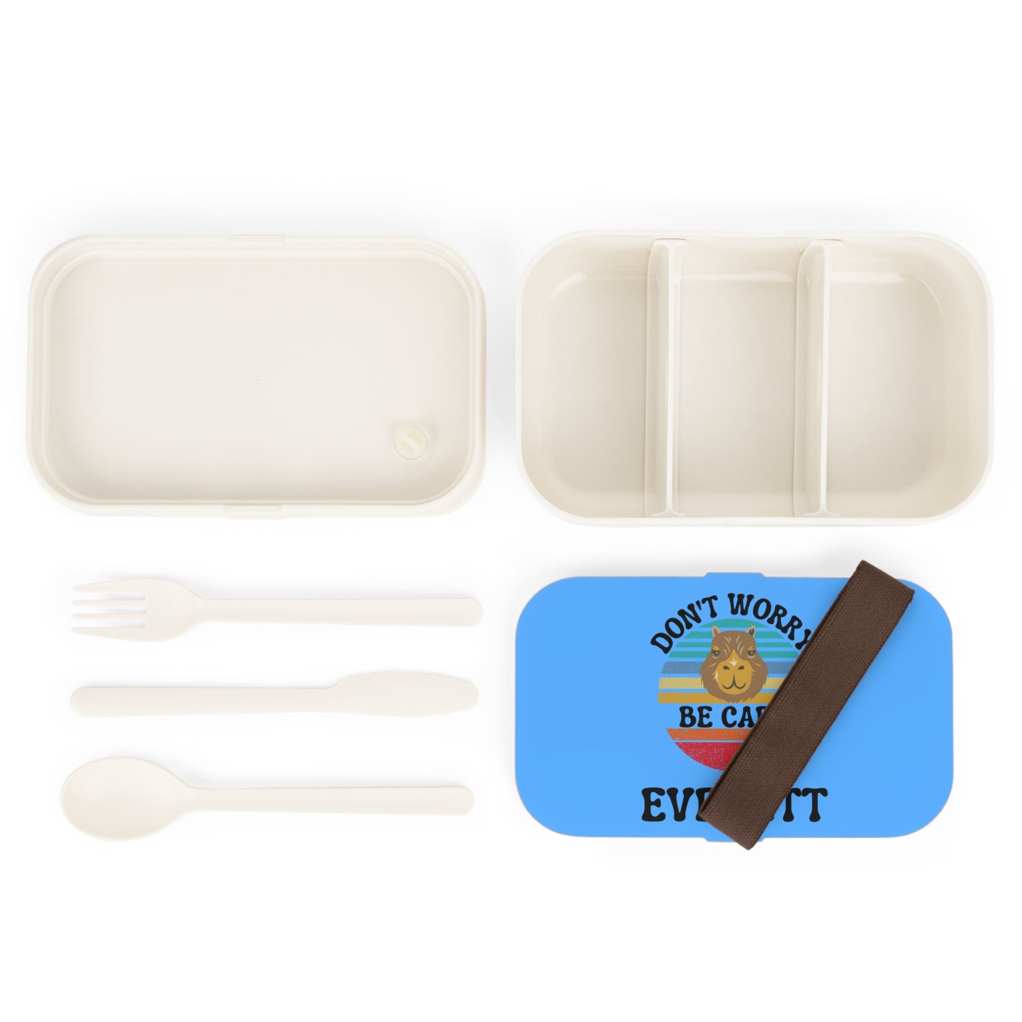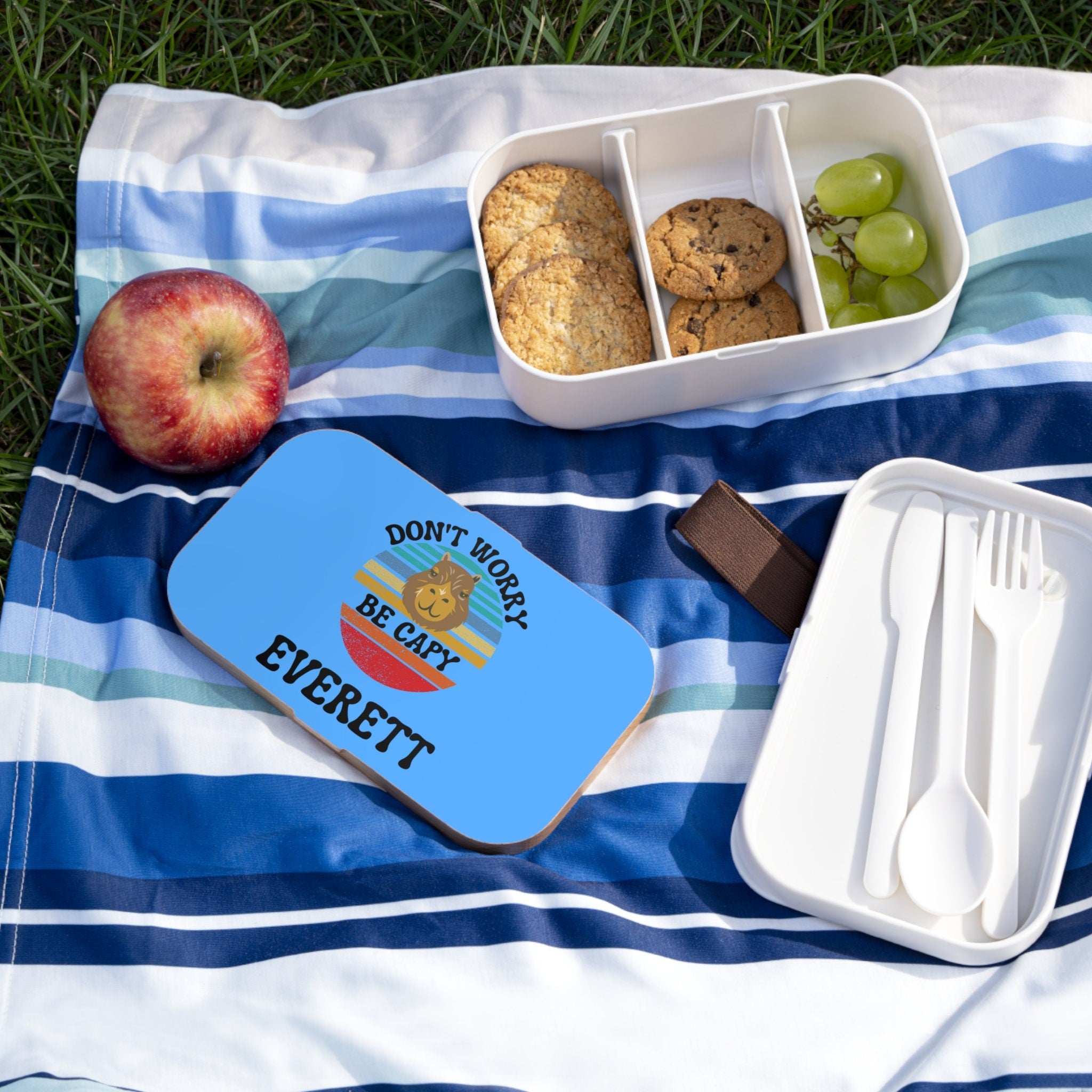 Personalized Bento Box | Don't Worry Be Capy Bento Lunch Box | Kids School Snack Container | Custom Lunch Box | Light Blue Child Snack Box