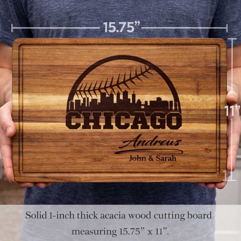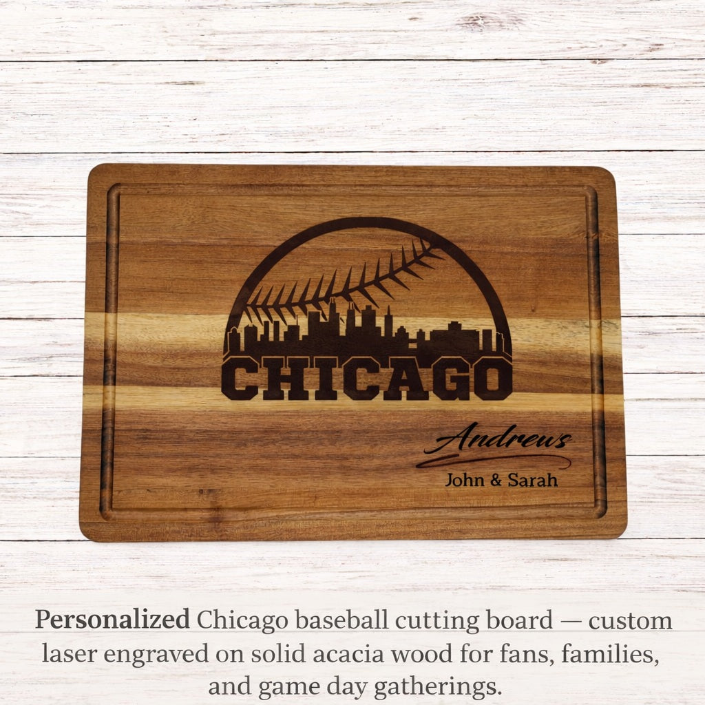 Personalized Chicago Baseball Cutting Board – Custom Engraved Acacia Wood