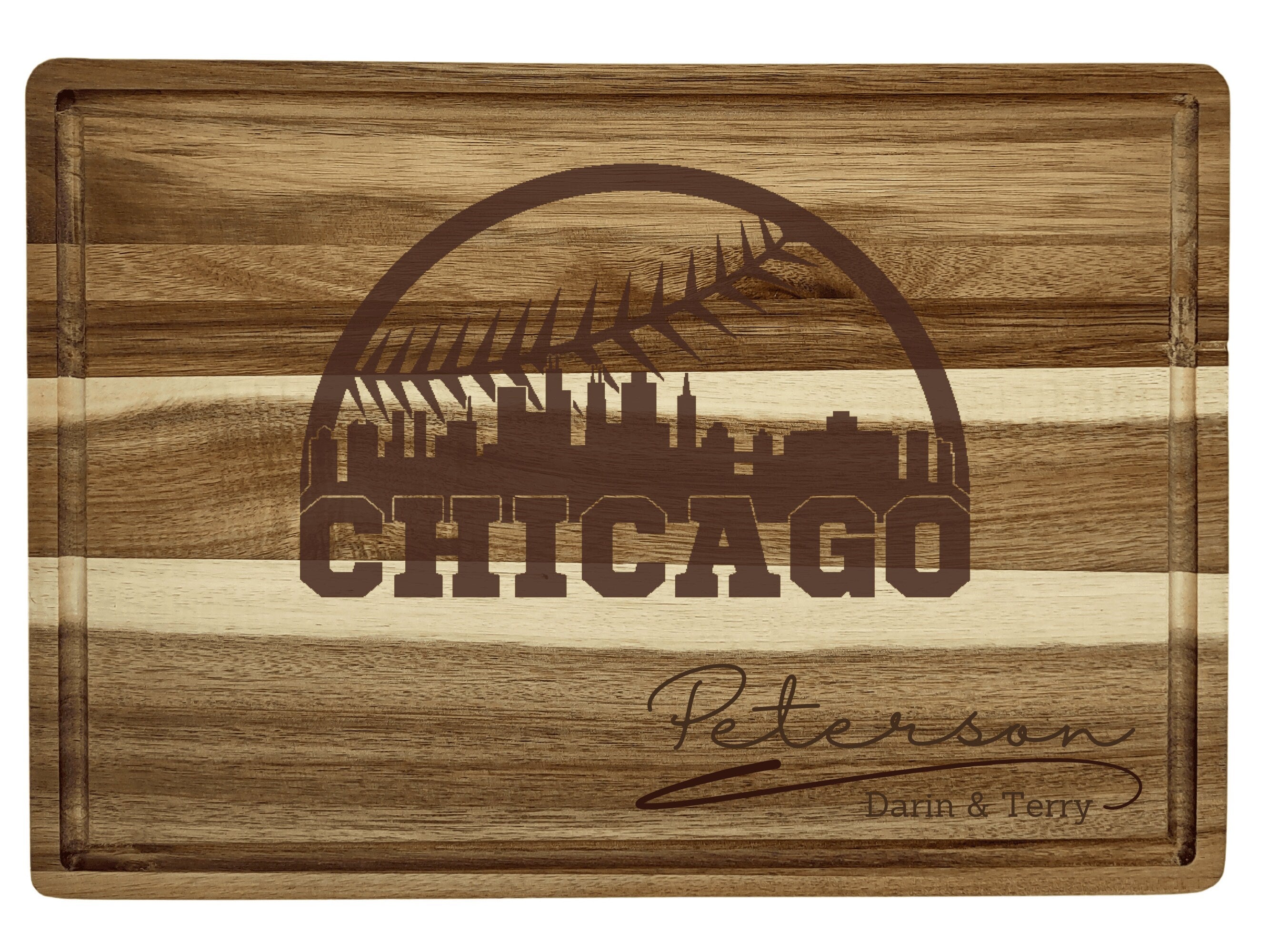 Personalized Chicago Baseball Fan Acacia Wood Cutting Board