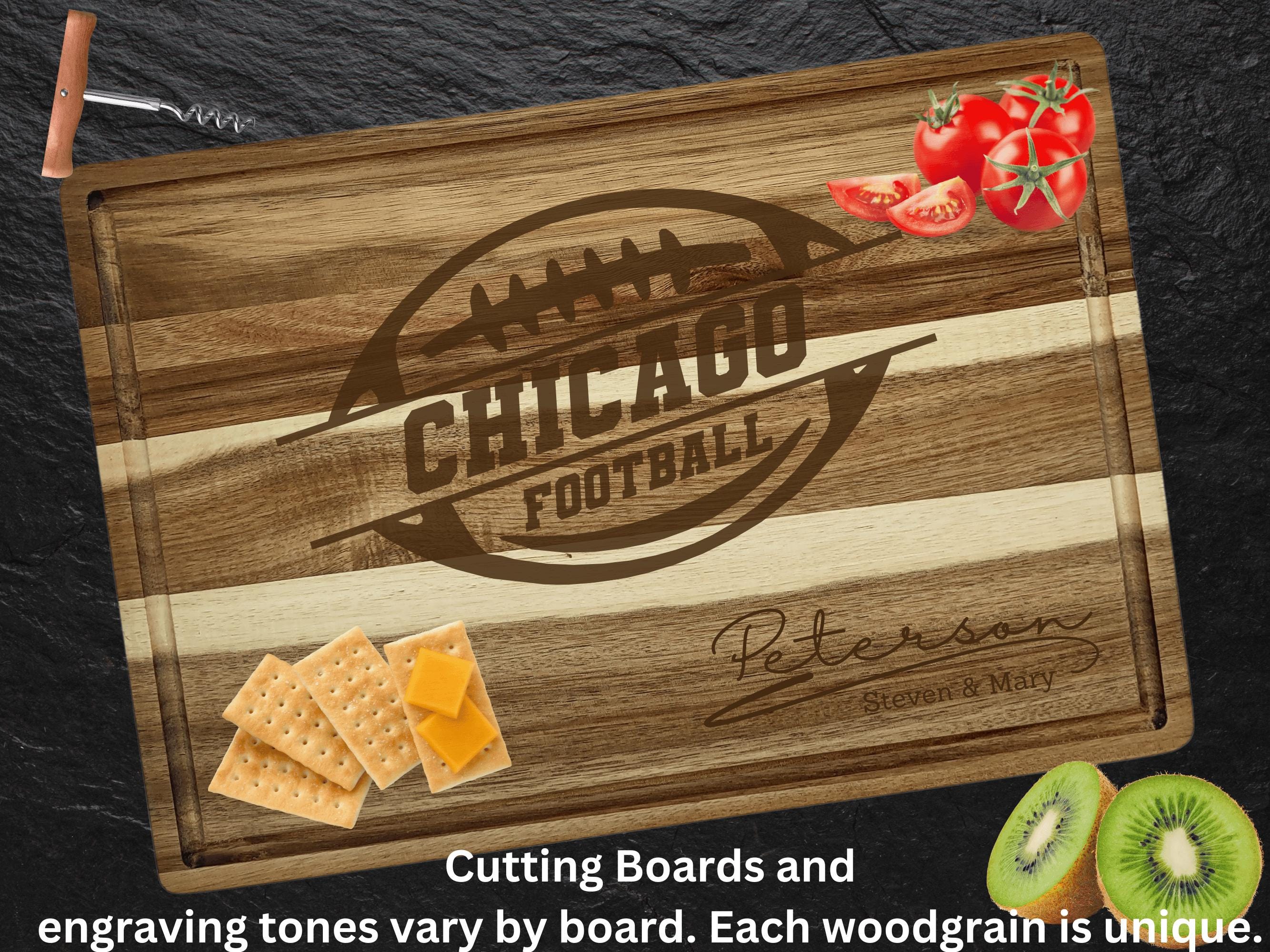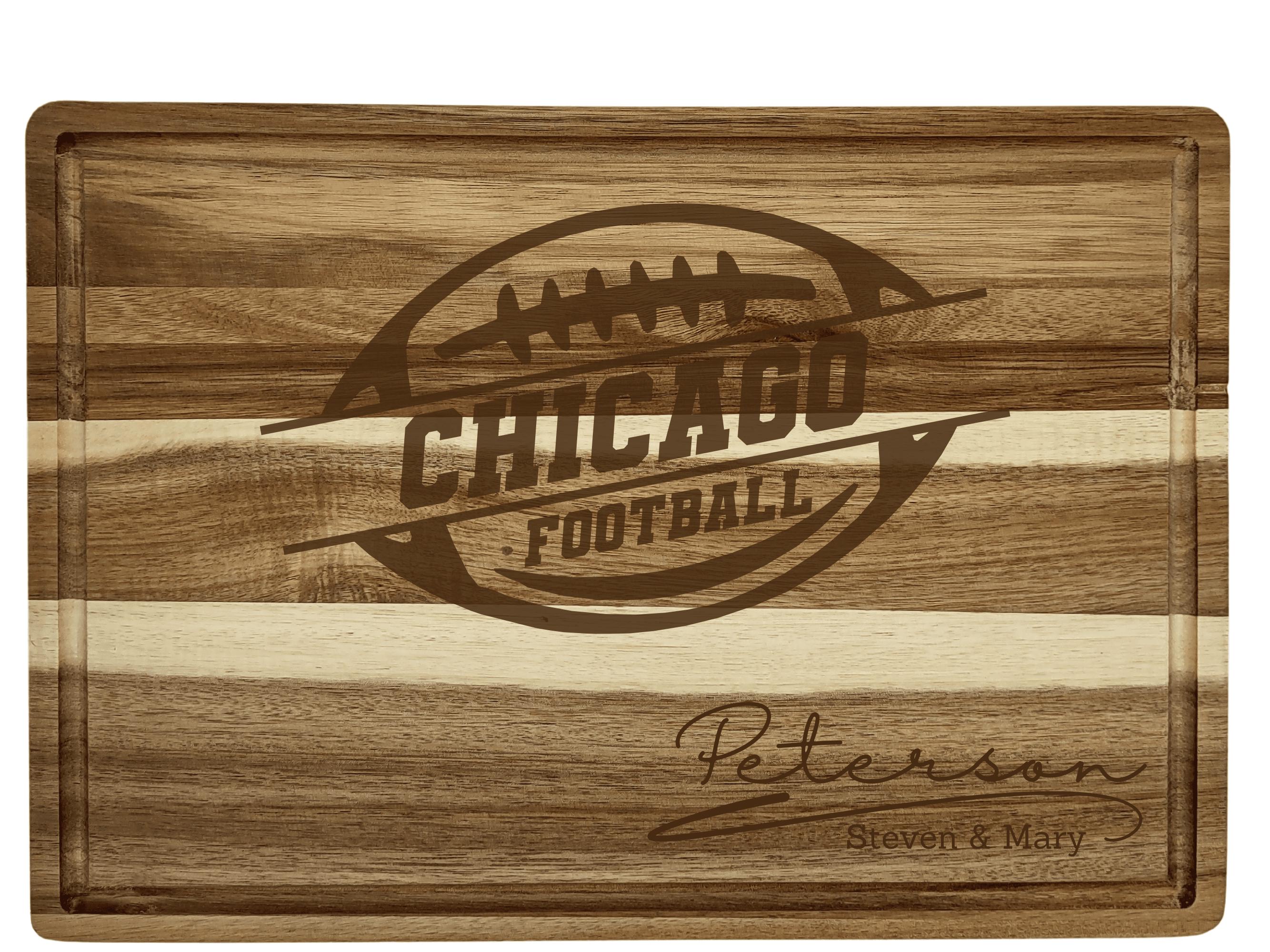 Looking for the perfect gift for the ultimate Chicago football fan? Whether it’s for game-day spreads, a Super Bowl party, or a thoughtful holiday present, this Chicago Football Custom Cutting Board is a winning choice!