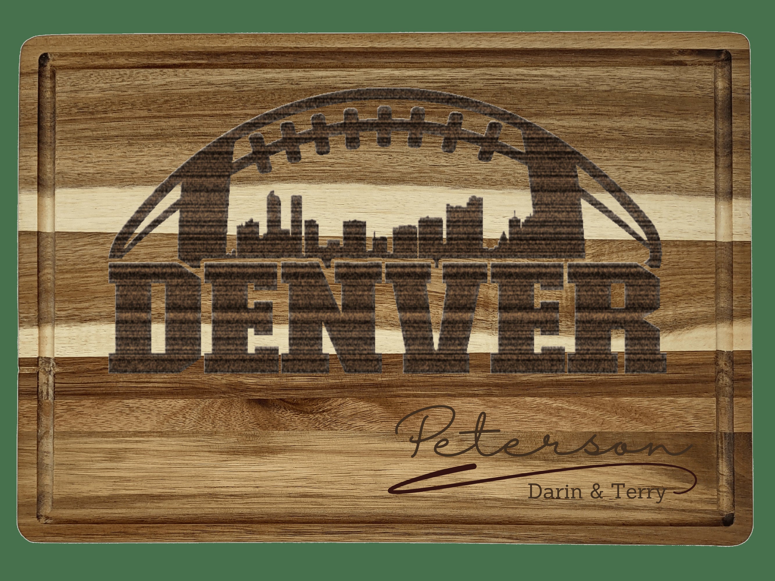 Looking for a unique gift for a Denver football fan? Or the perfect accessory for your Super Bowl party spread? This personalized acacia wood cutting board is the ultimate blend of practicality, craftsmanship, and team pride. With laser-engraved customization, each board becomes a one-of-a-kind keepsake thatβs as beautiful as it is functional.