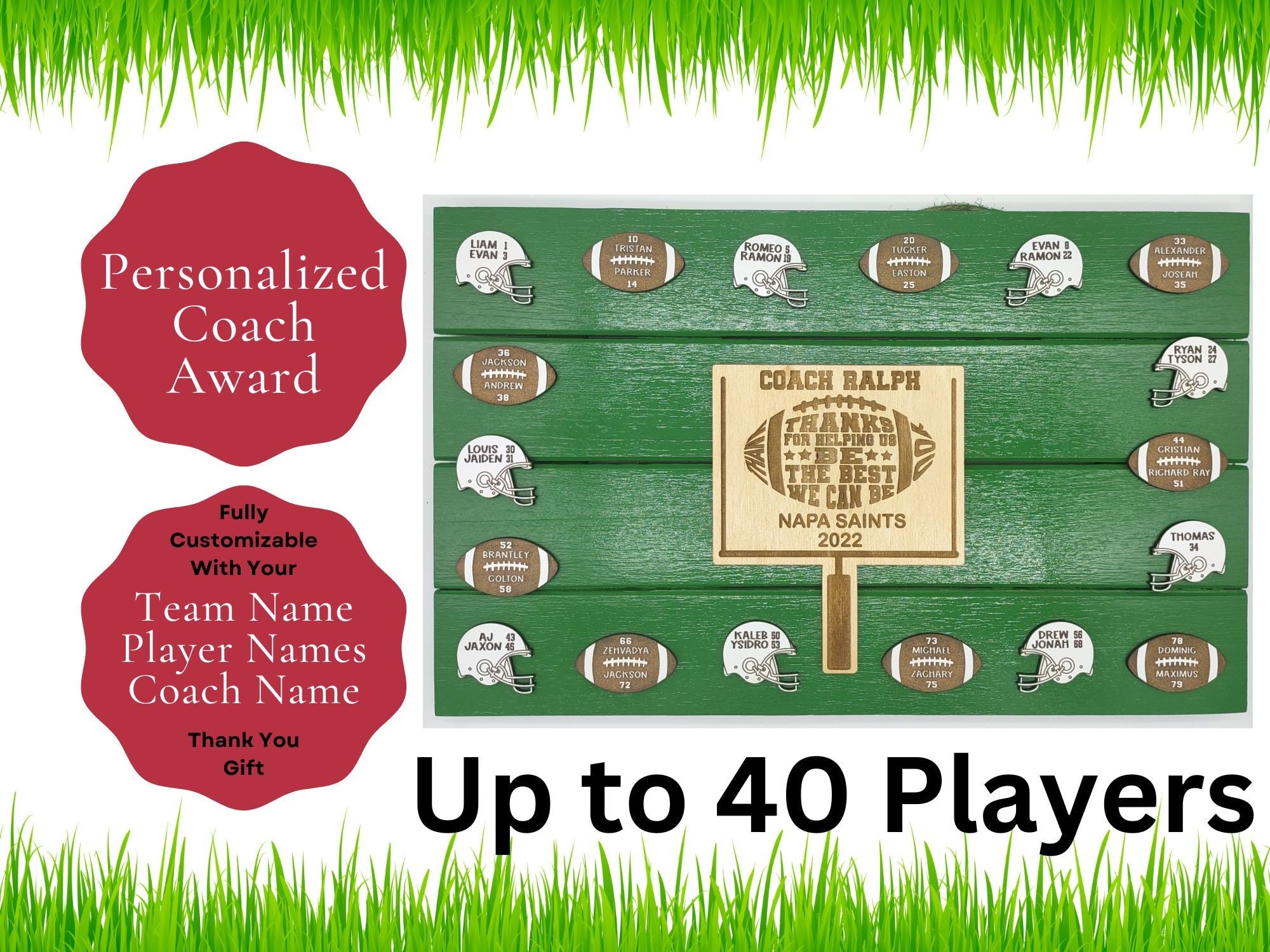 Are you looking for the perfect way to show your appreciation to that special youth coach who has been a guiding light for your team? Our personalized wooden football-themed plaque is the ideal gift to express your gratitude. This unique plaque is designed to make a lasting impression.