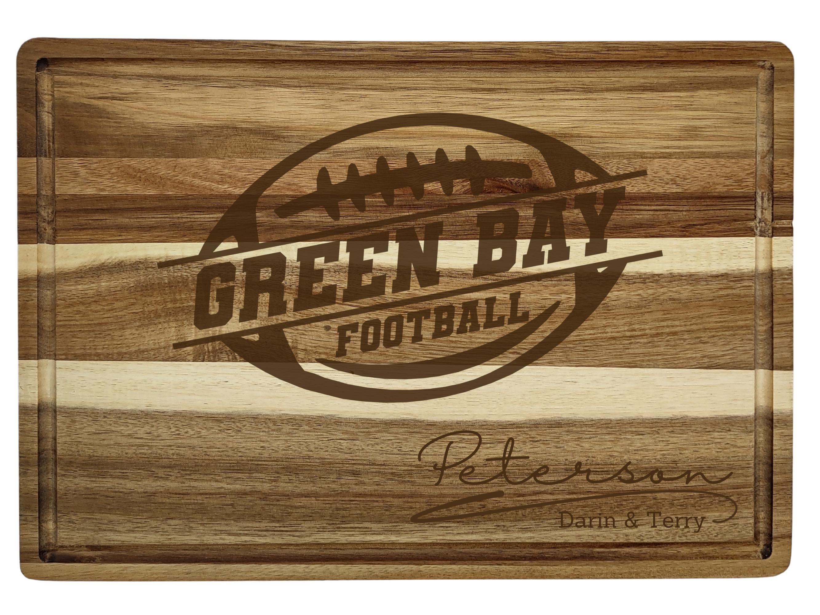 Looking for the perfect gift for a Green Bay football fan? Or the ideal serving piece for your Super Bowl party spread? This personalized acacia wood cutting board is both practical and stylish, making it a thoughtful keepsake for sports lovers and home entertainers alike. With laser-engraved personalization, itβs a unique board that combines function with football pride.