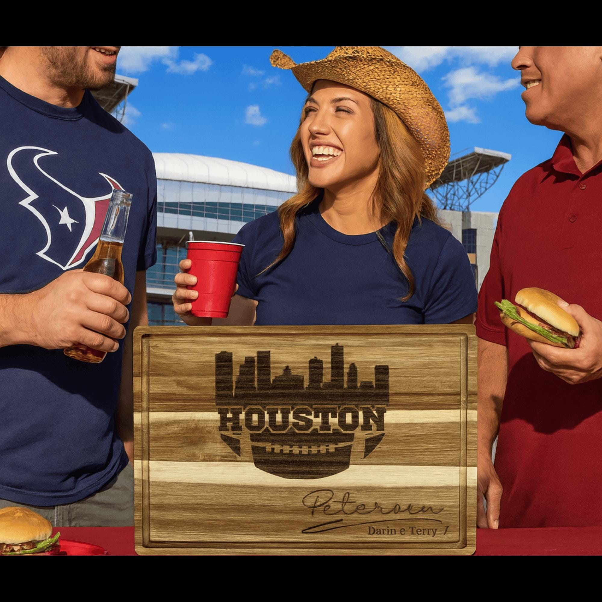 Looking for a meaningful gift for a Houston football fan or the perfect addition to your Super Bowl party setup? This personalized acacia wood cutting board combines practicality, craftsmanship, and team spirit in one elegant package. With laser-engraved customization, each board is unique and built to be cherished for years to come.