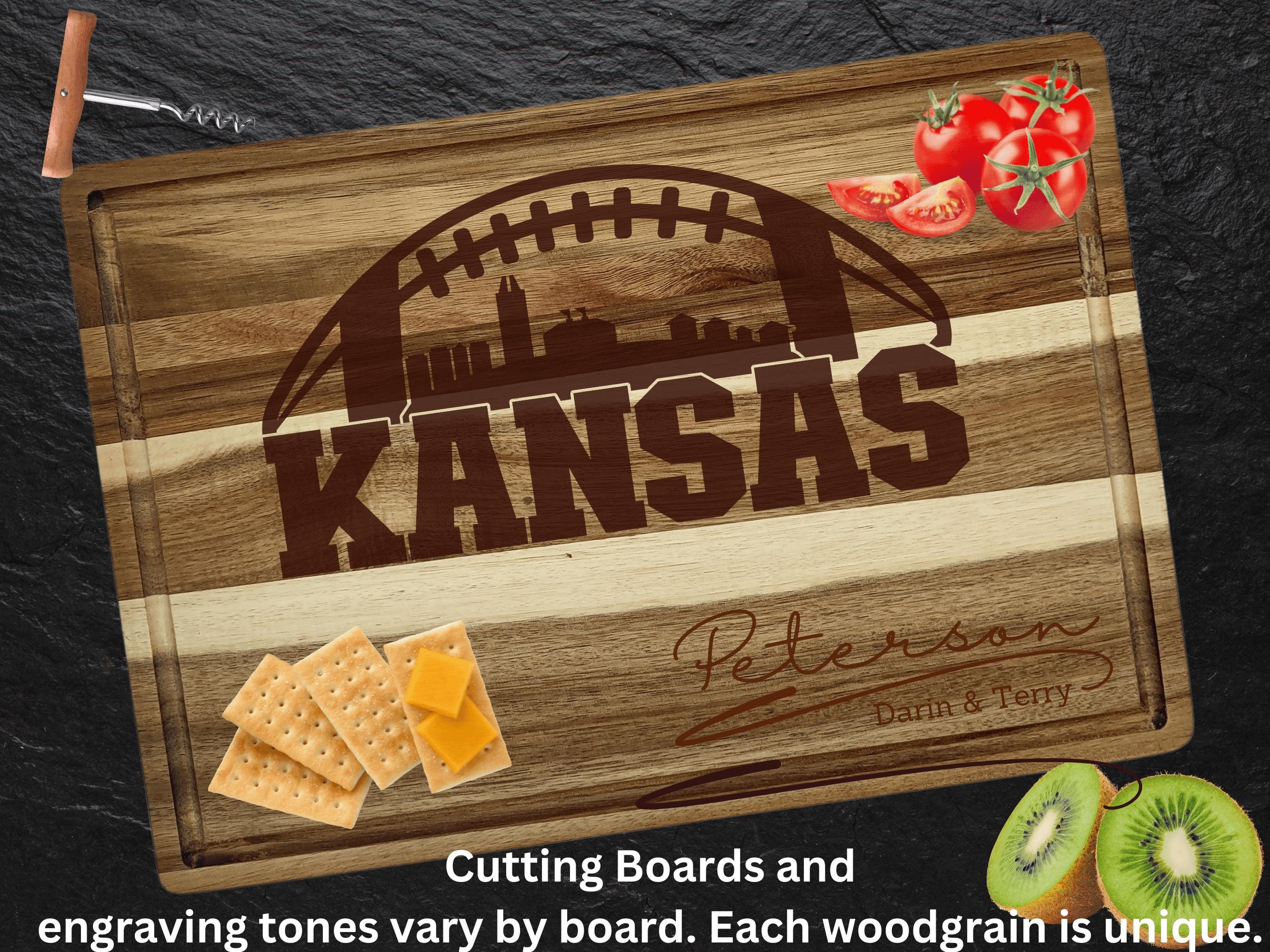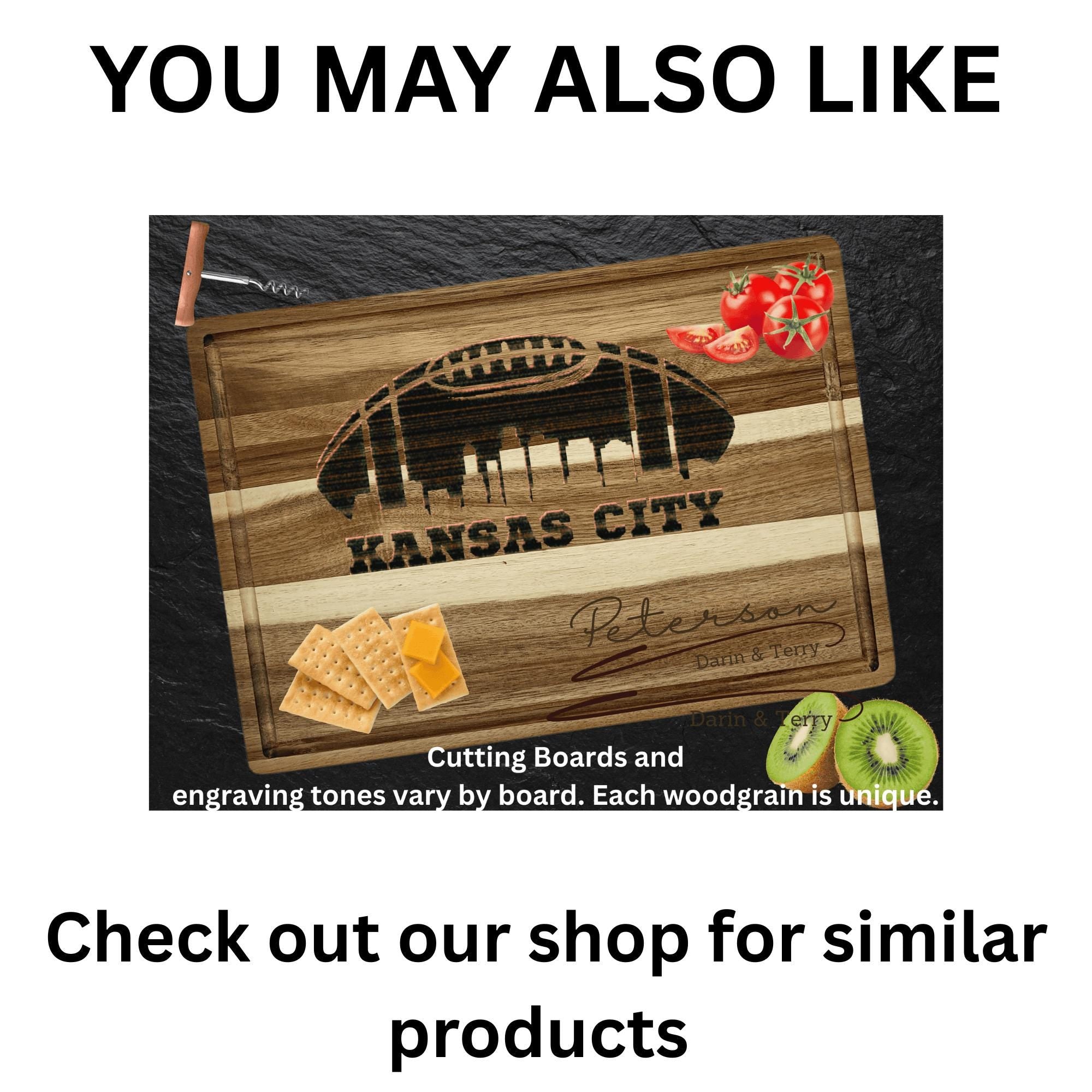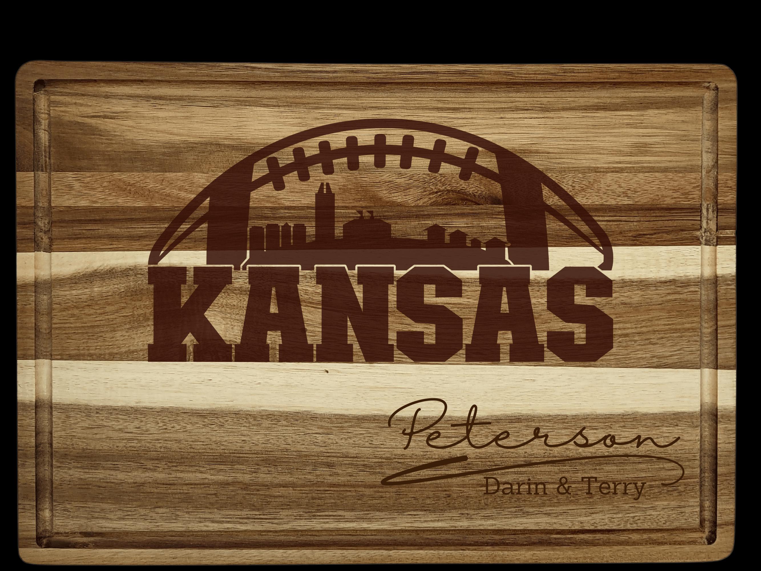 Looking for the perfect gift for a Kansas football fan? Or a unique centerpiece for your Super Bowl party? This personalized acacia wood cutting board combines elegance, durability, and football pride in one. With laser-engraved customization, each board is a one-of-a-kind keepsake thatβs both functional and stylish.