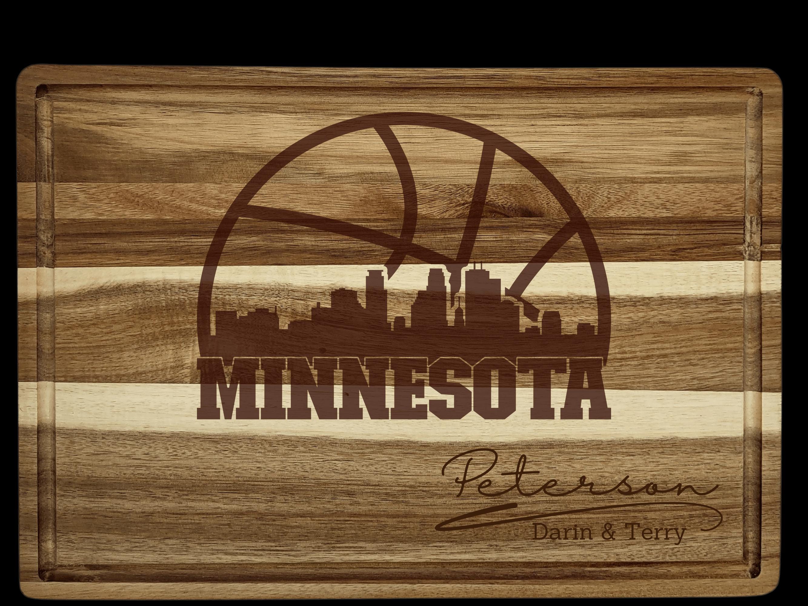 Looking for a thoughtful and unique gift for the Minnesota Basketball fan in your life? How about that perfect accessory for your hoops party? Our custom cutting boards are the perfect choice! Crafted from sustainable acacia wood, these cutting boards add a touch of elegance to any kitchen. Personalized with precision using our laser engraving process, they make a memorable and functional gift for various occasions.