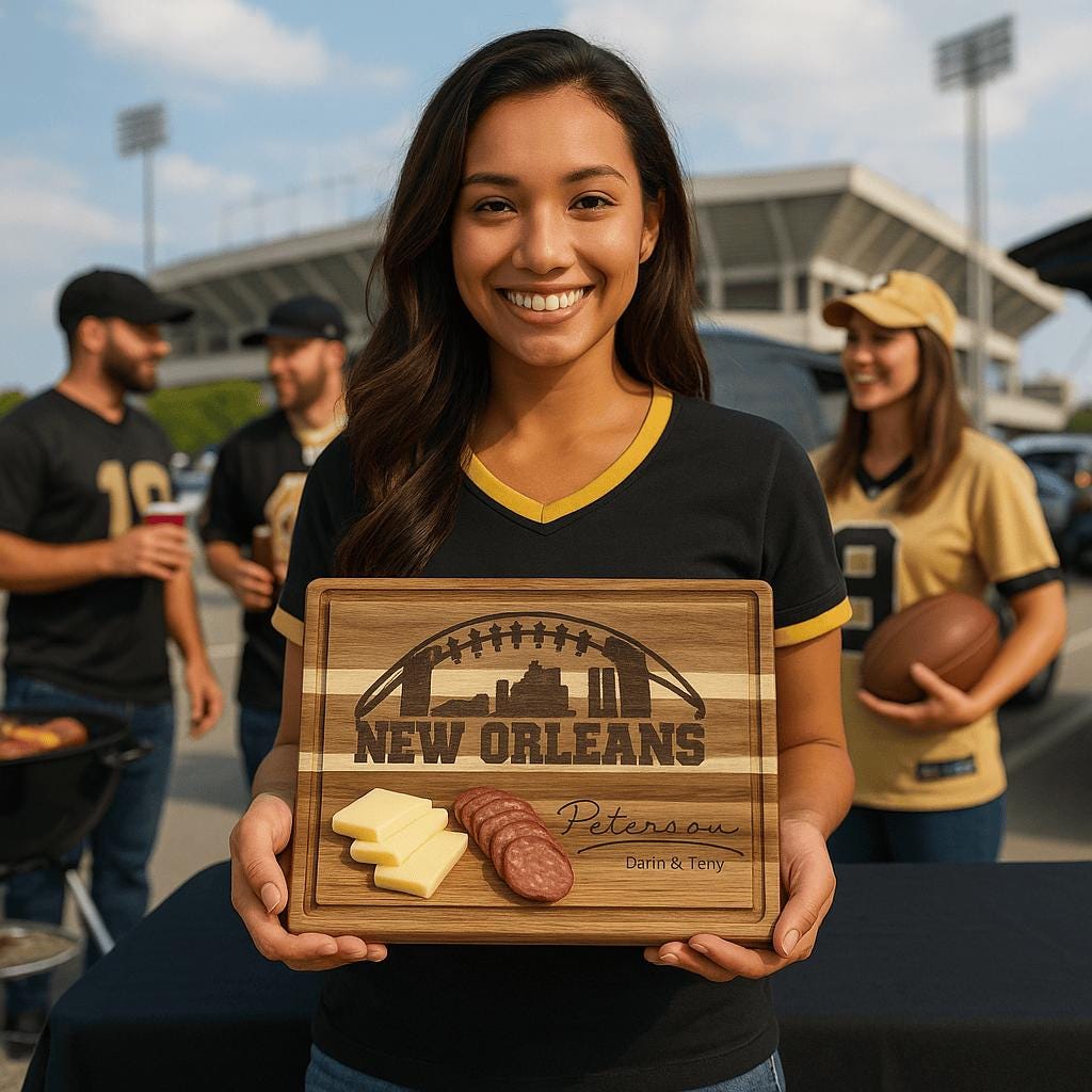 Make your game day, party, or special celebration unforgettable with a Custom New Orleans Football Cutting Board. Order now for a functional and personalized gift that will be cherished for years!