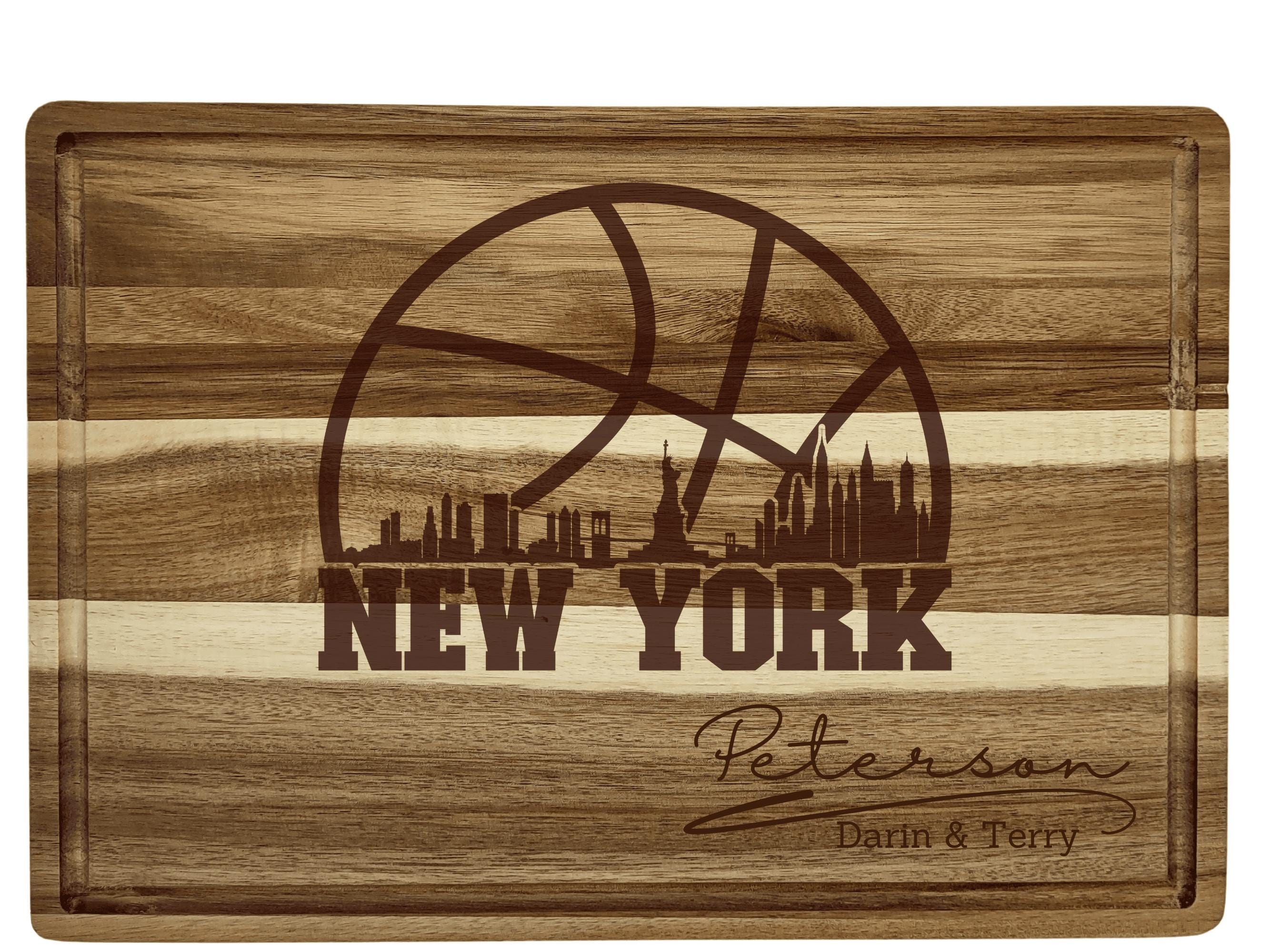 Looking for a thoughtful and unique gift for the New York Basketball fan in your life? How about that perfect accessory for your hoops party? Our custom cutting boards are the perfect choice! Crafted from sustainable acacia wood, these cutting boards add a touch of elegance to any kitchen. Personalized with precision using our laser engraving process, they make a memorable and functional gift for various occasions.