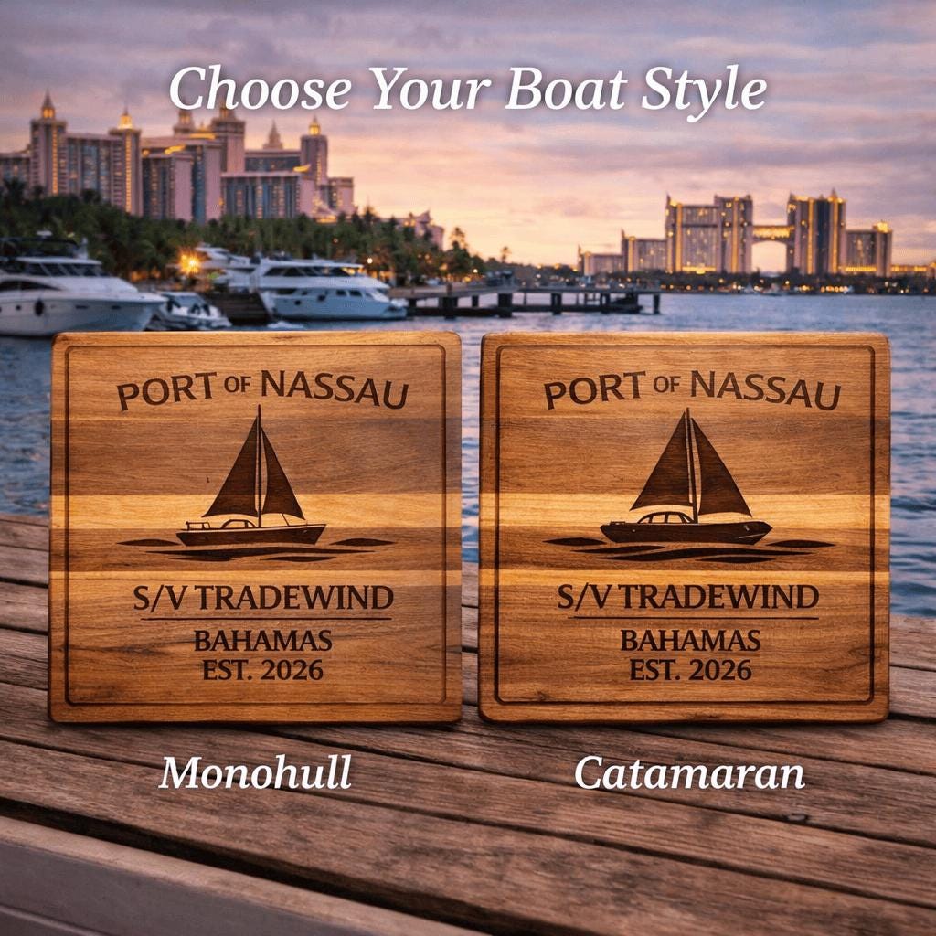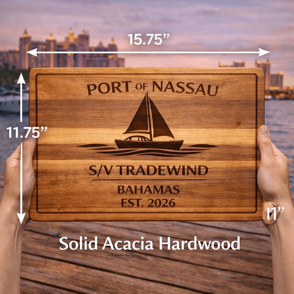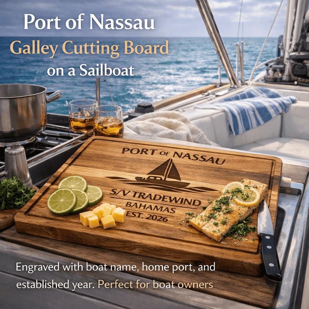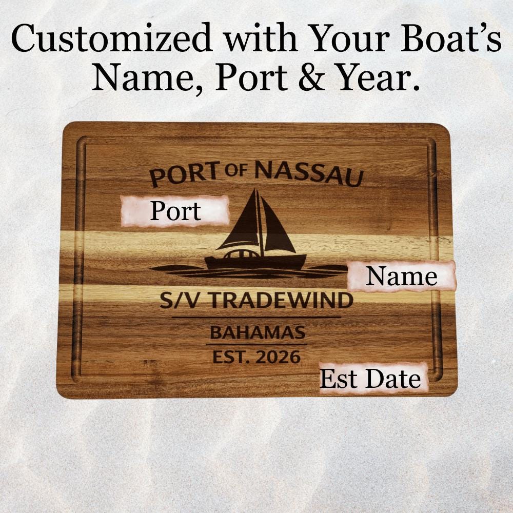 Bring the spirit of the sea into your galley with a personalized sailboat cutting board engraved with your boat name, home port, and established year. Designed for sailors, yacht owners, and ocean lovers, this premium acacia wood board is both a functional galley essential and a meaningful keepsake.