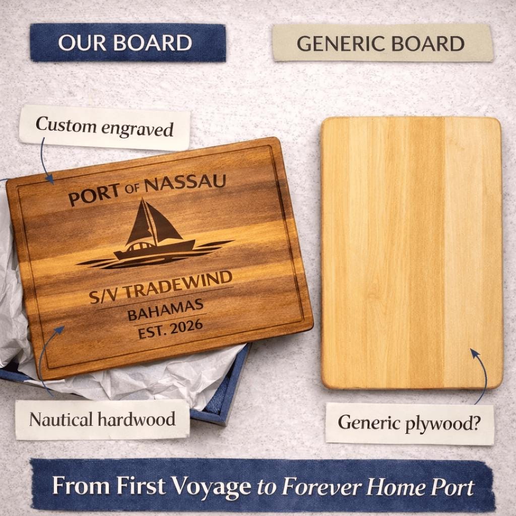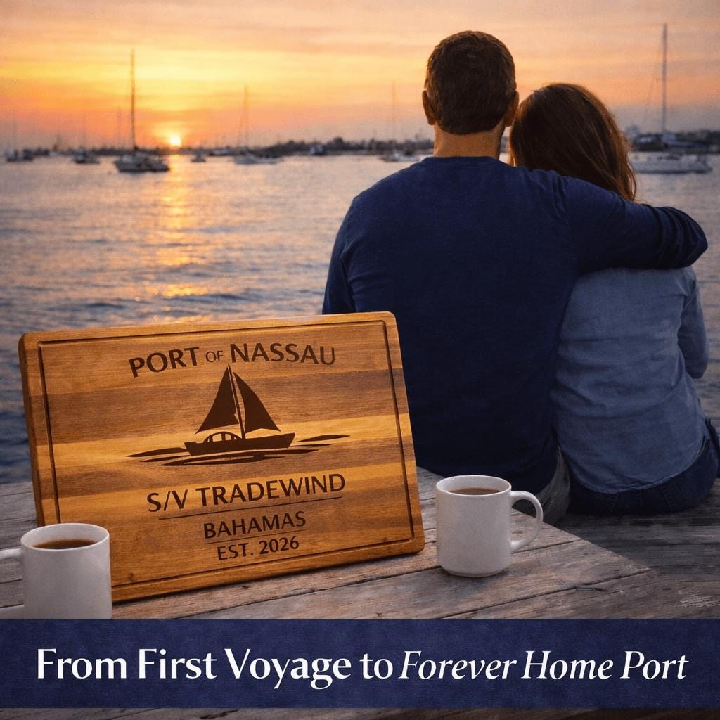 Whether it’s a retirement gift for a captain, a wedding gift for sailing couples, an anniversary present, or a housewarming for a coastal home, this custom nautical cutting board celebrates the place that started your journey — your home harbor.