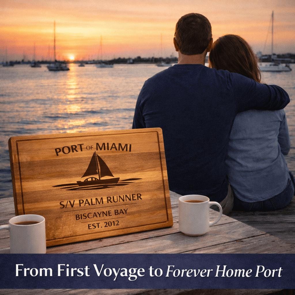 Whether it’s a retirement gift for a captain, a wedding gift for sailing couples, an anniversary present, or a housewarming for a coastal home, this custom nautical cutting board celebrates the place that started your journey — your home harbor.