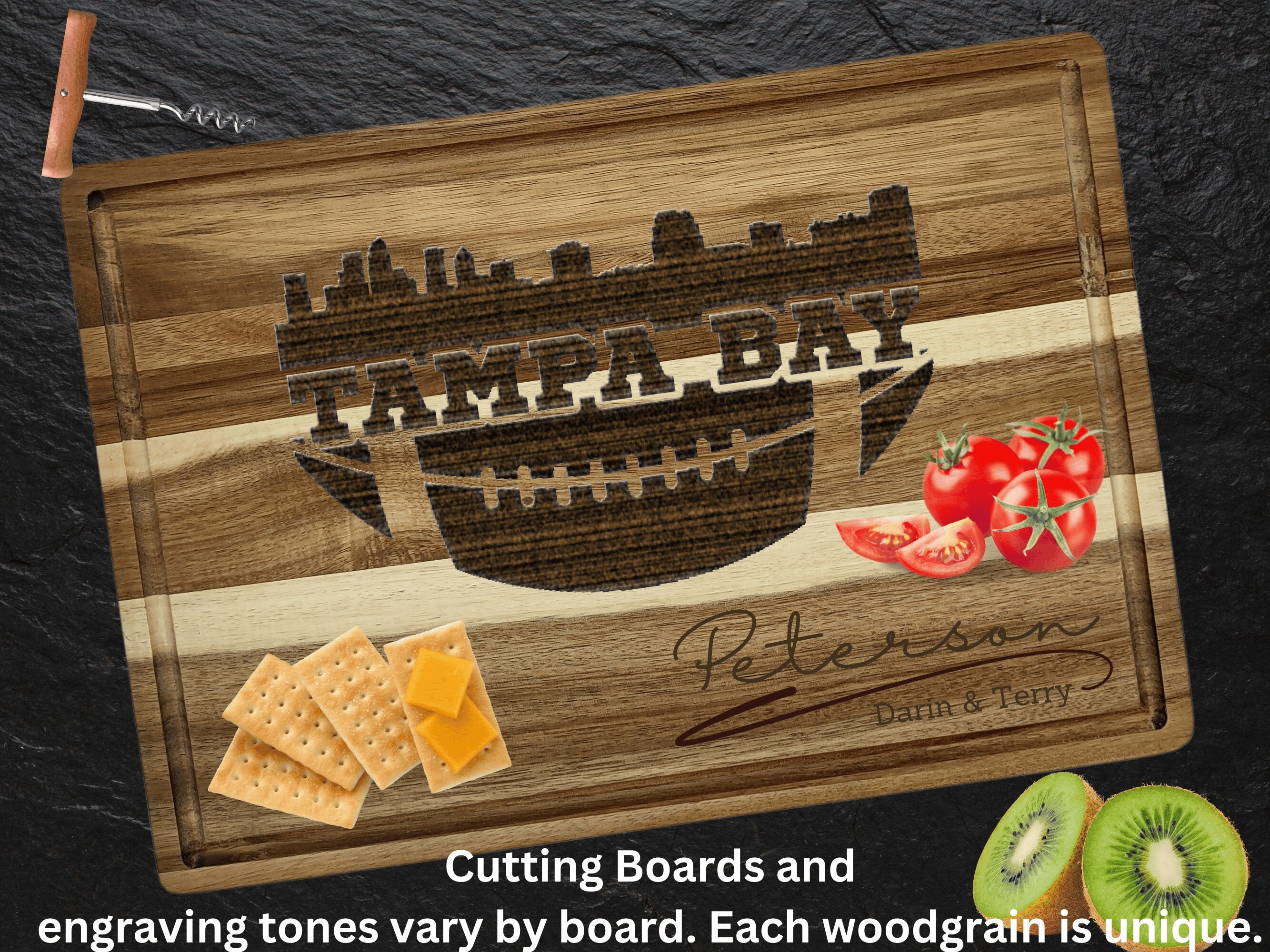 Personalized Tampa Bay Football Cutting Board: Engraved Acacia Wood Charcuterie Board