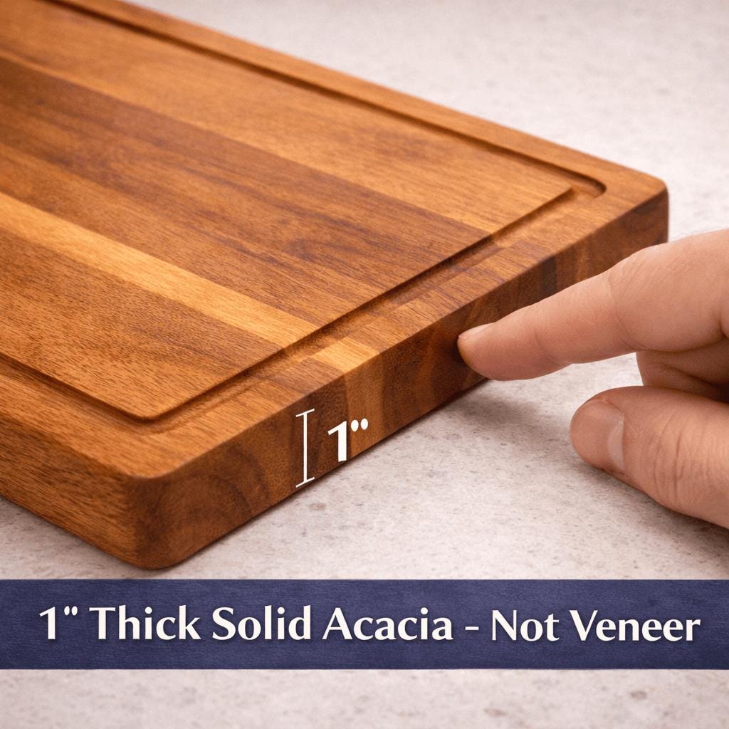 Occasionally treat with food-safe mineral oil to maintain the wood’s natural beauty.Each board is crafted from solid wood — natural grain and color variations are part of its character.