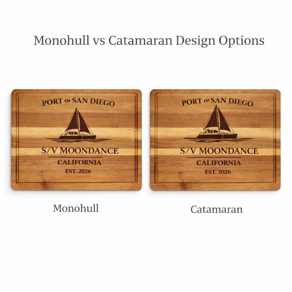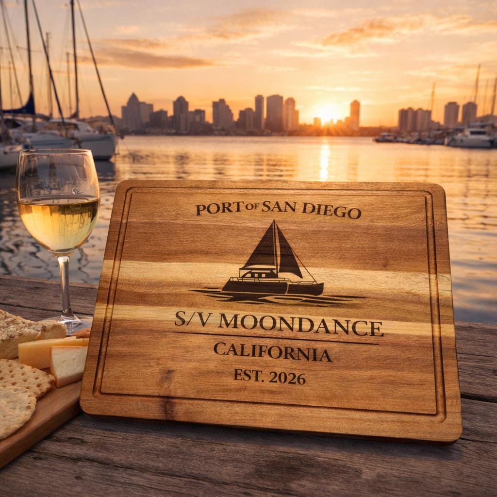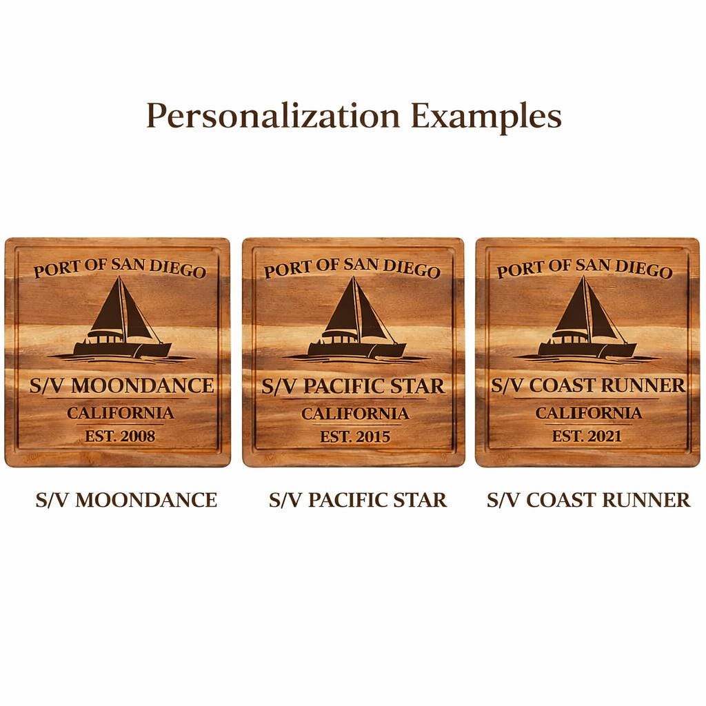 San Diego Sailboat Cutting Board – Personalized Nautical Kitchen Gift with Custom Boat Name