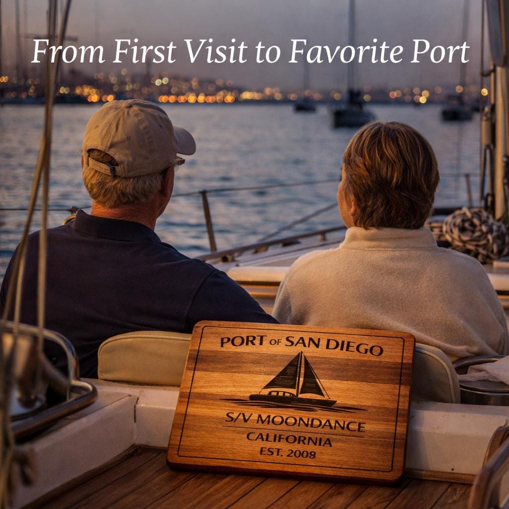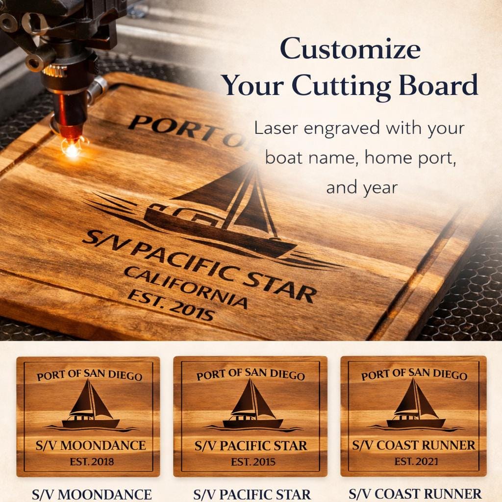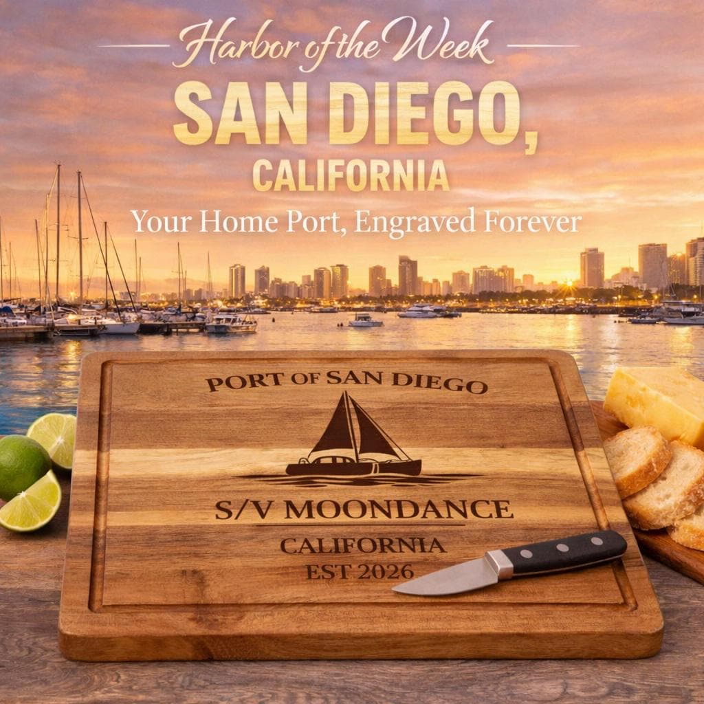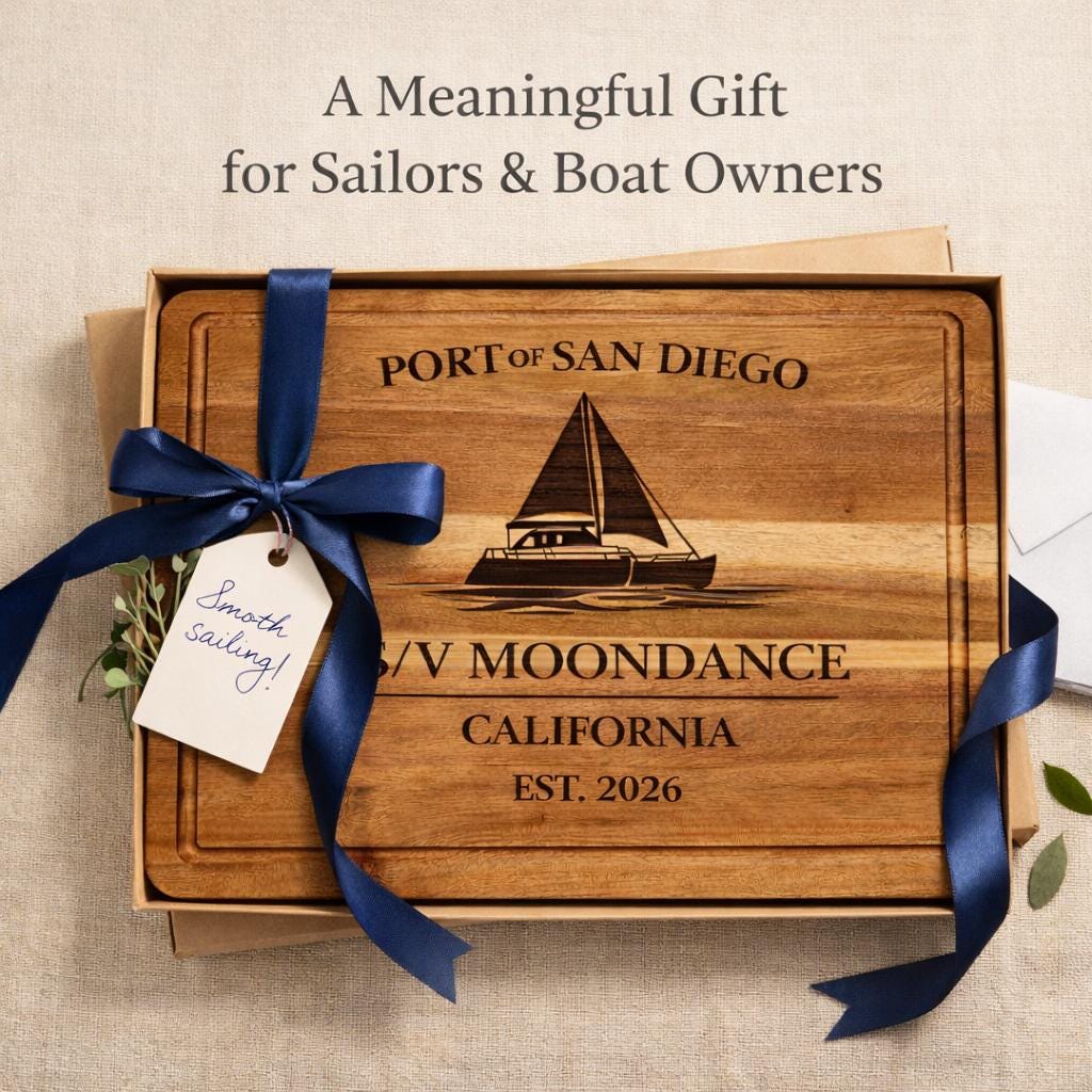 San Diego Sailboat Cutting Board – Personalized Nautical Kitchen Gift with Custom Boat Name