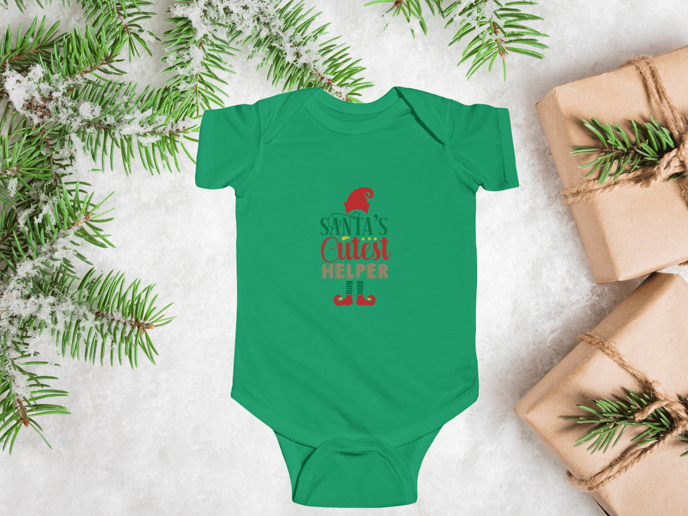 Dressing your little one for Christmas has never been so adorable. Order our "Santa's Cutest Helper" holiday Baby Bodysuit today and let your infant join in the holiday fun in style and comfort.