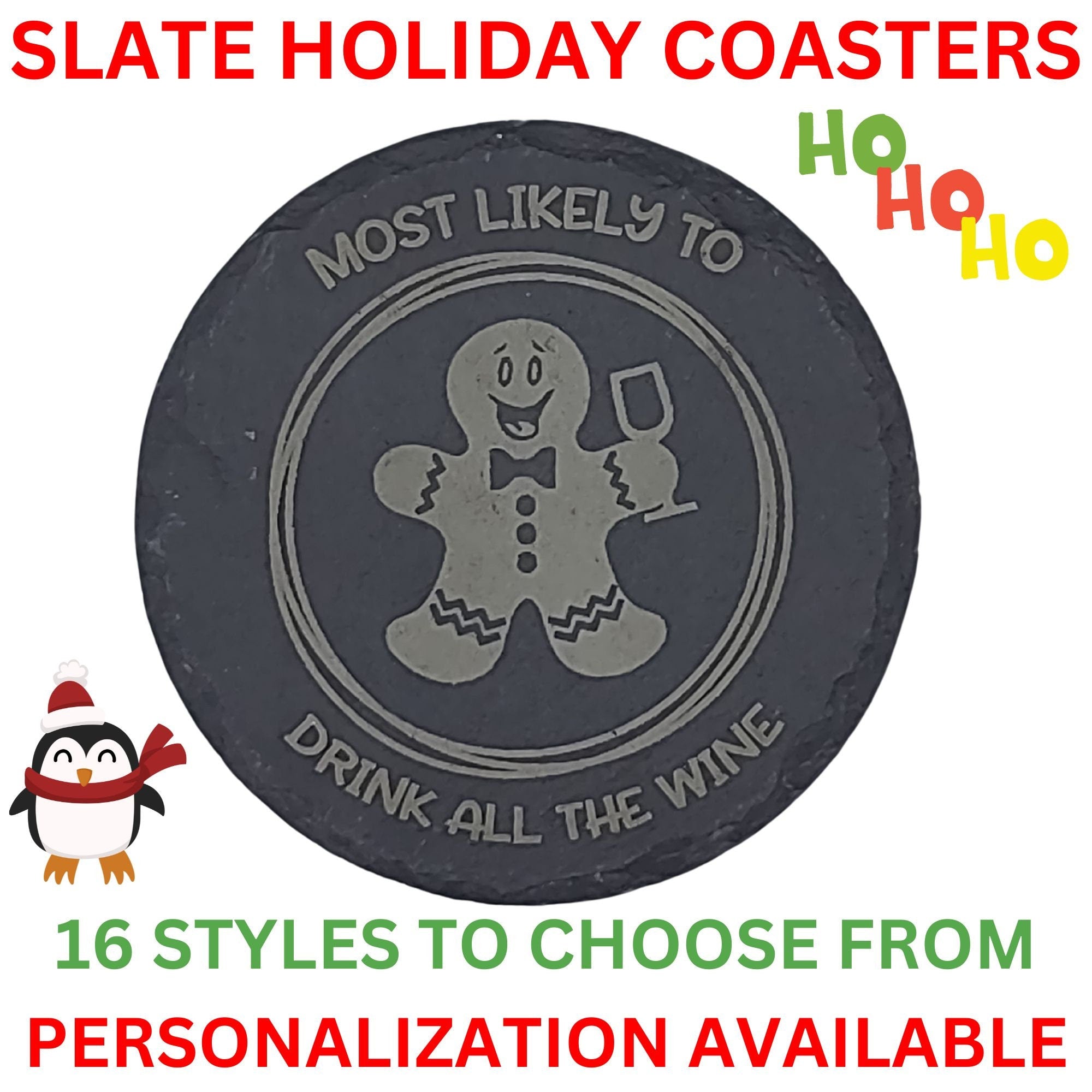 Add a touch of humor and holiday cheer to your festive gatherings with these Humorous Gingerbread Holiday Drink Coasters. These laser-engraved slate stone coasters feature eight different Gingerbread Men and Women designs, each offering a unique and whimsical style that's perfect for celebrating the season. Whether you prefer your Gingerbread Men and Women sipping coffee, skiing, or even taking a selfie, you'll find a design that suits your family and friends.