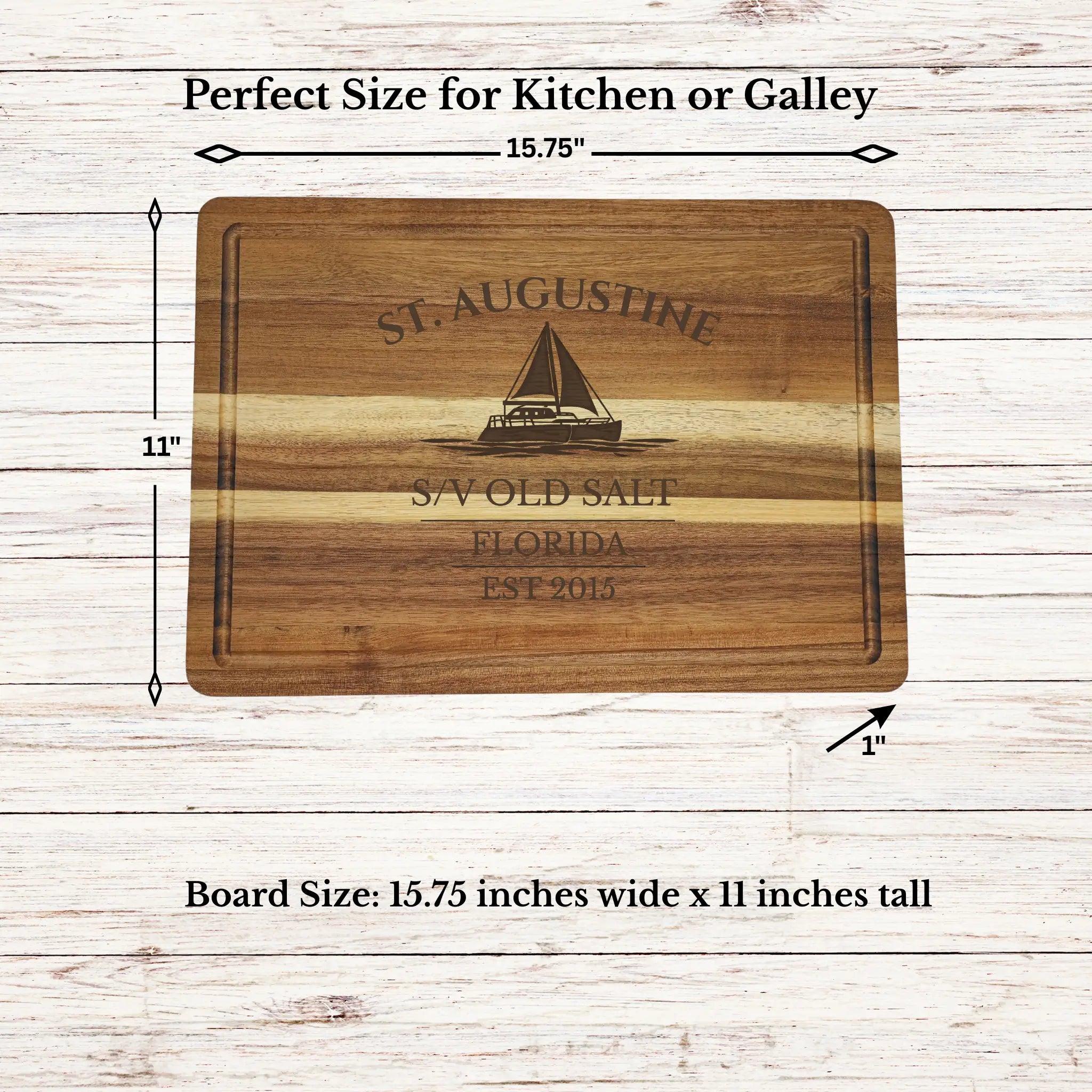 Bring the timeless coastal charm of St. Augustine into your home with a personalized cutting board gift, custom engraved with your boat name or family name and established year. As the oldest city in the United States, St. Augustine blends rich maritime history with a vibrant waterfront culture along Florida’s Atlantic coast.