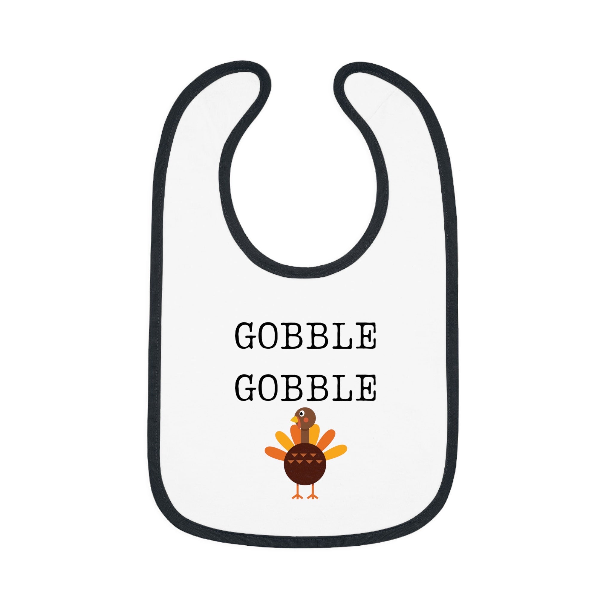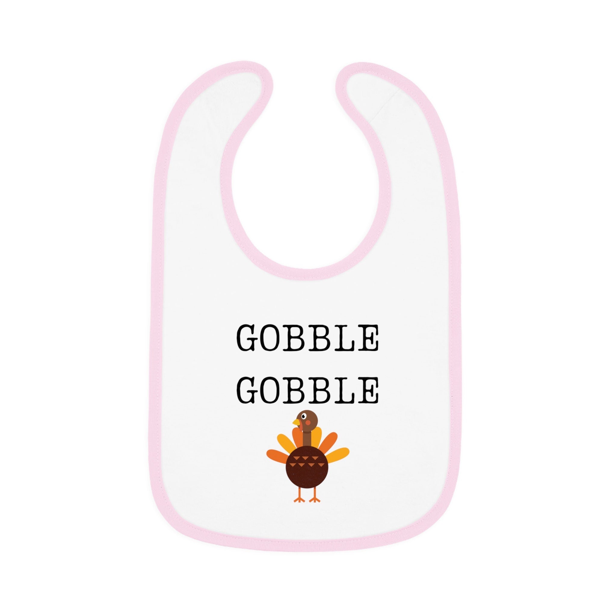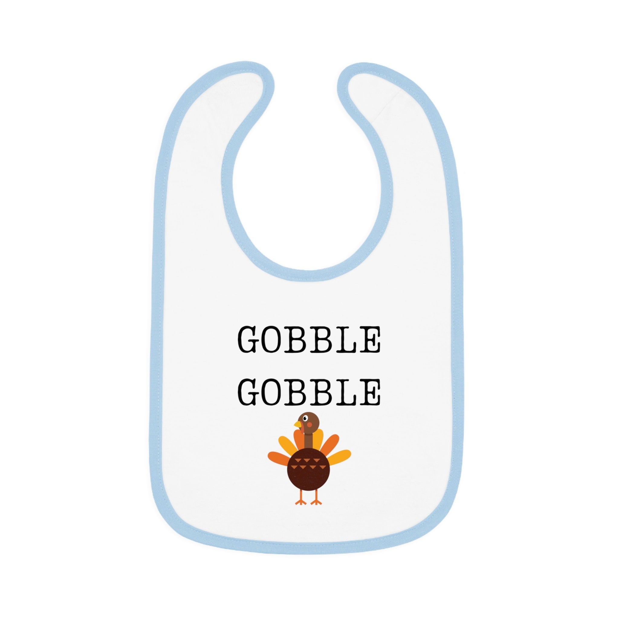Introducing our "Gobble Gobble Turkey" Thanksgiving baby bib – the perfect blend of functionality and cuteness. This charming bib is not only a practical addition to your baby's mealtime routine but also an adorable accessory that's perfect for special occasions. Whether it's for a baby shower gift or an infant's first Halloween, this bib is sure to bring smiles all around.