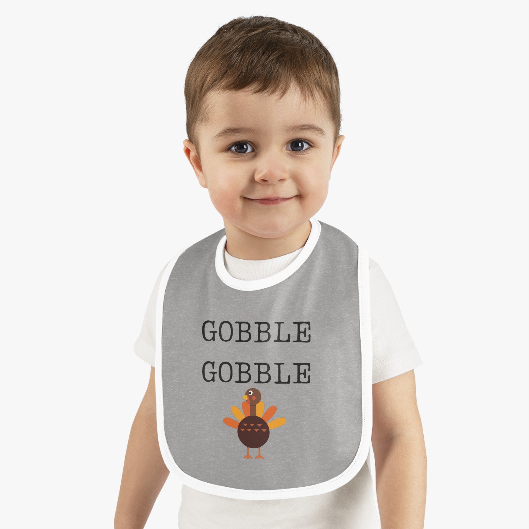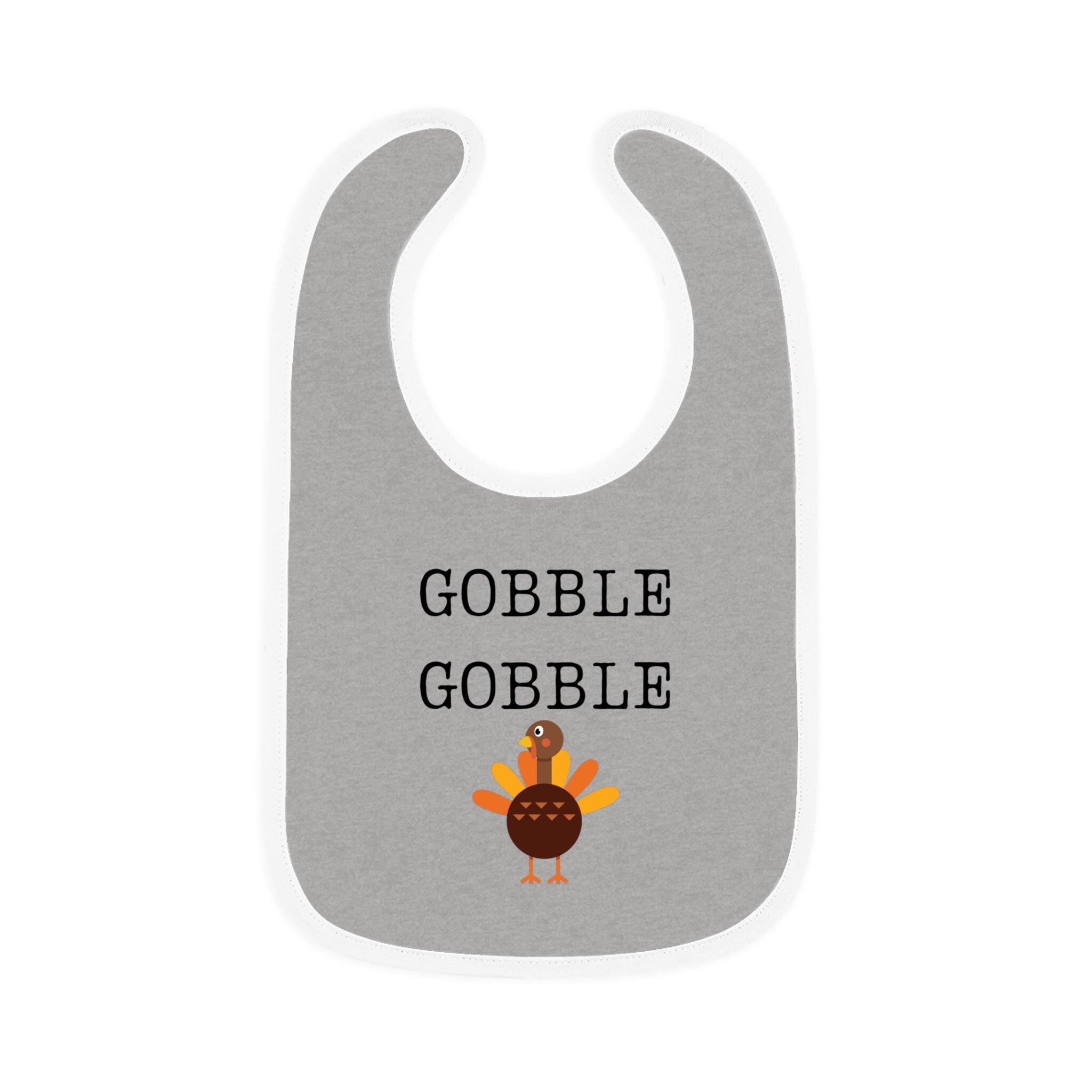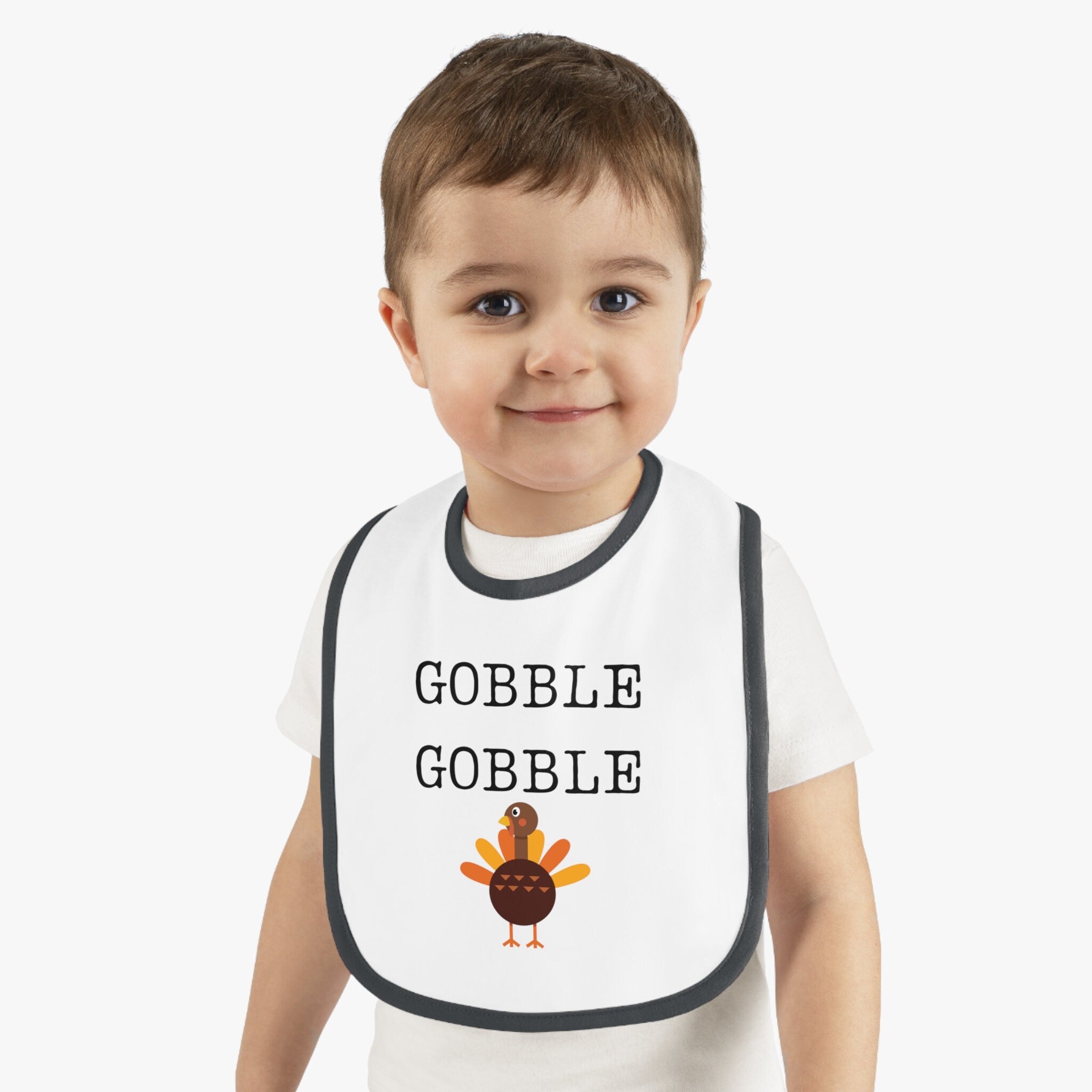 Introducing our "Gobble Gobble Turkey" Thanksgiving baby bib – the perfect blend of functionality and cuteness. This charming bib is not only a practical addition to your baby's mealtime routine but also an adorable accessory that's perfect for special occasions. Whether it's for a baby shower gift or an infant's first Halloween, this bib is sure to bring smiles all around.