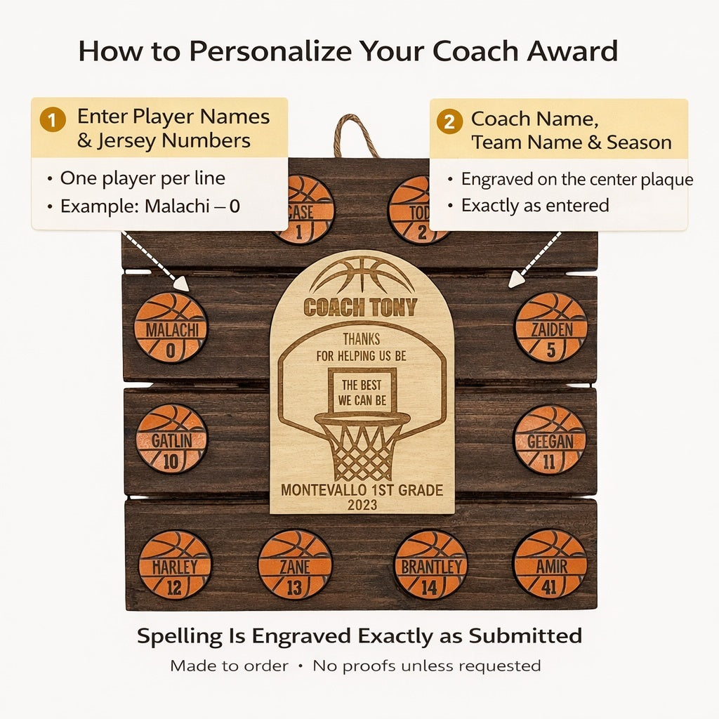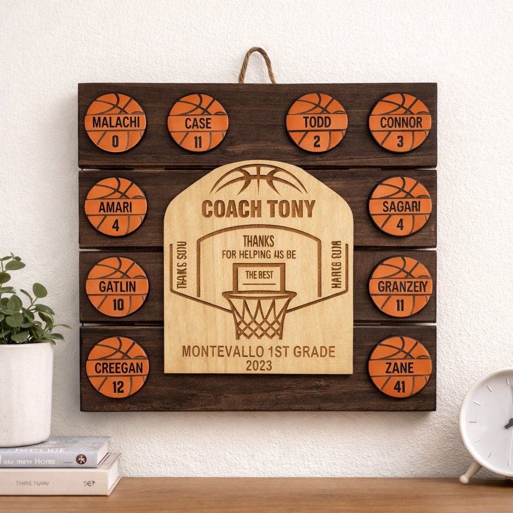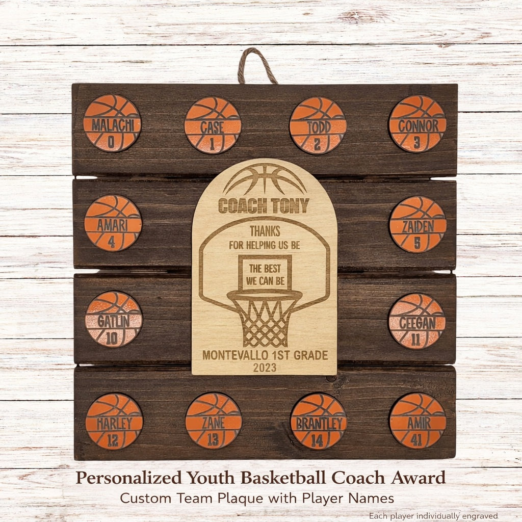 Personalized Youth Basketball Coach Award – Custom Team Plaque with Player Names